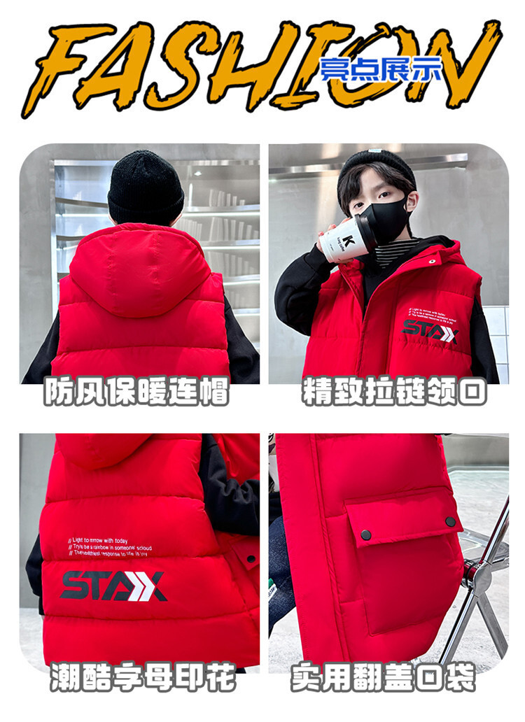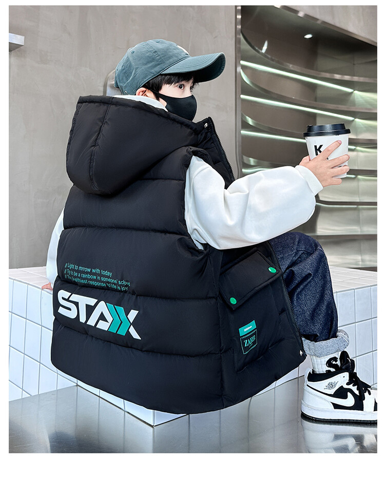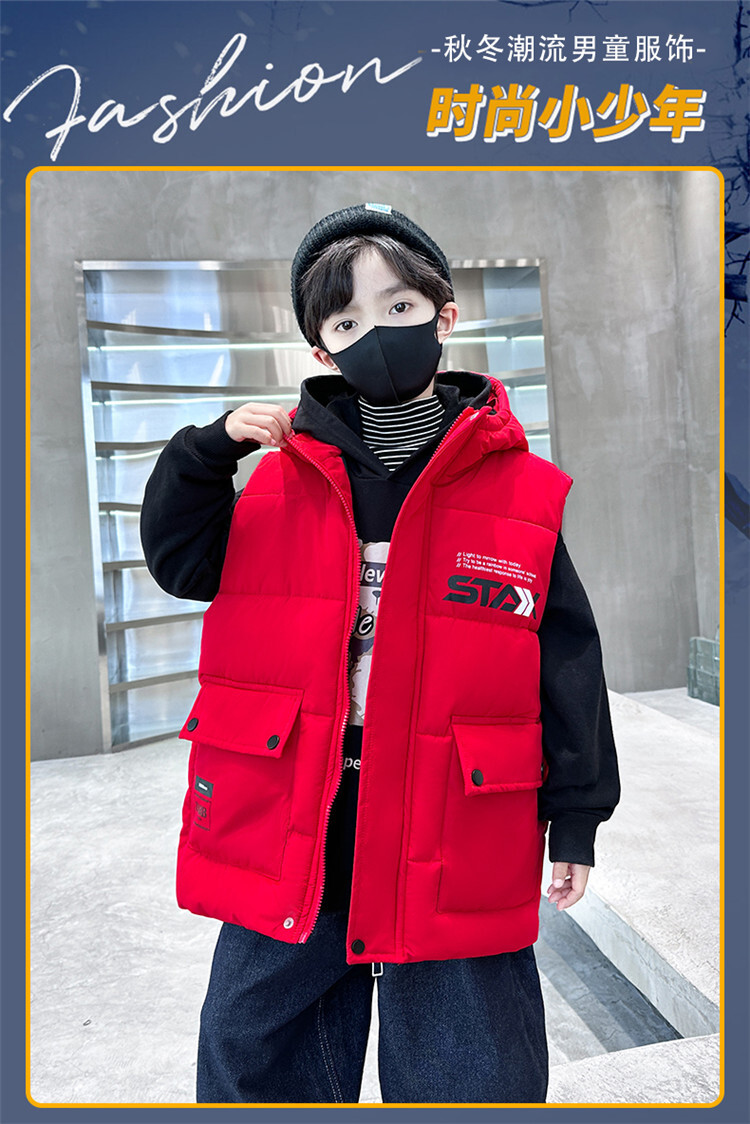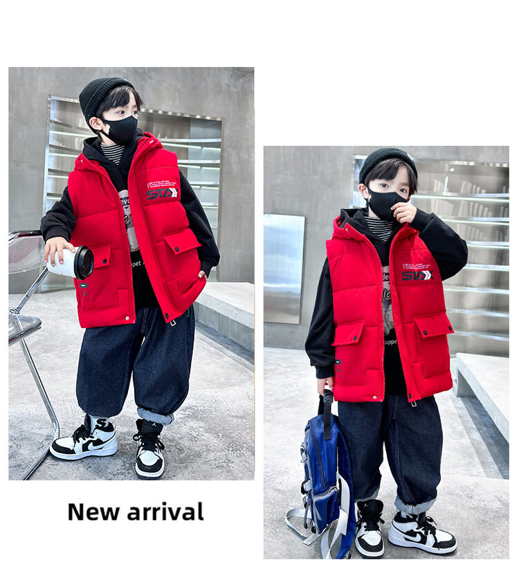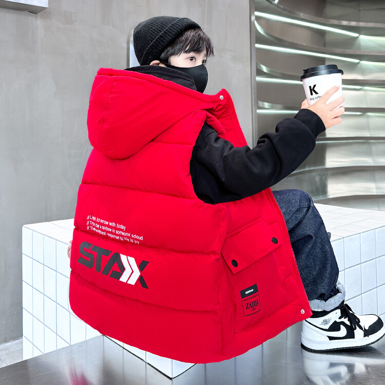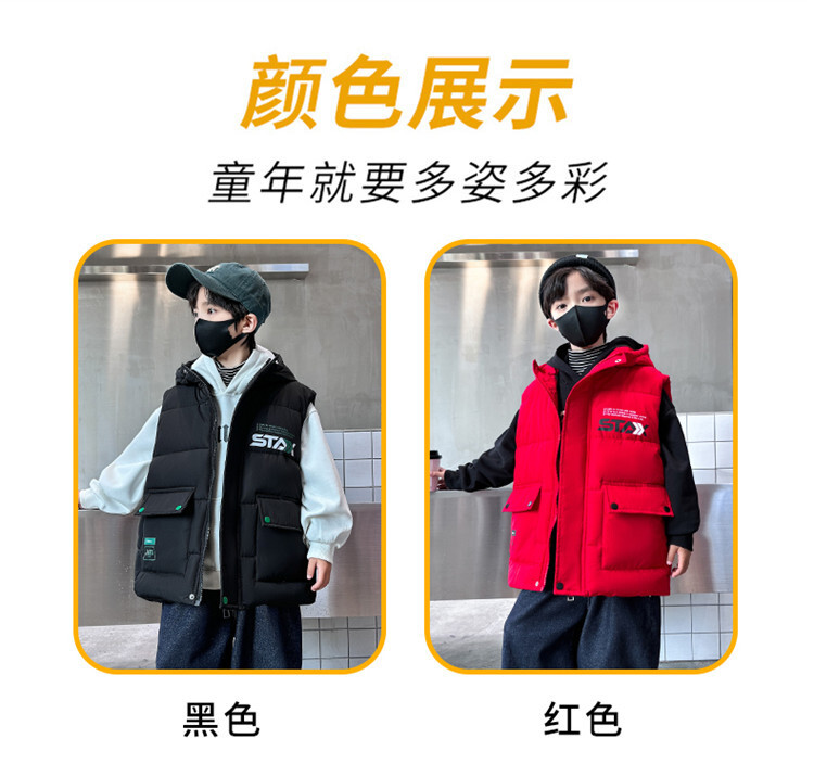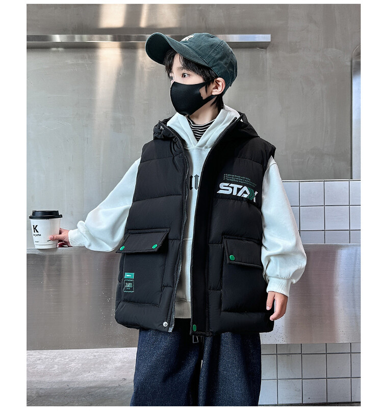 남아 겨울 후드 다운 코튼 조끼 2025 신상품 중대형 어린이 겨울 조끼 어린이 두꺼운 조끼 코트스토어 가기