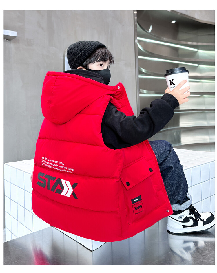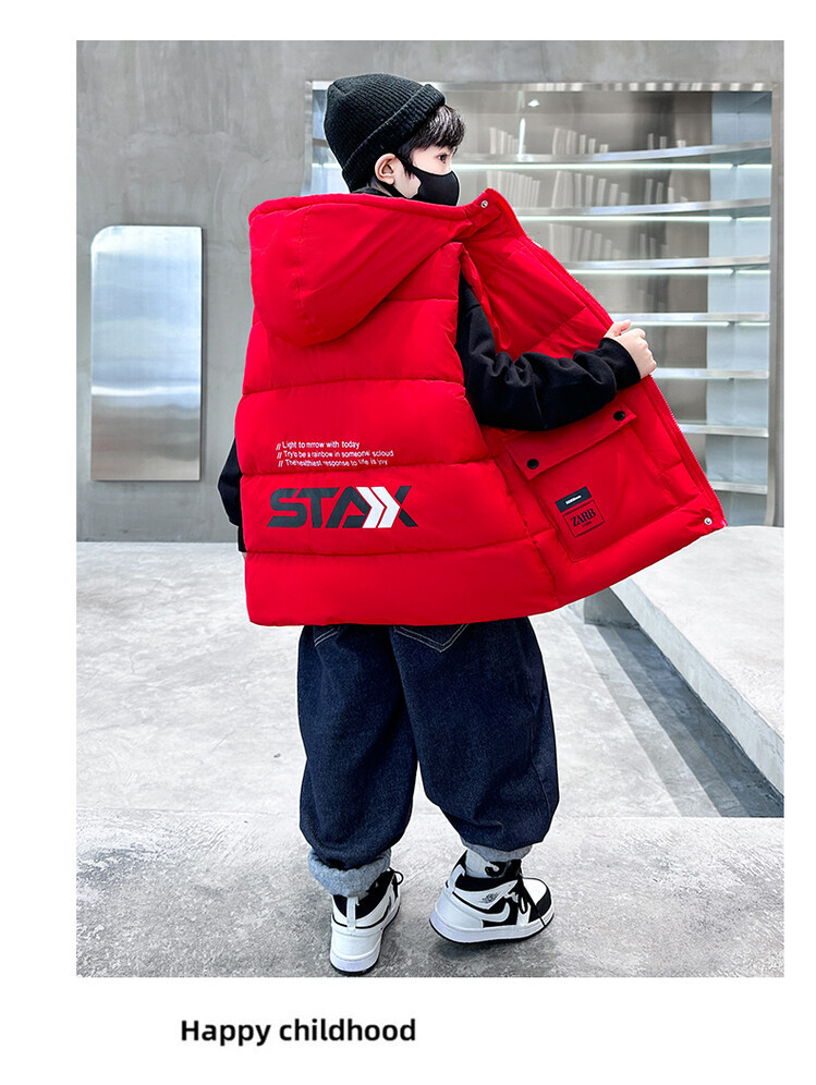 남아 겨울 후드 다운 코튼 조끼 2025 신상품 중대형 어린이 겨울 조끼 어린이 두꺼운 조끼 코트