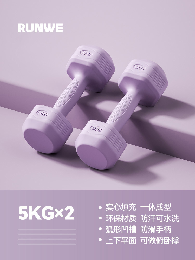 장거리 덤벨 여성용 피트니스 가정용 장비 육각형 어린이 팔 근육 요가 가방 남성 작은 덤벨의 접착제 쌍