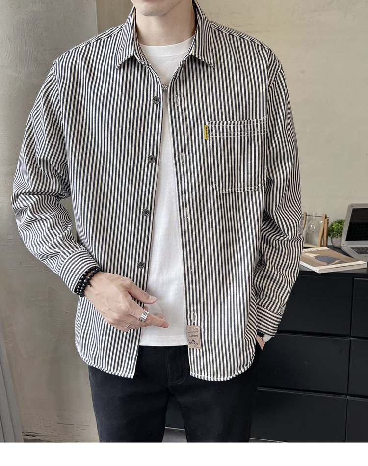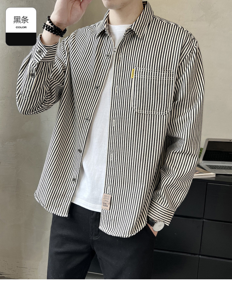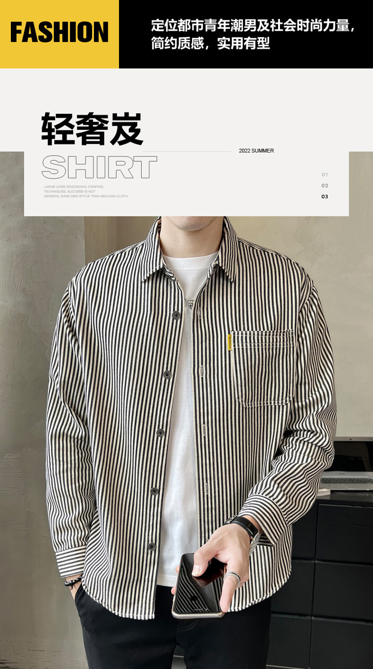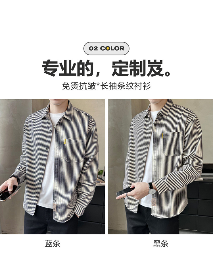봄과 가을 간단한 올매치 우아한 남성 패션 게으른 새로운 트렌디 새로운 트렌디 뉴 트렌디 올 매치 스트라이프 남자 긴팔 셔츠스토어 가기