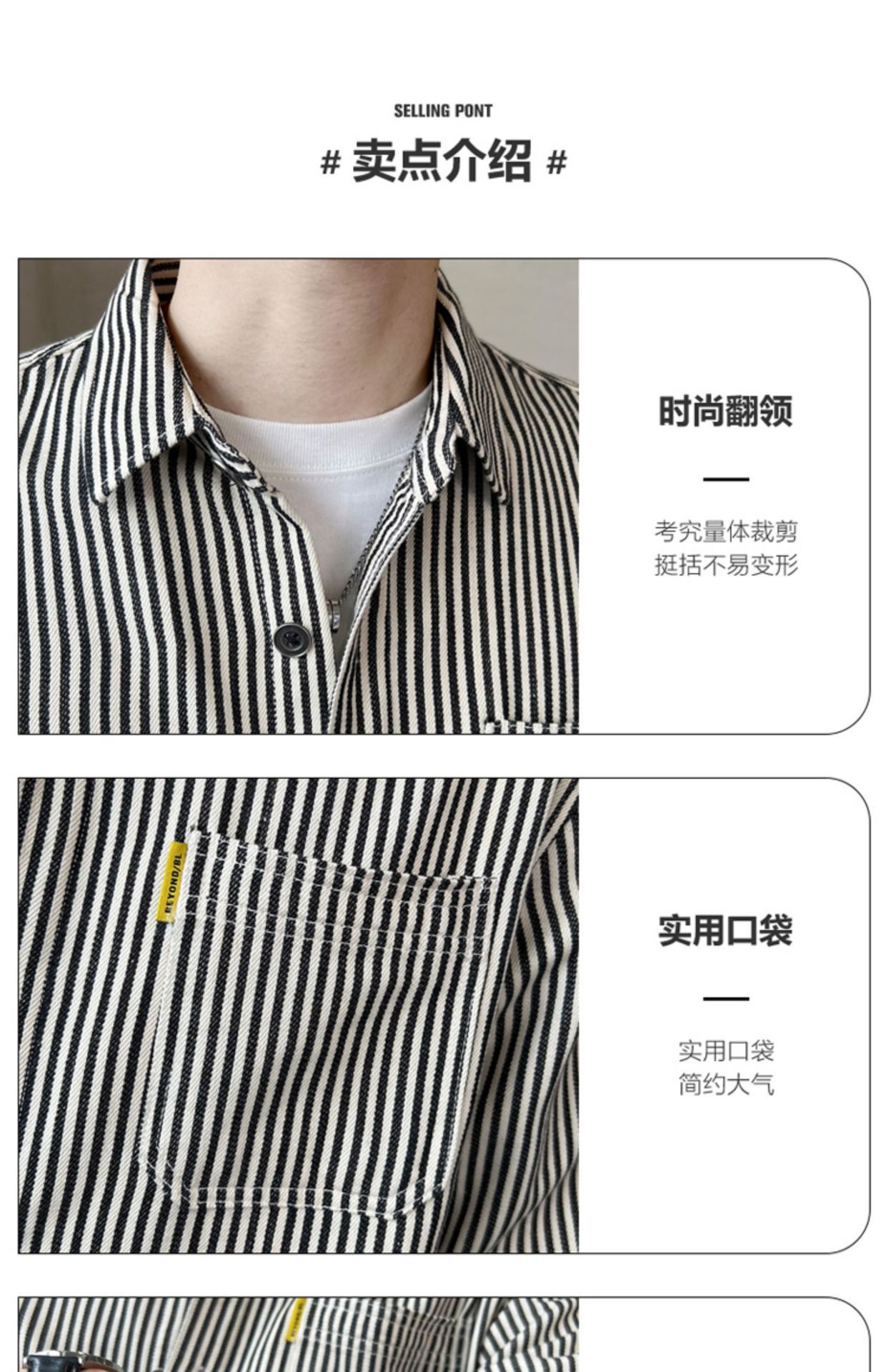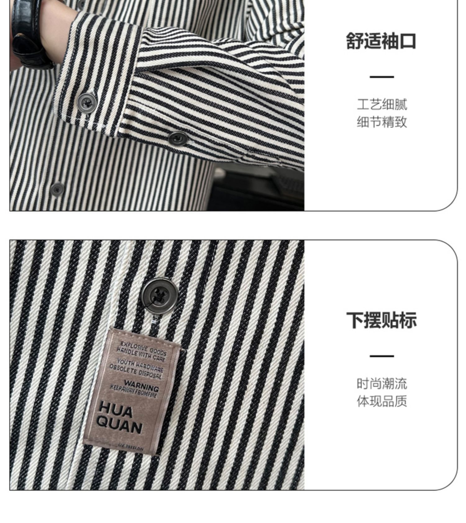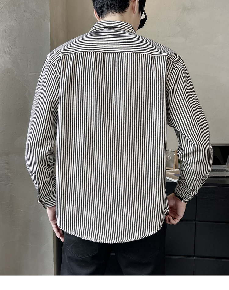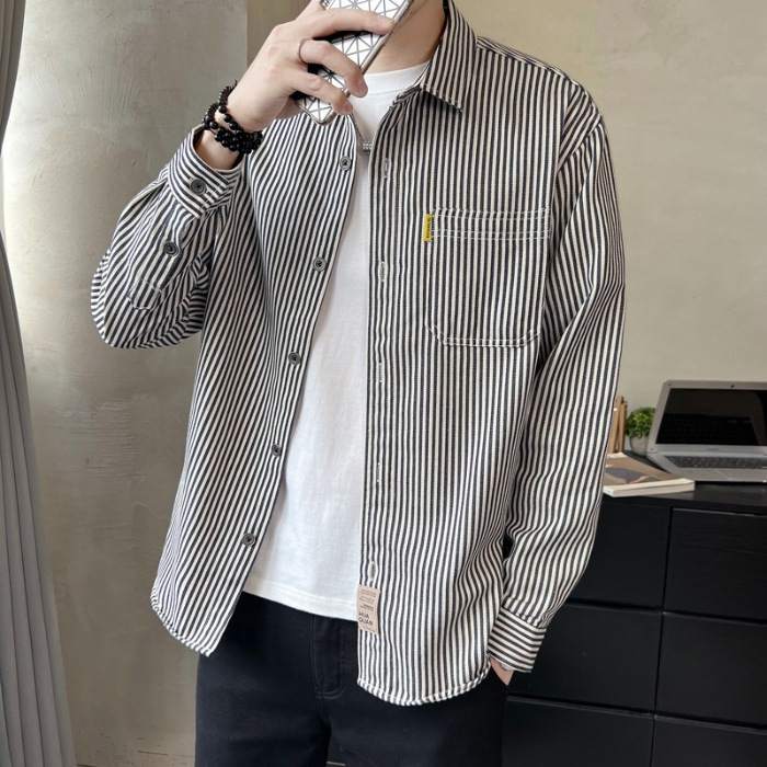 봄과 가을 간단한 올매치 우아한 남성 패션 게으른 새로운 트렌디 새로운 트렌디 뉴 트렌디 올 매치 스트라이프 남자 긴팔 셔츠스토어 가기