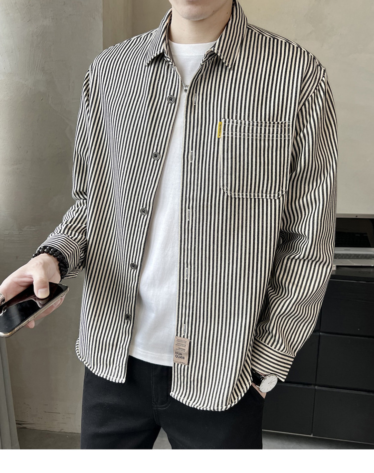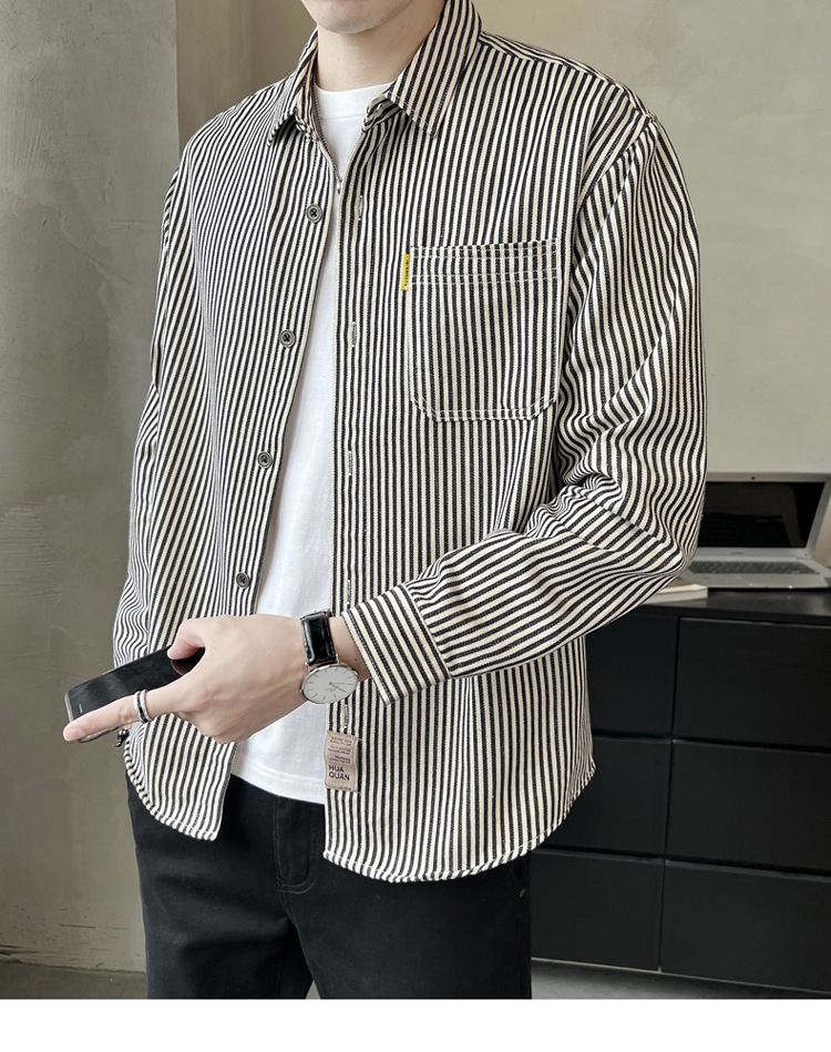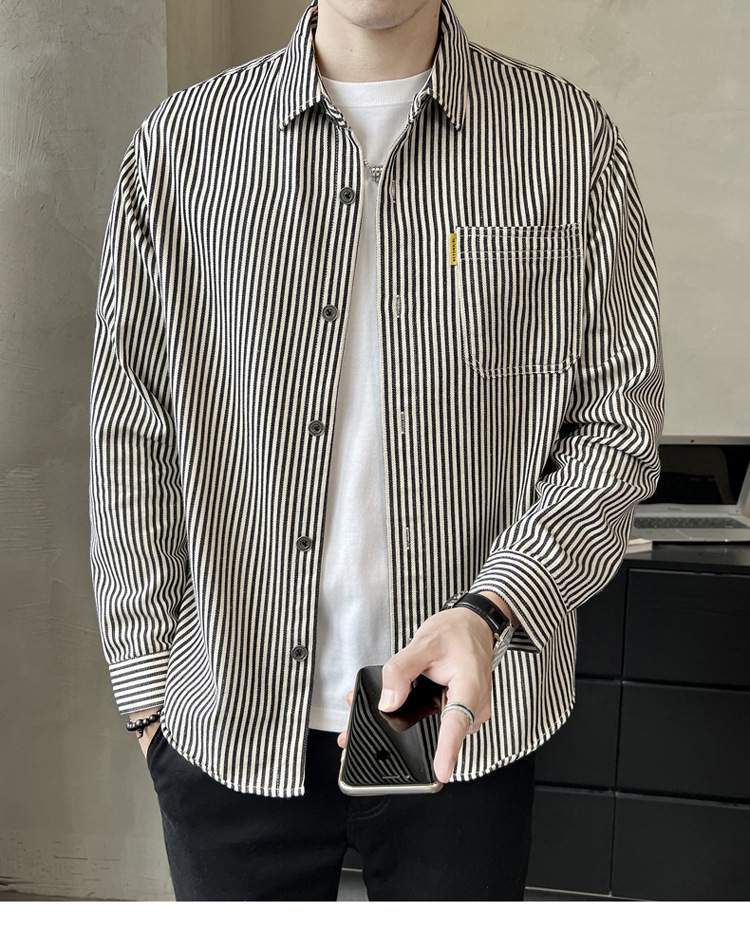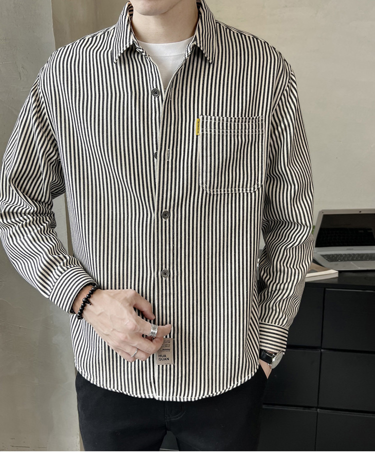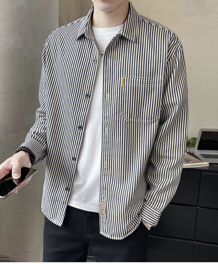 봄과 가을 간단한 올매치 우아한 남성 패션 게으른 새로운 트렌디 새로운 트렌디 뉴 트렌디 올 매치 스트라이프 남자 긴팔 셔츠
