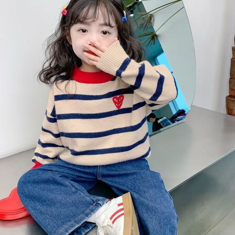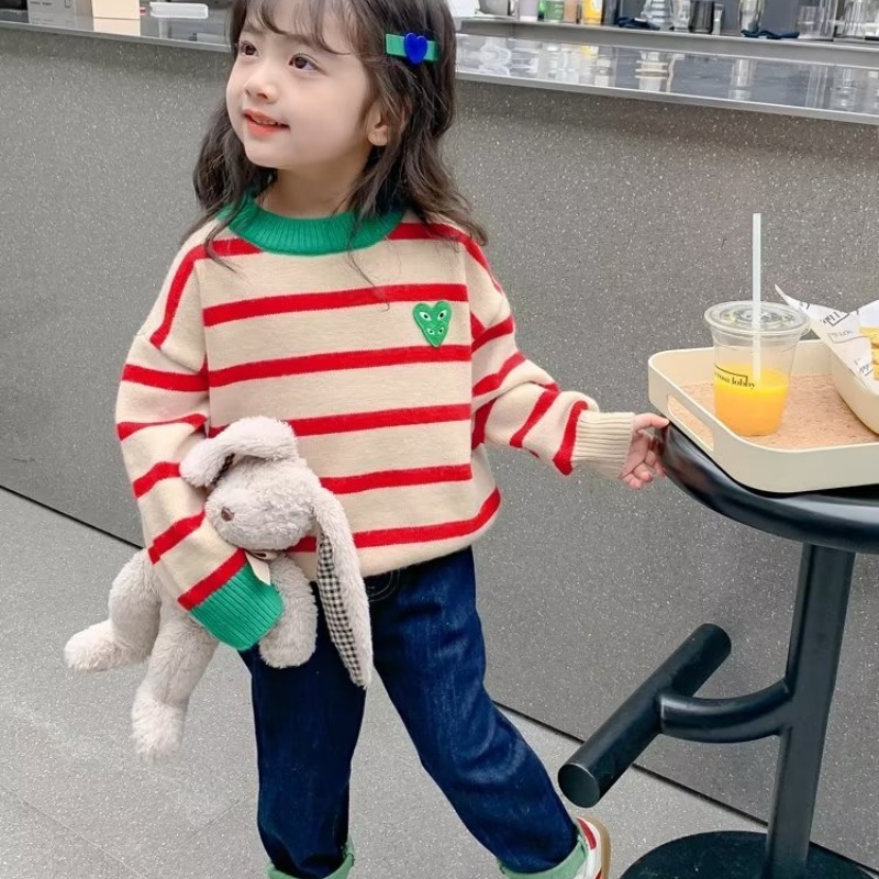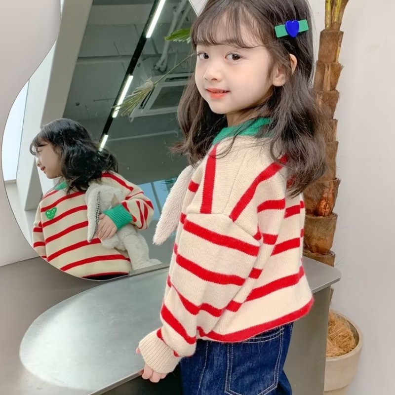 소녀 스웨터 가을 2024 새로운 스타일 소녀 풀오버 베이스 셔츠 가을 어린이 최고 봄 가을 어린이 착용스토어 가기