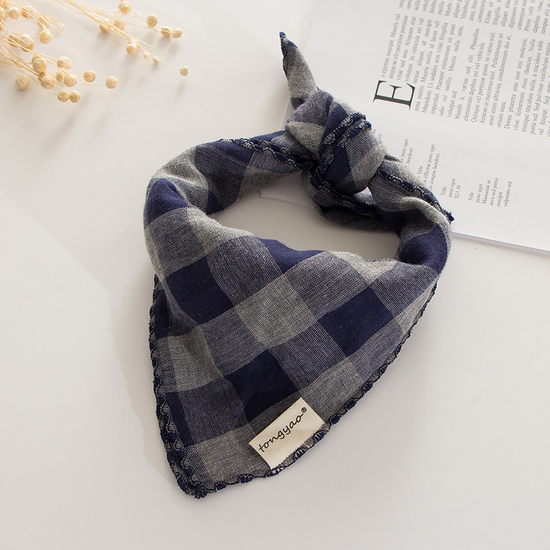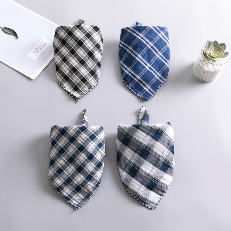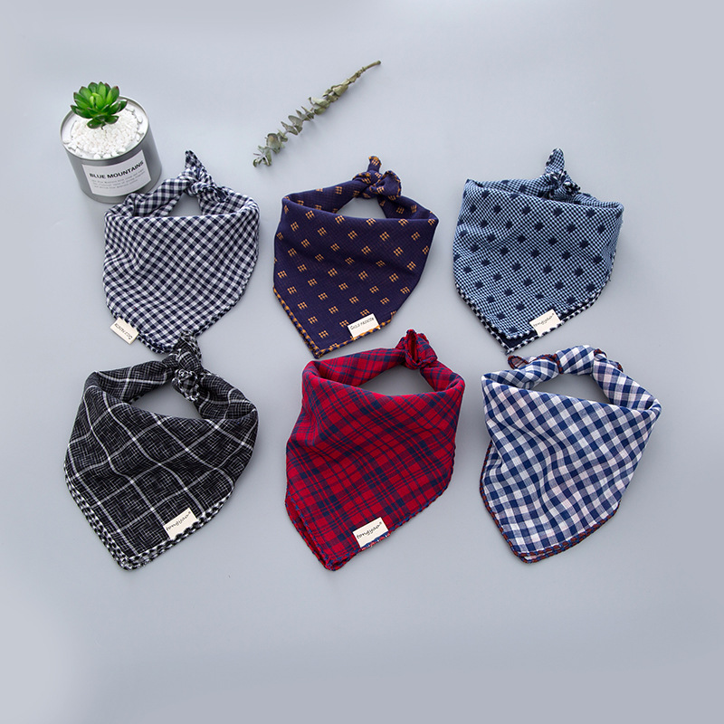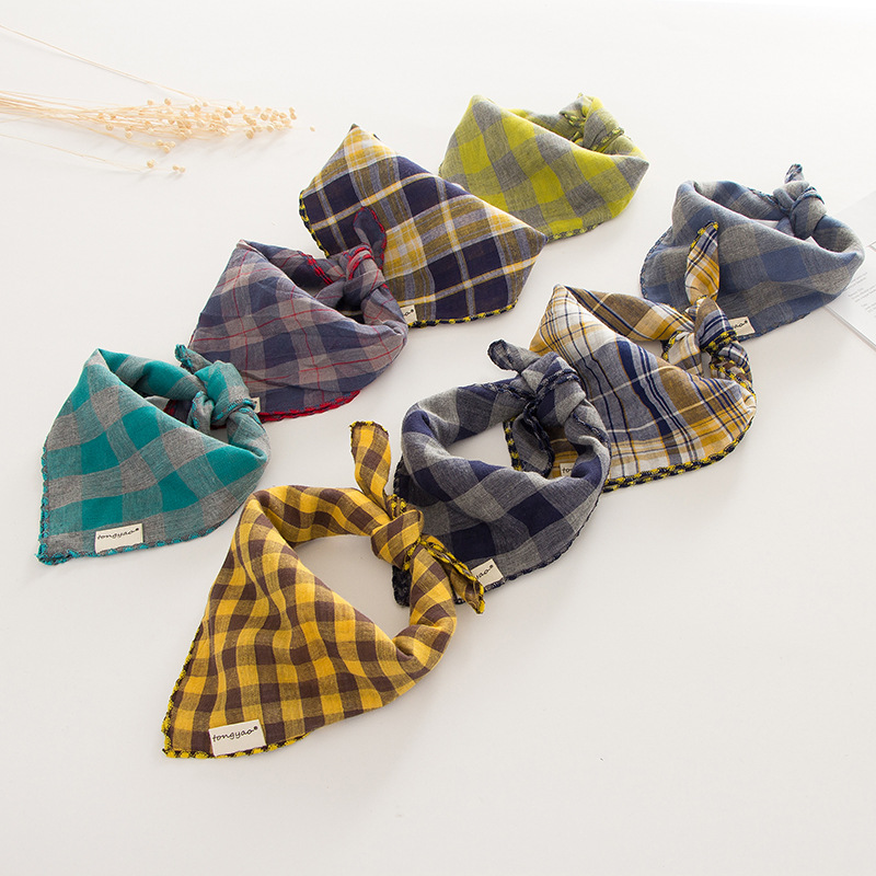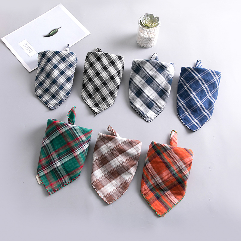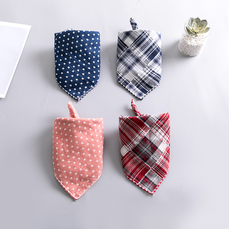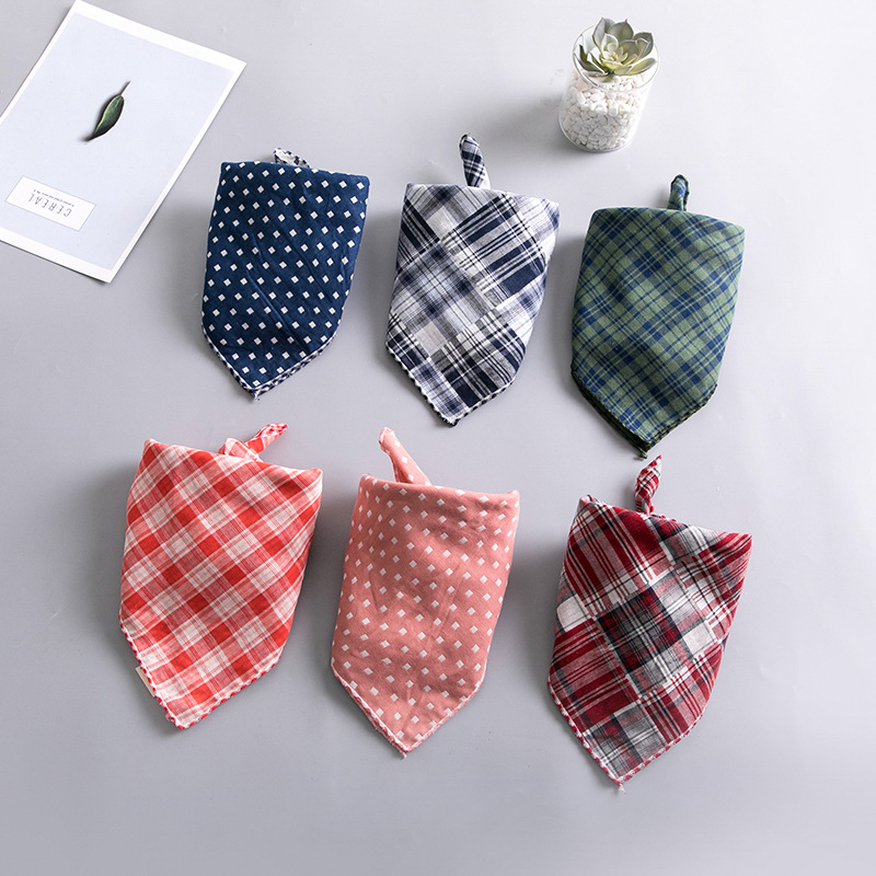 한국 버전의 아기 삼각형 스카프면 사각형 양면 애완 동물 거즈 격자 무늬 타액 타액 삼각형 스카프 터번 제조 업체