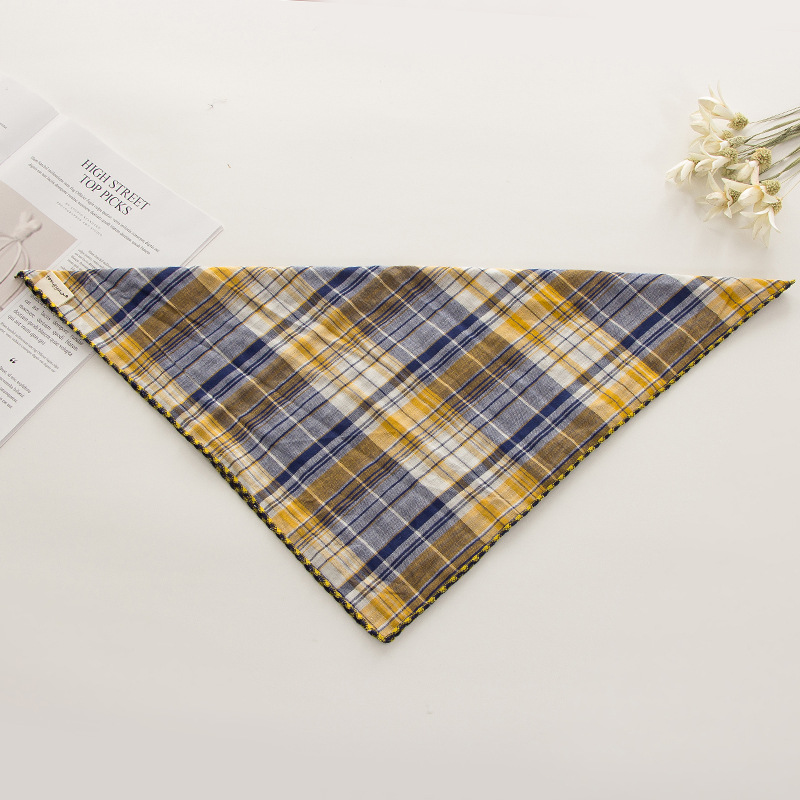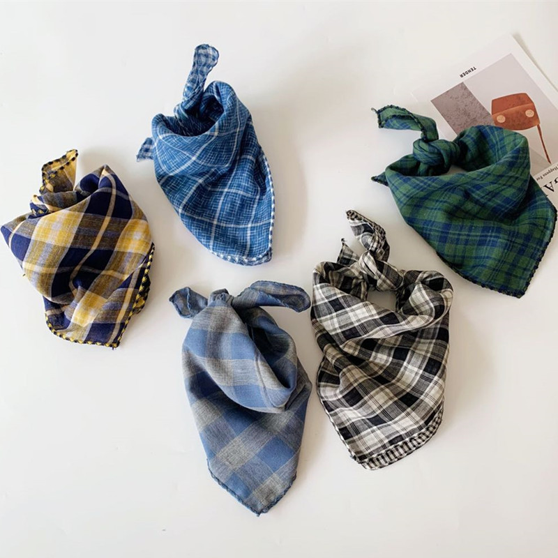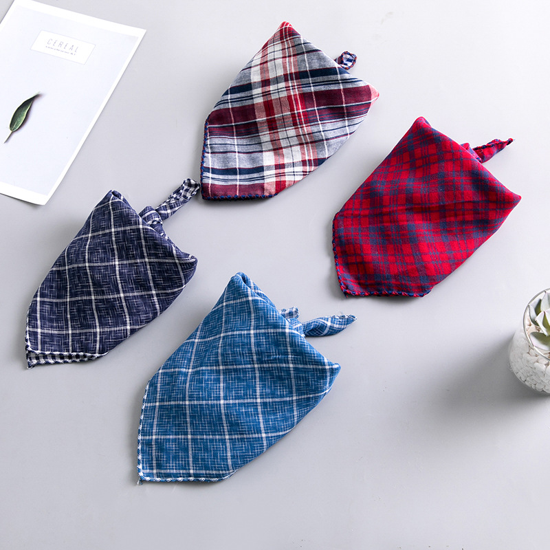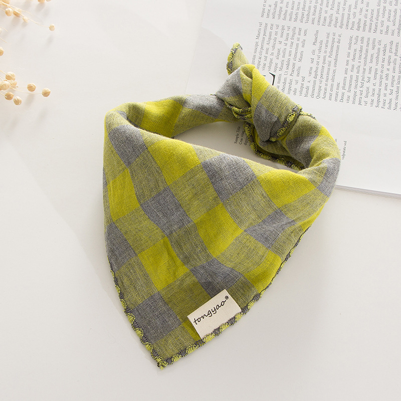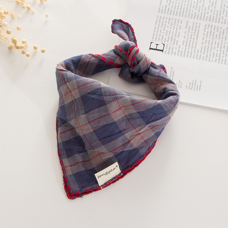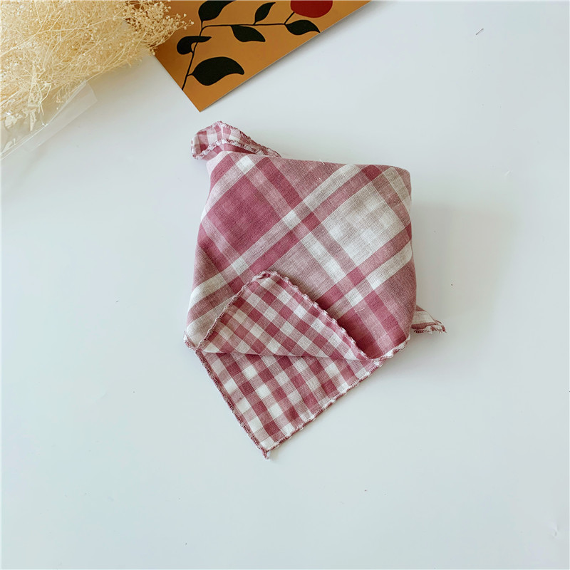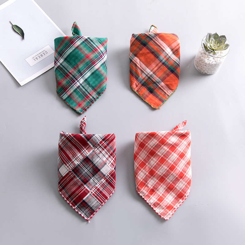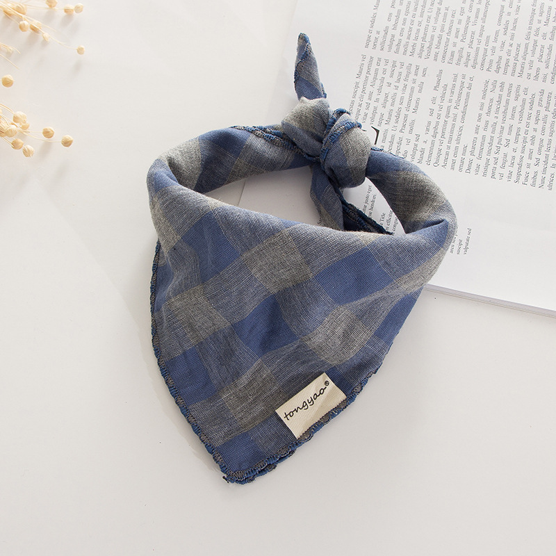 한국 버전의 아기 삼각형 스카프면 사각형 양면 애완 동물 거즈 격자 무늬 타액 타액 삼각형 스카프 터번 제조 업체