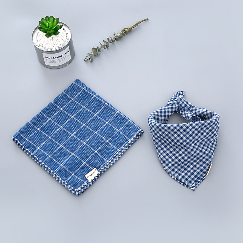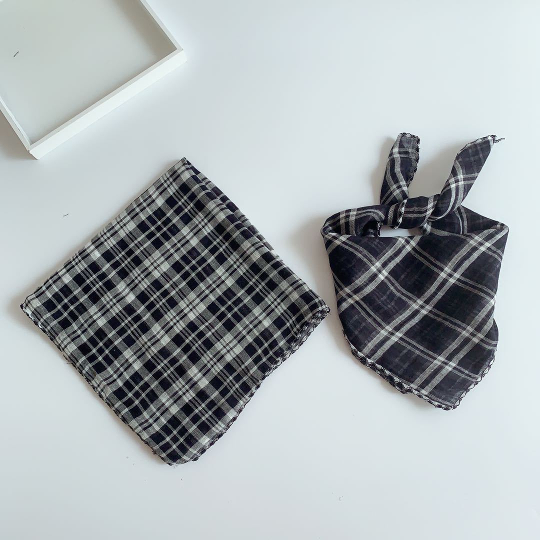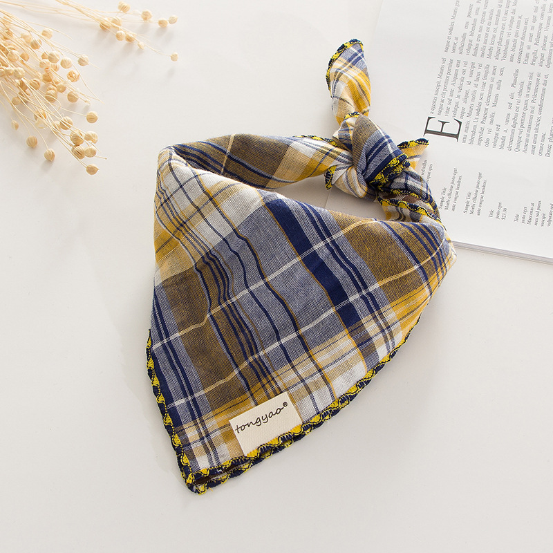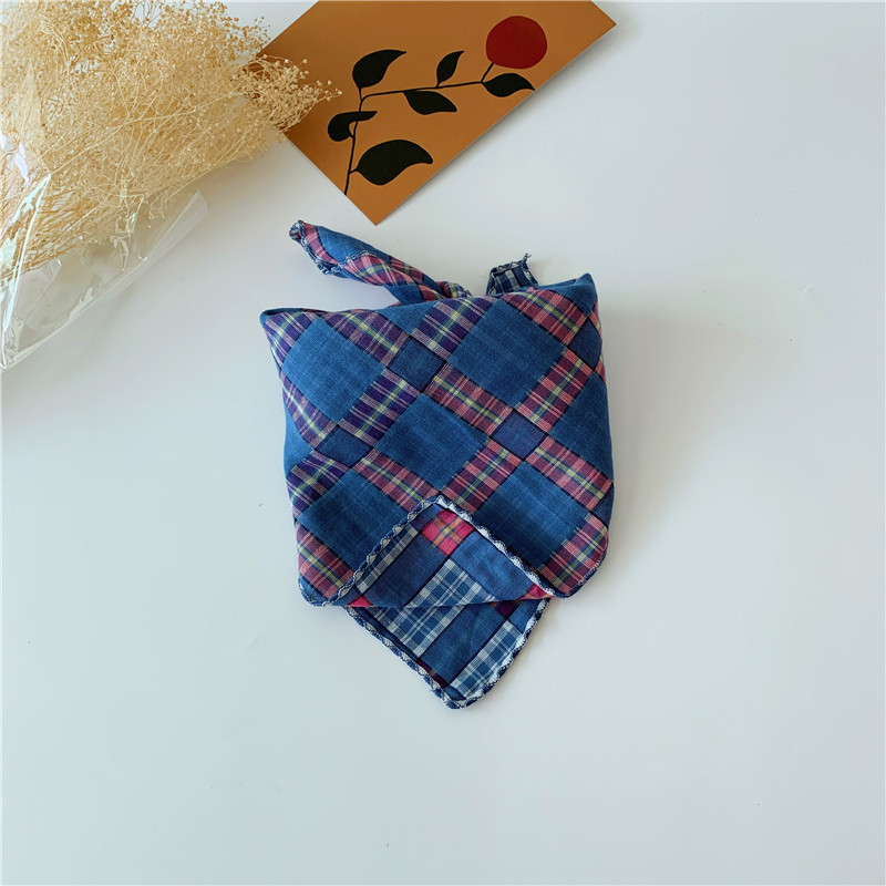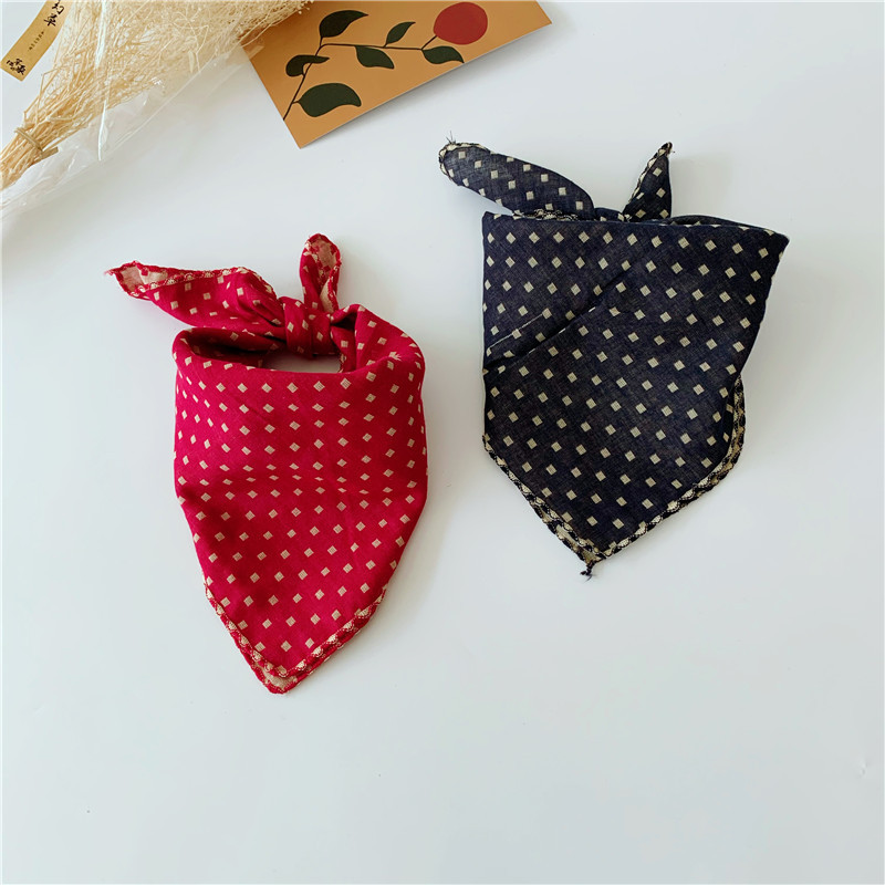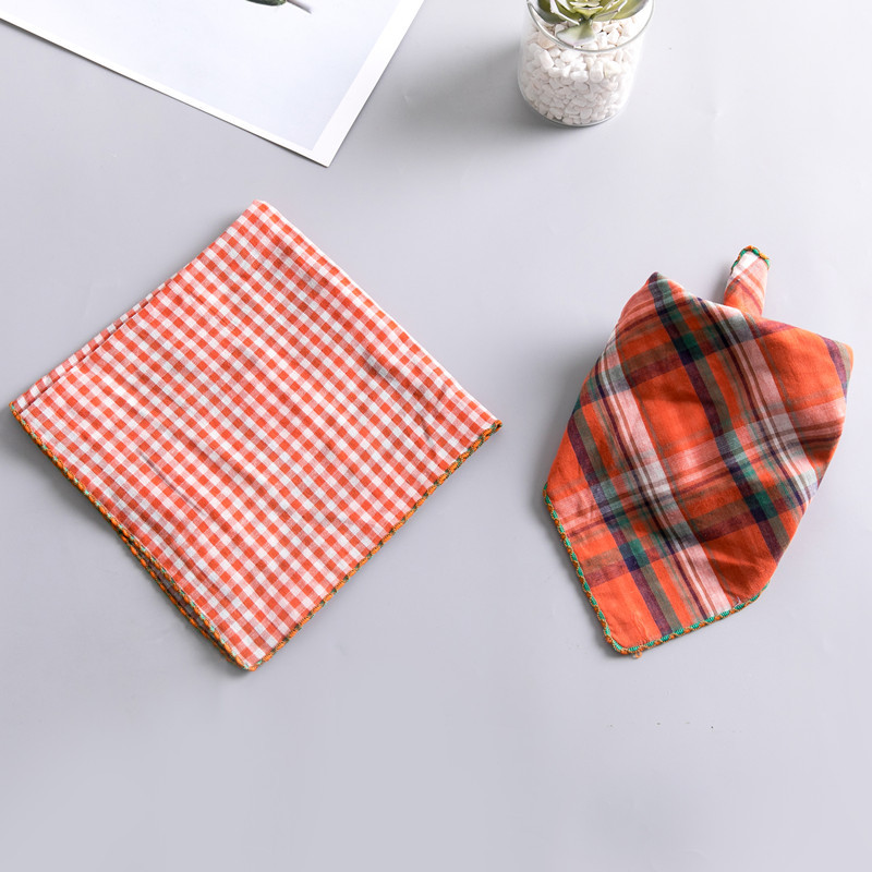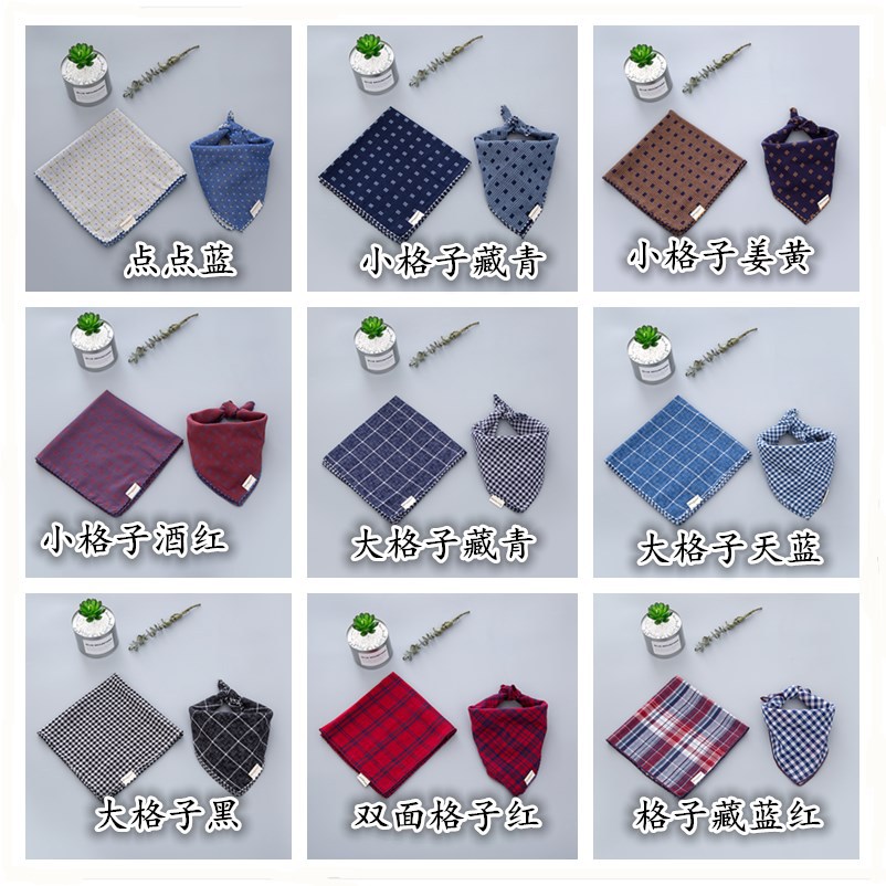 한국 버전의 아기 삼각형 스카프면 사각형 양면 애완 동물 거즈 격자 무늬 타액 타액 삼각형 스카프 터번 제조 업체