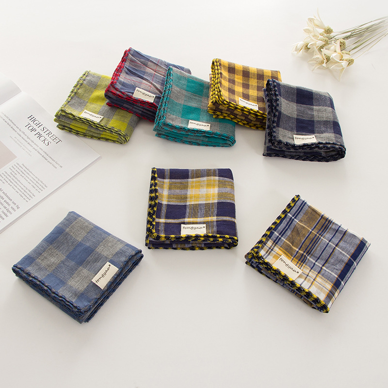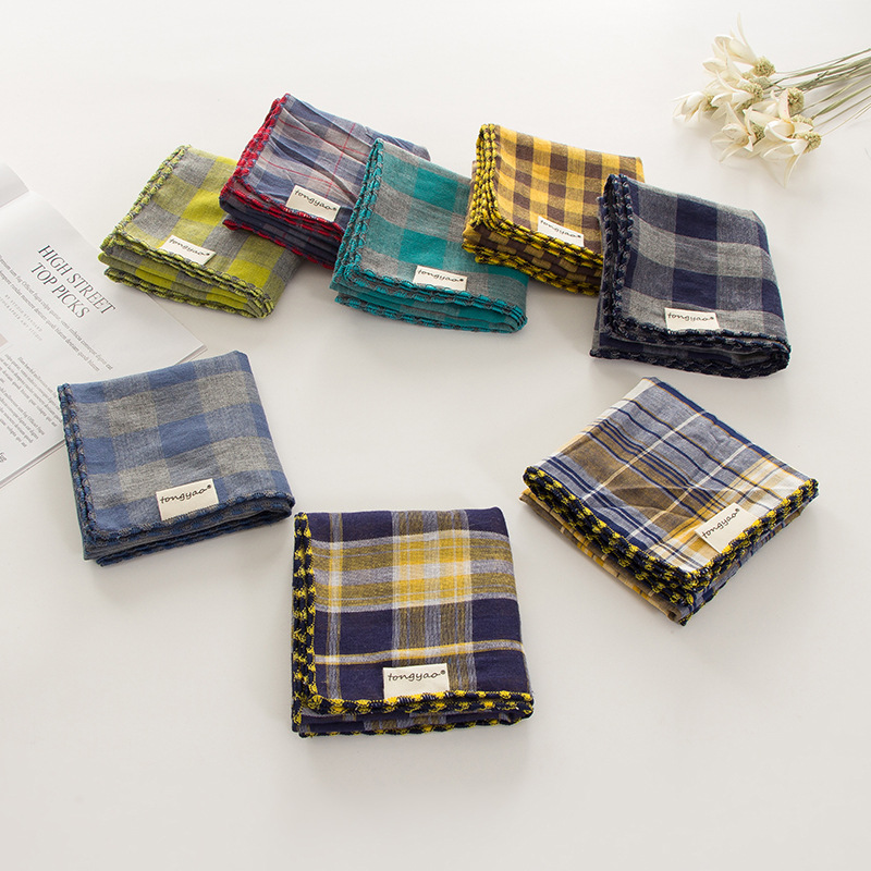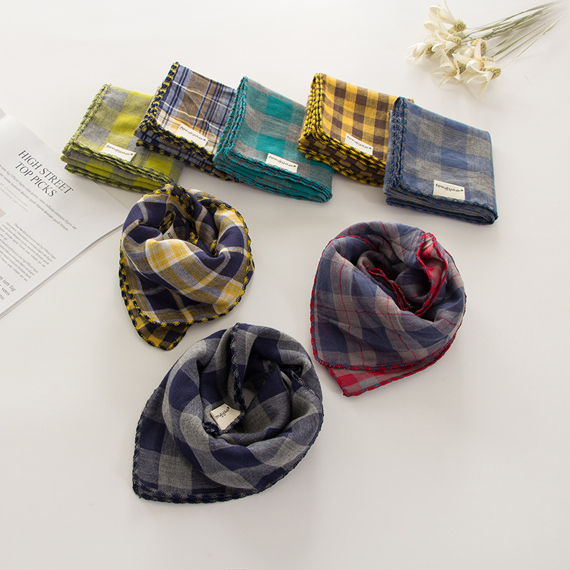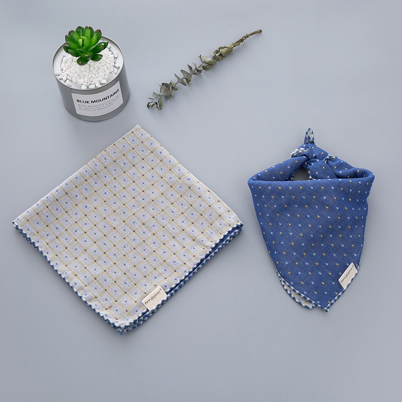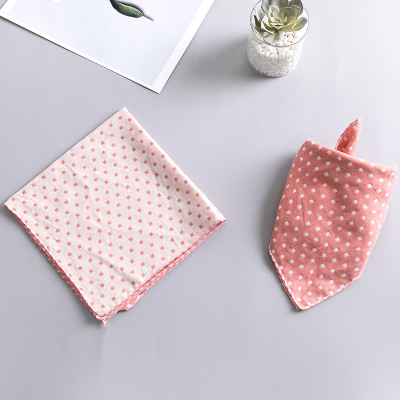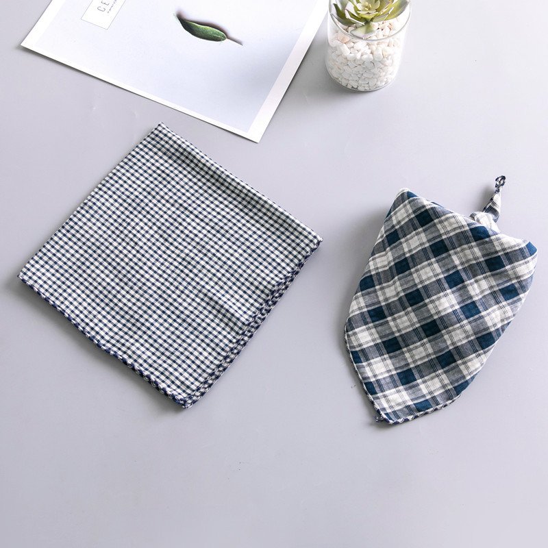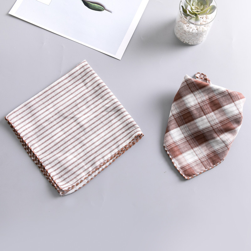 한국 버전의 아기 삼각형 스카프면 사각형 양면 애완 동물 거즈 격자 무늬 타액 타액 삼각형 스카프 터번 제조 업체