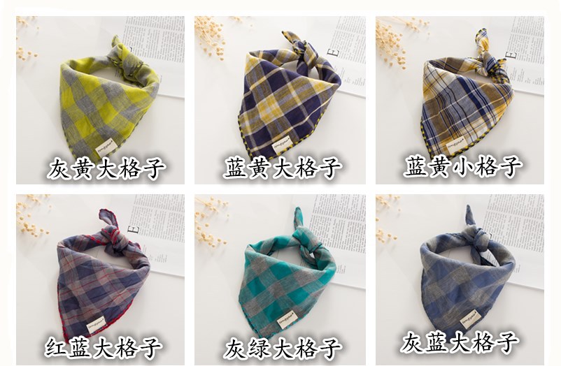 한국 버전의 아기 삼각형 스카프면 사각형 양면 애완 동물 거즈 격자 무늬 타액 타액 삼각형 스카프 터번 제조 업체스토어 가기