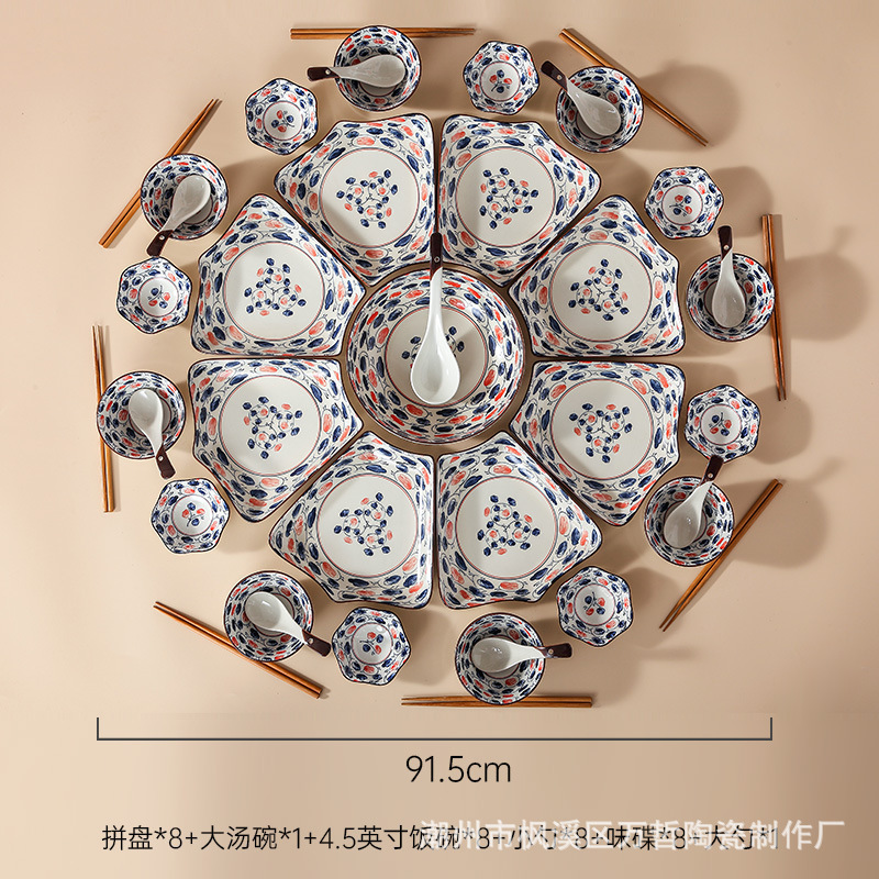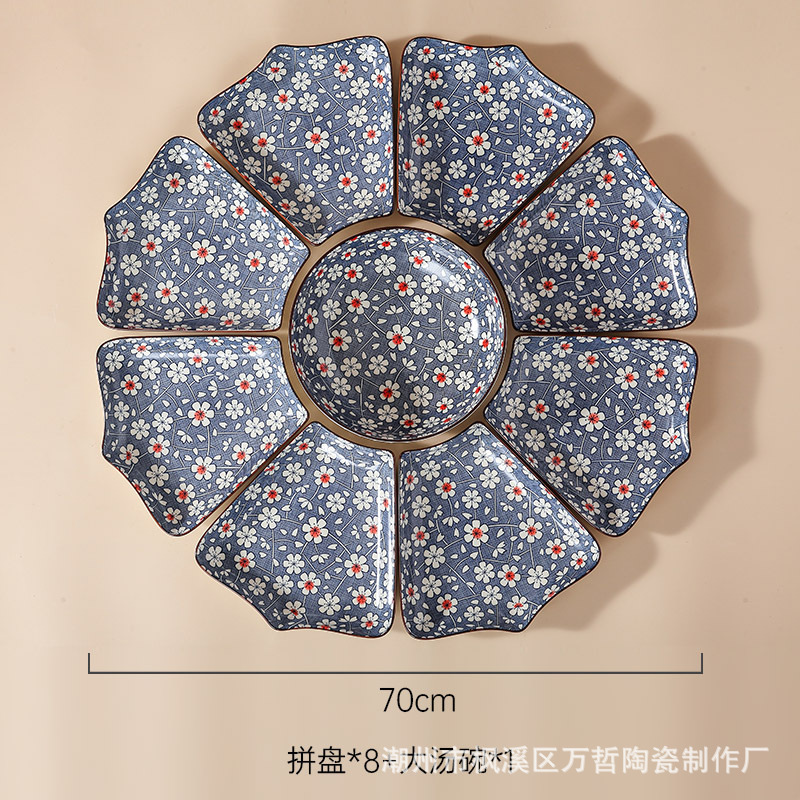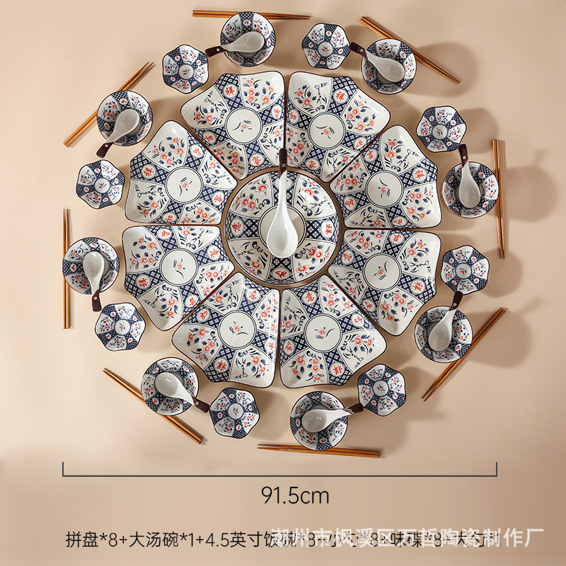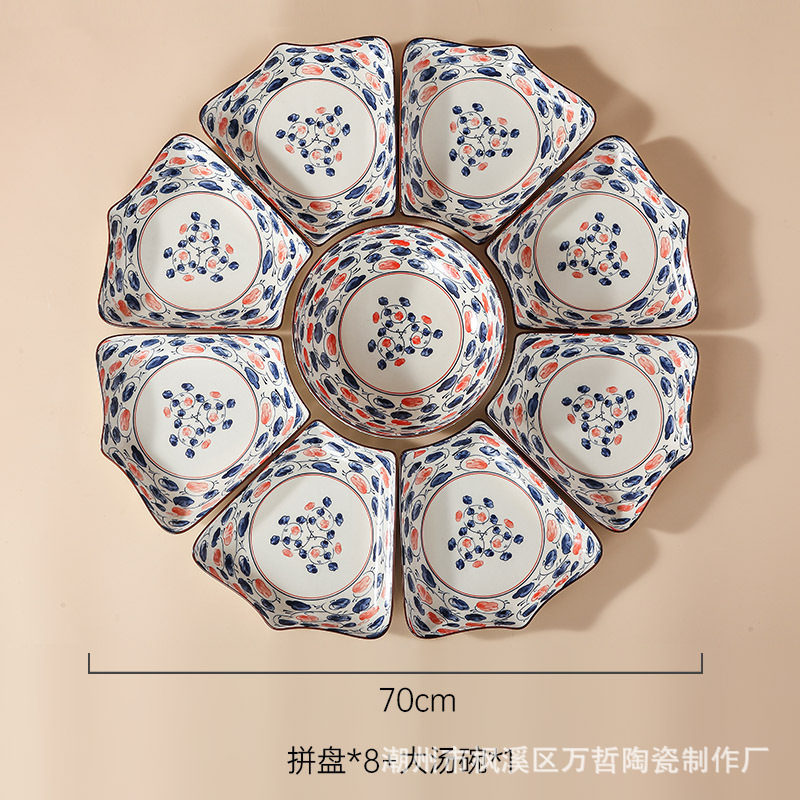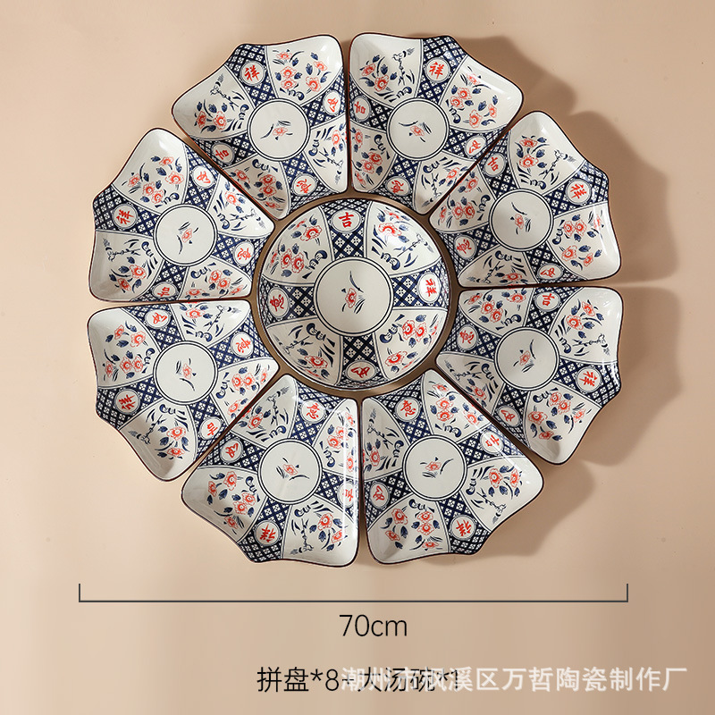 일본식 세라믹 플래터 조합 가정용 대형 라운드 테이블 플레이트 접시 그물 새해 저녁 식사 재회 플래터 세트