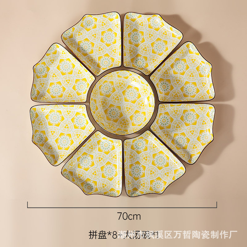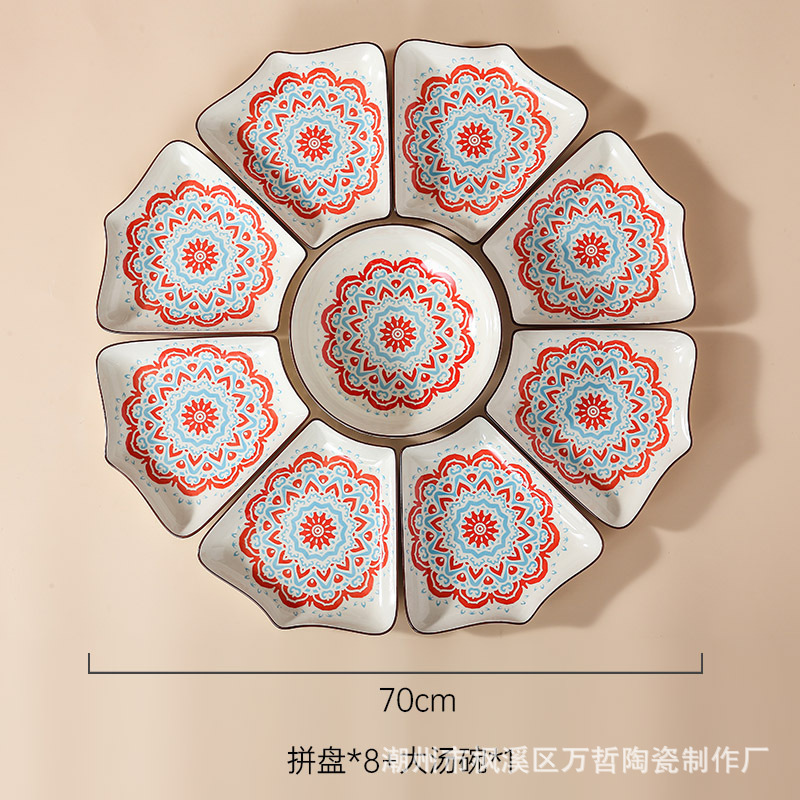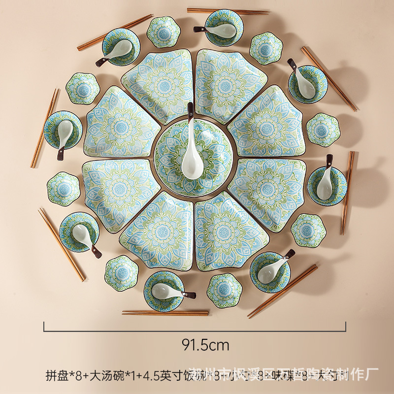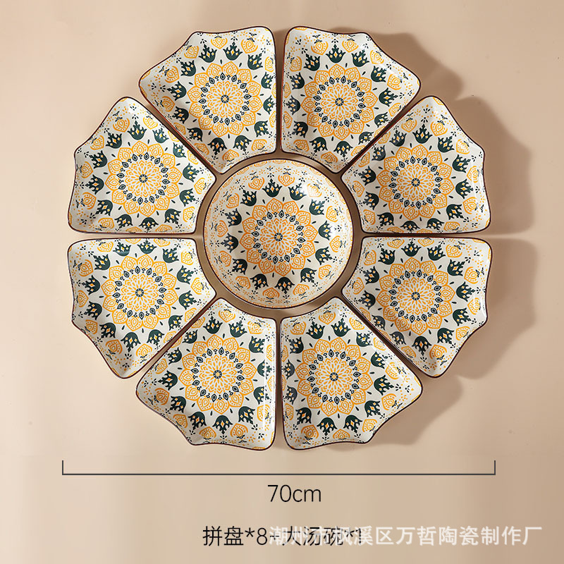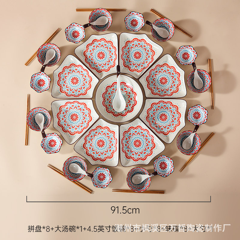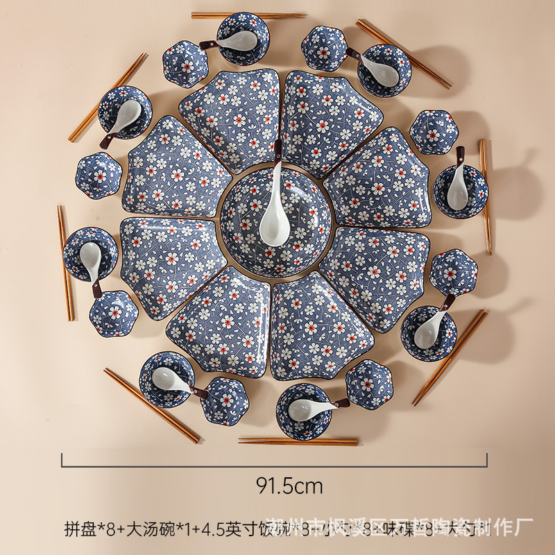 일본식 세라믹 플래터 조합 가정용 대형 라운드 테이블 플레이트 접시 그물 새해 저녁 식사 재회 플래터 세트