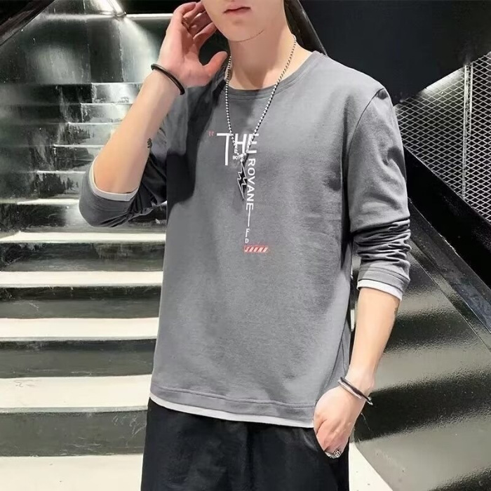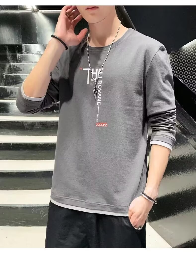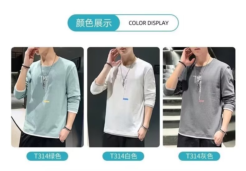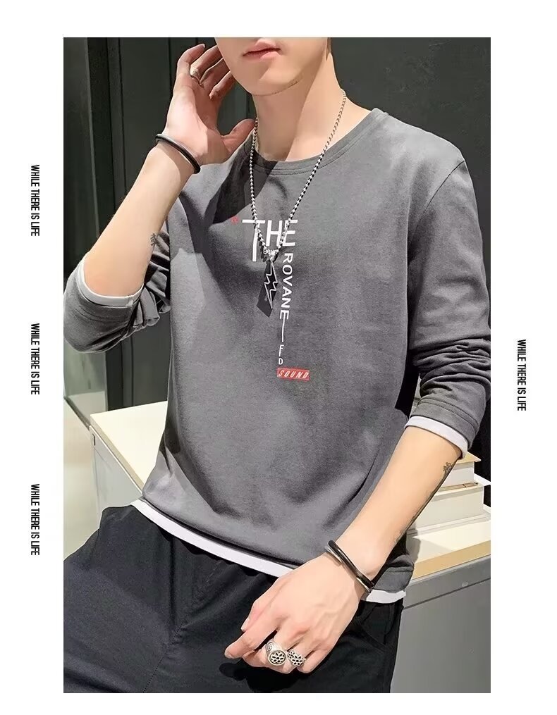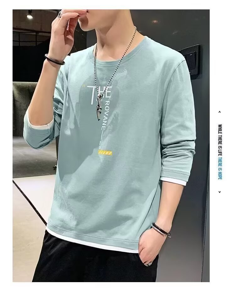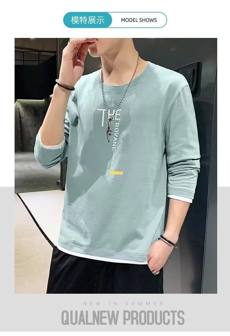 남자 긴팔 티셔츠 가을 2024 새로운 패션 브랜드 느슨한 가짜 투피스 티셔츠베이스 셔츠 가을 캐주얼 탑