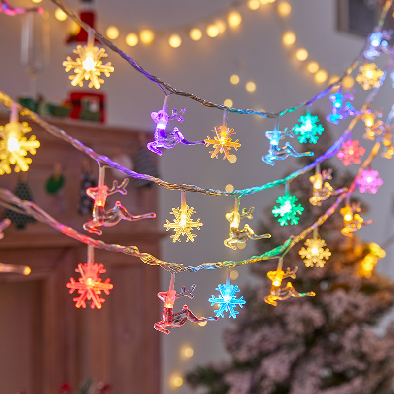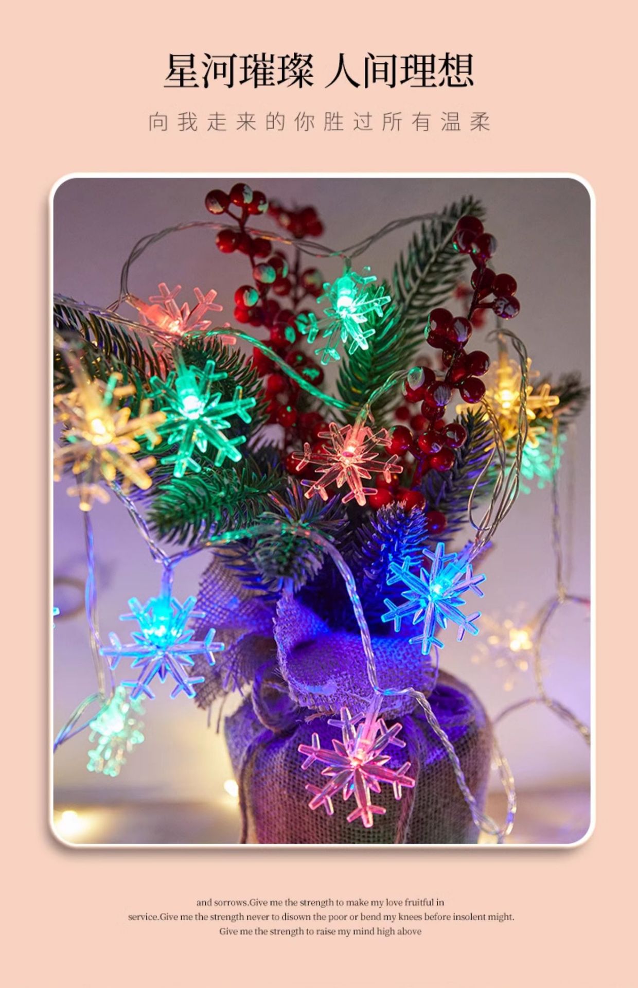 P66D 크리스마스 장식 led 눈송이 작은 컬러 조명 깜박이는 조명 끈 조명 별 야외 장면 레이아웃 분위기
