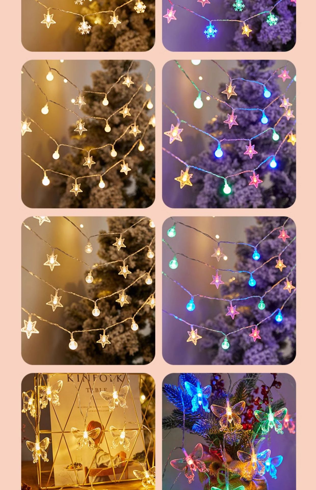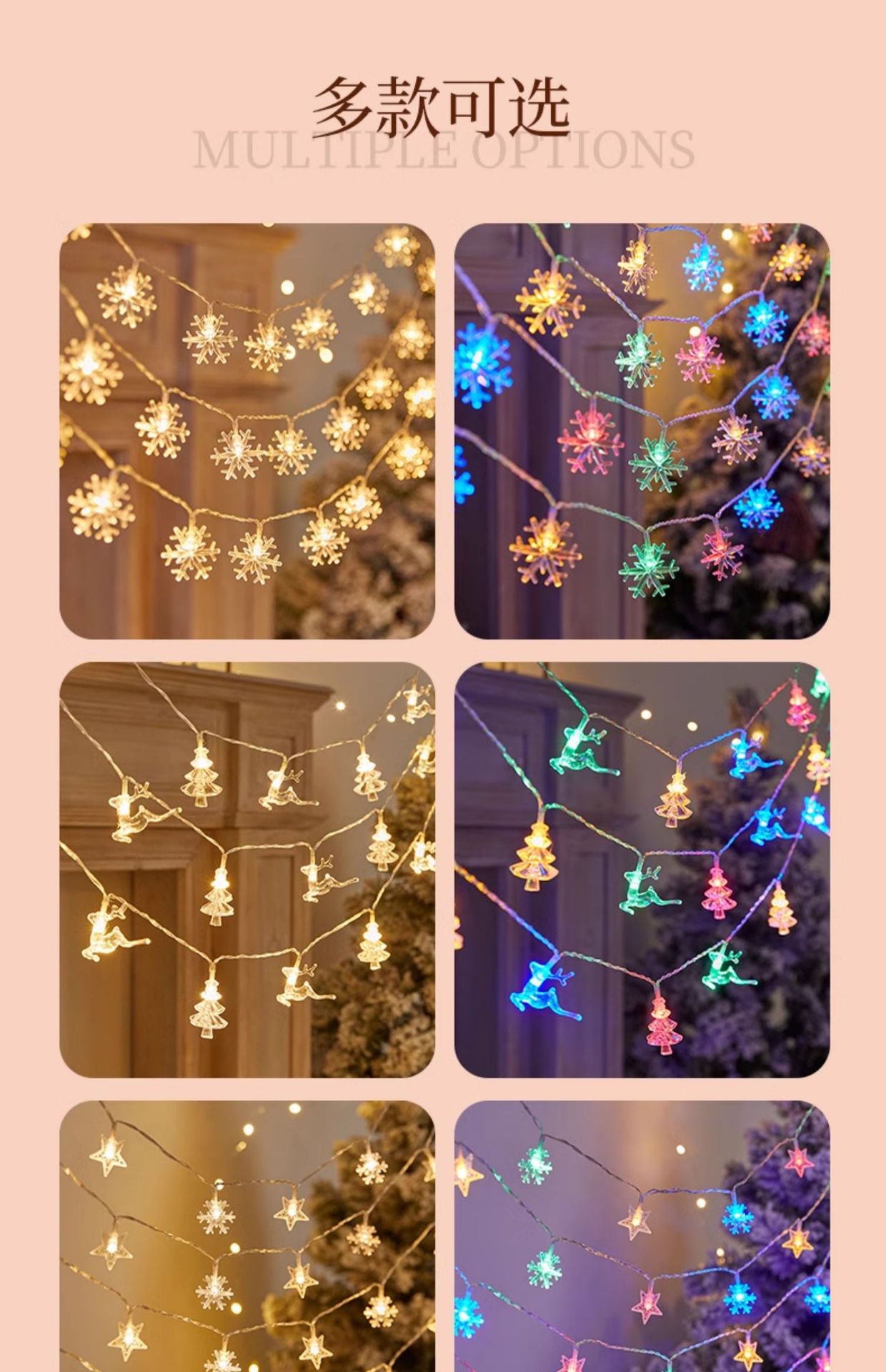 P66D 크리스마스 장식 led 눈송이 작은 컬러 조명 깜박이는 조명 끈 조명 별 야외 장면 레이아웃 분위기스토어 가기