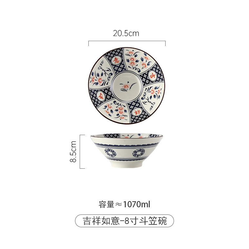 일본식 레트로 8 인치 가정용 세라믹 모자 뿔 그릇 국수 레스토랑 란 국수 그릇 대형 수프 그릇 달팽이 가루 식기스토어 가기