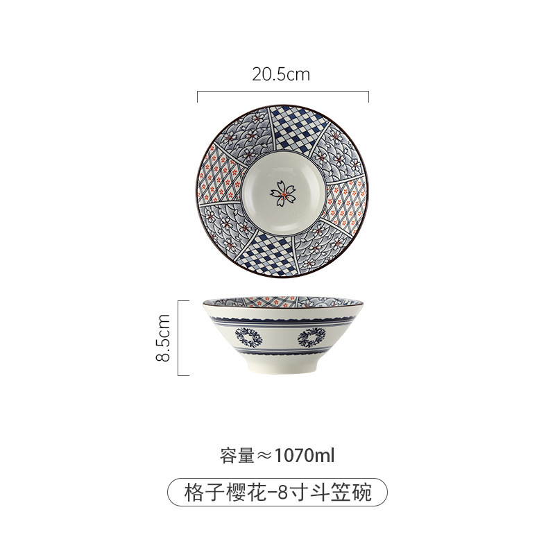 • 체크무늬 벚꽃 - 8inch 대나무 모자 그릇
