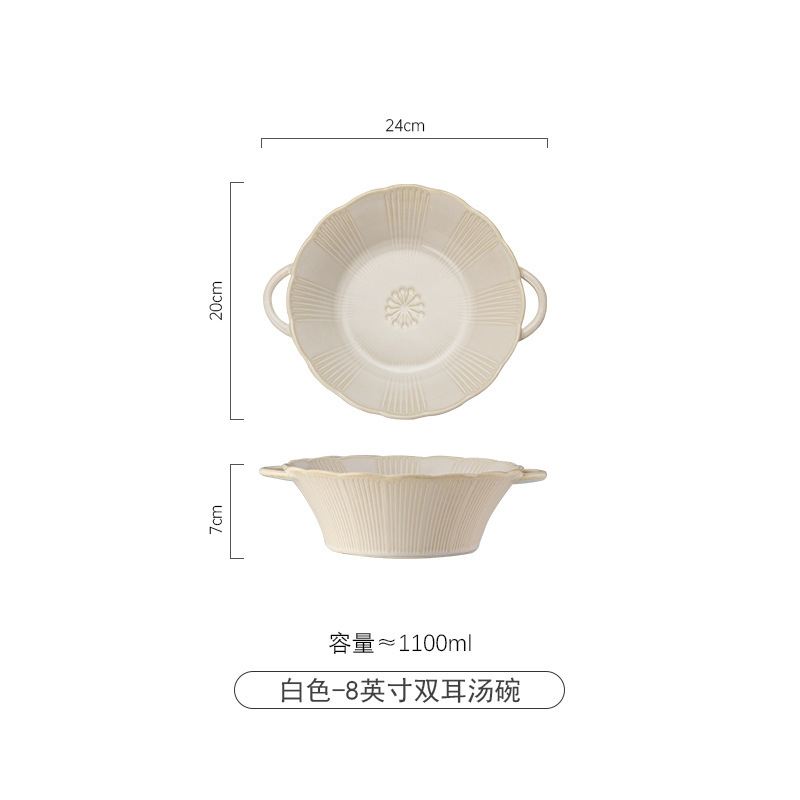 일본식 8.5 인치 가마 스타일 레이스 바이노럴 세라믹 식기 가정용 쌀 그릇 인스턴트 국수 그릇 디저트 샐러드 그릇 수프 그릇