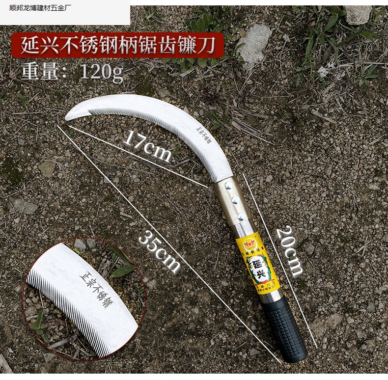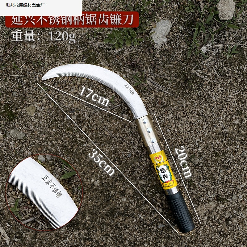 잔디 절단 낫 농업 절단 부추 쌀 제초 스테인레스 스틸 톱니 모양의 칼 블레이드 잔디 칼 절단 잔디 칼. 공장스토어 가기