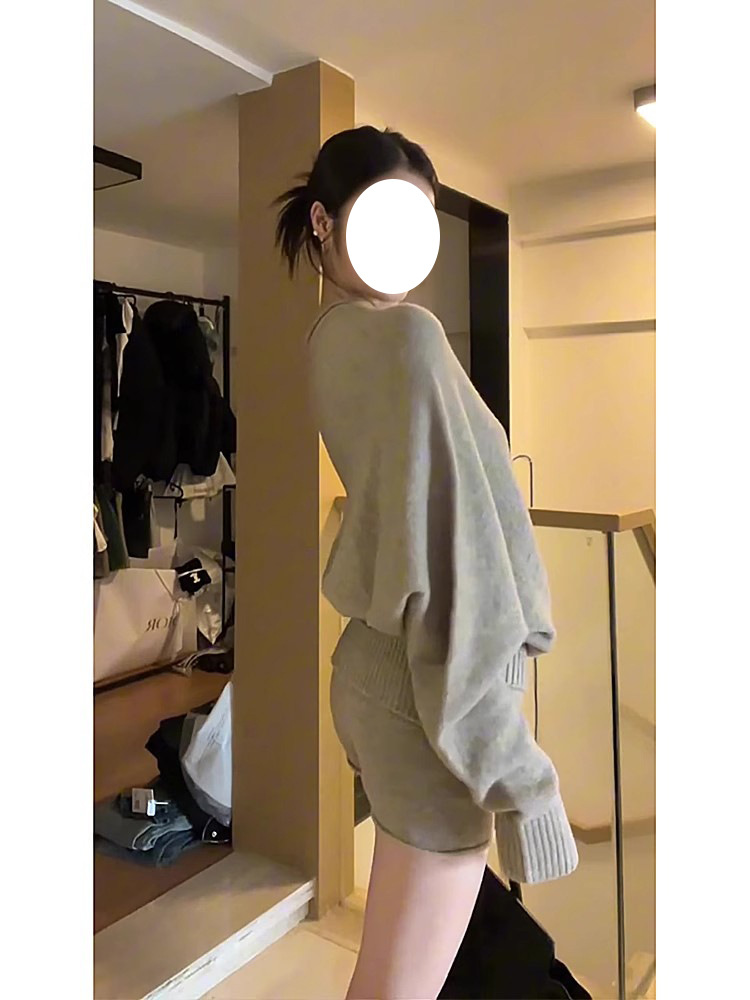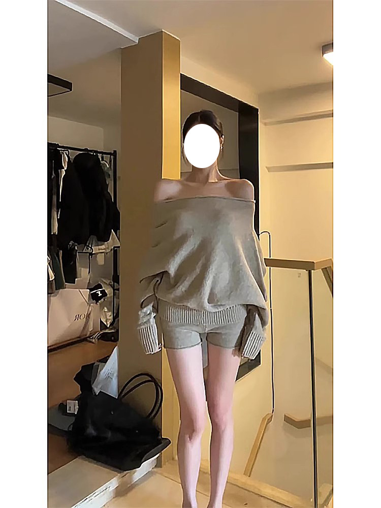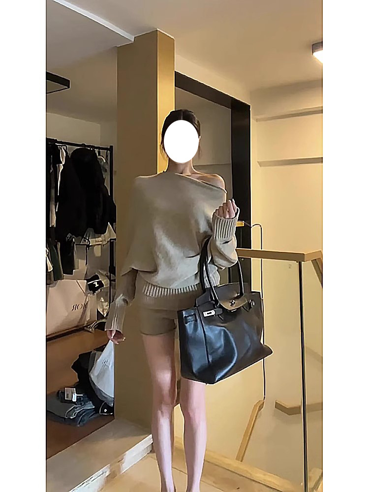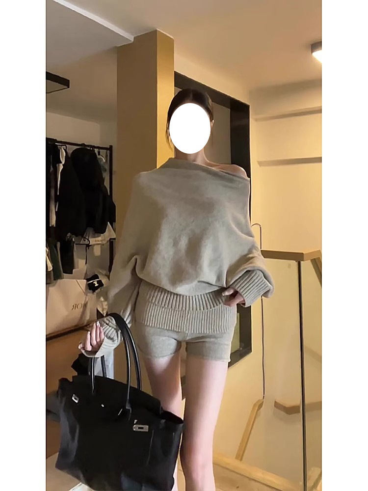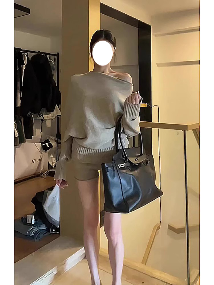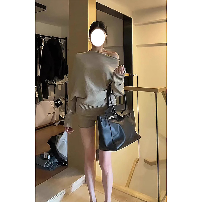 카키 게으르고 편안한 오비큐 칼라 오픈 숄더 니트 스웨터 여성 가을 핫 걸즈 루즈 슬리밍 소프트 왁스 스웨터 탑