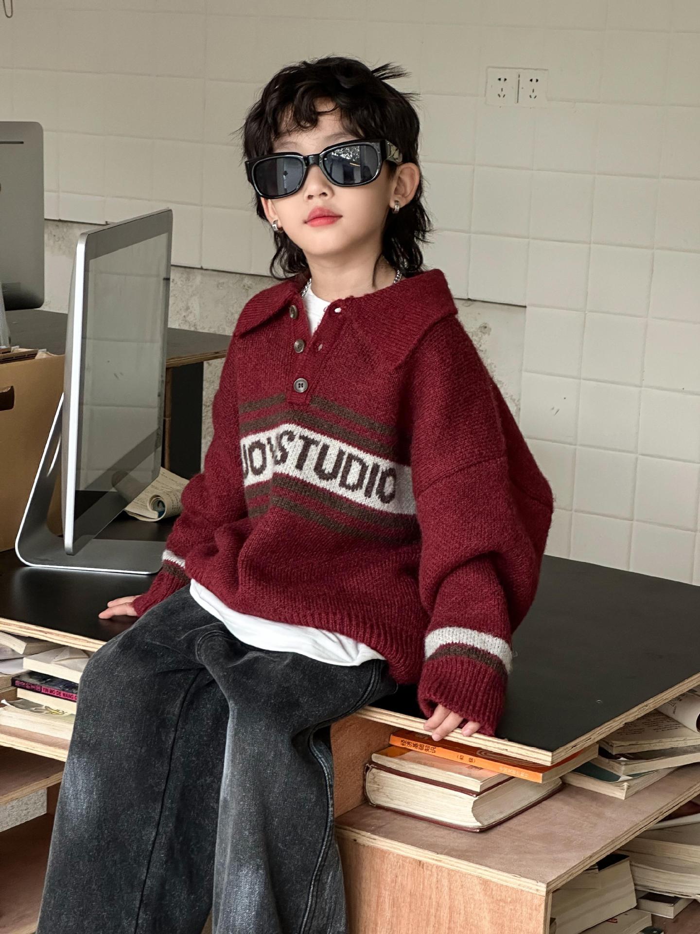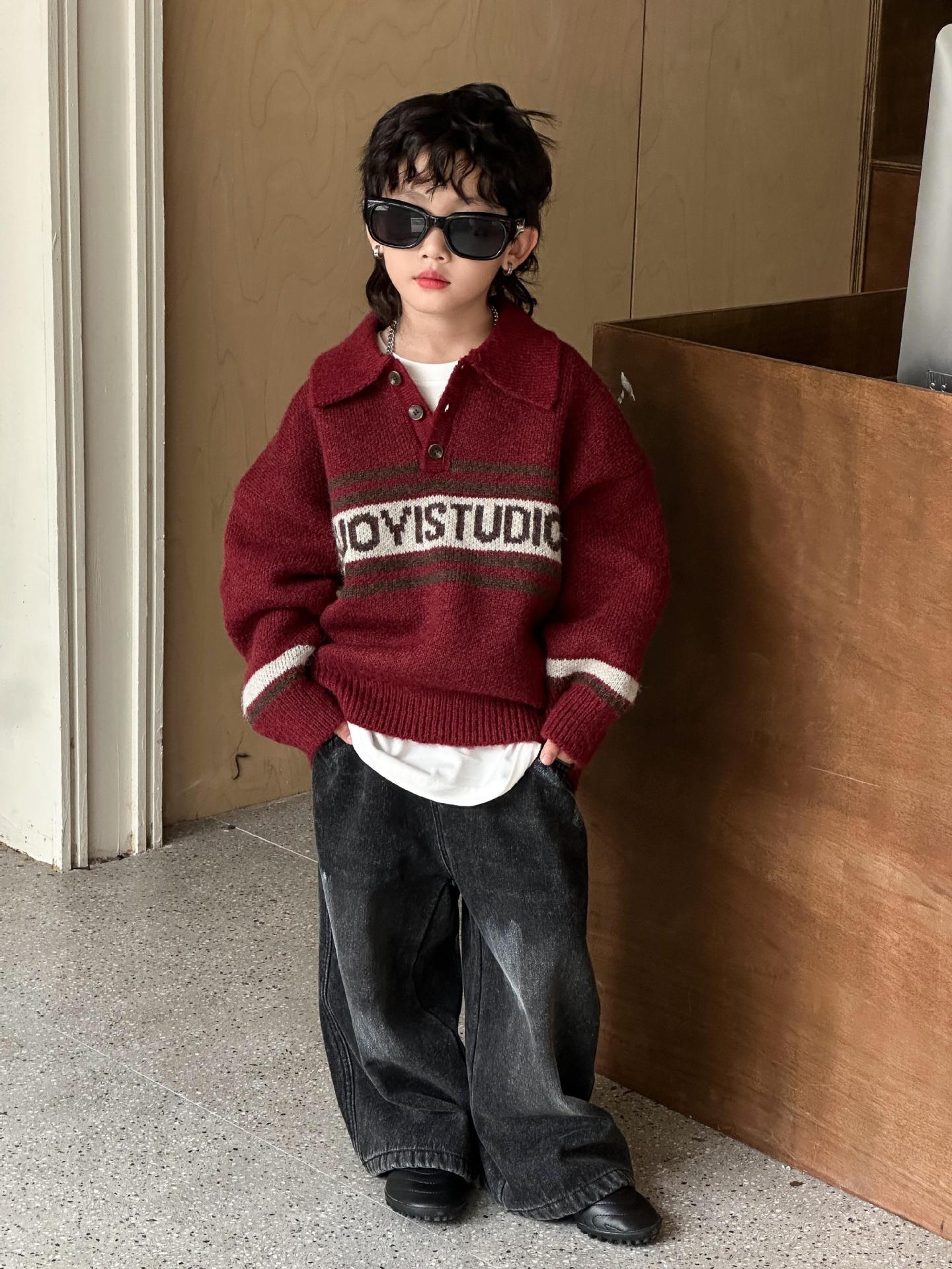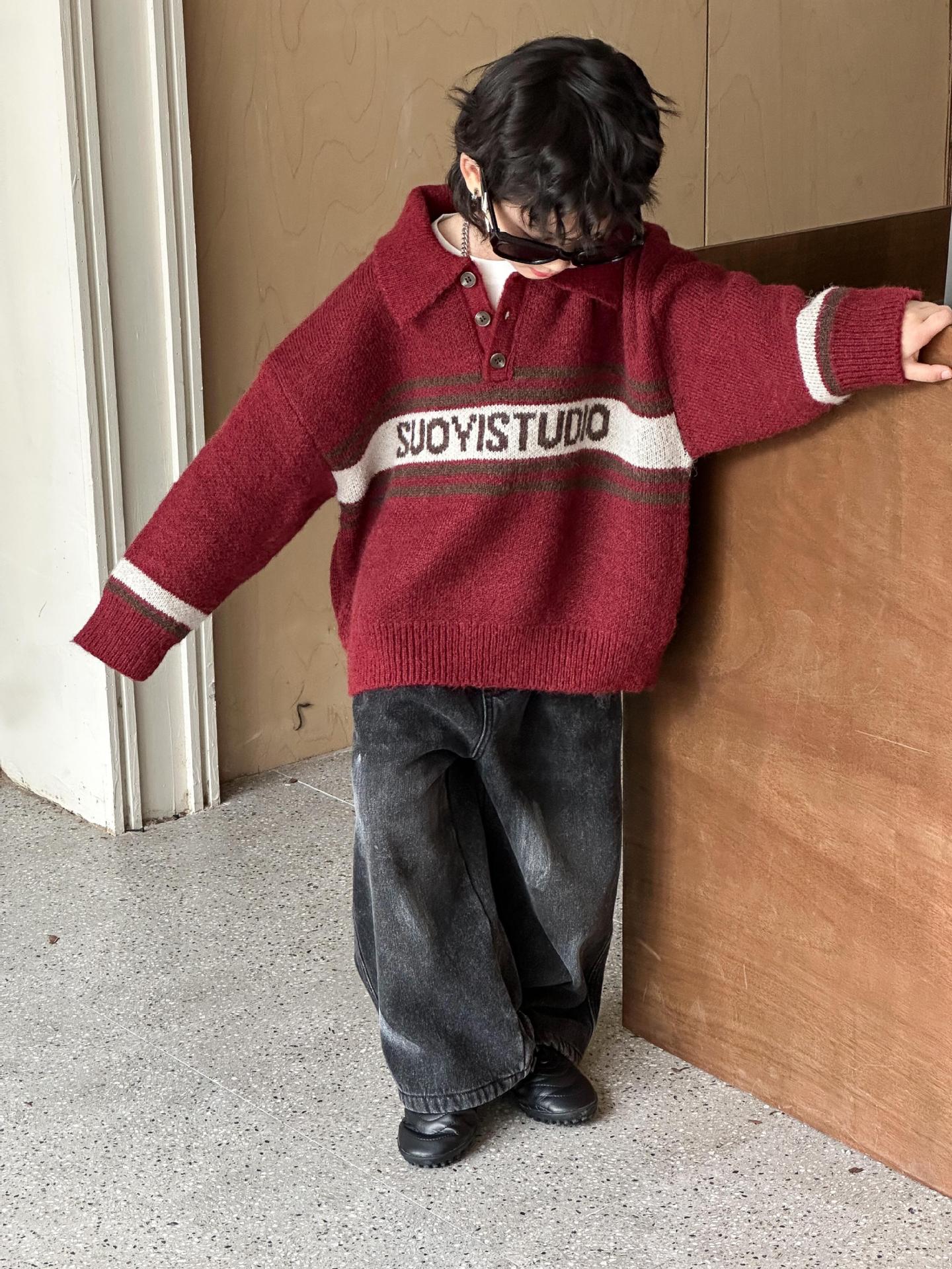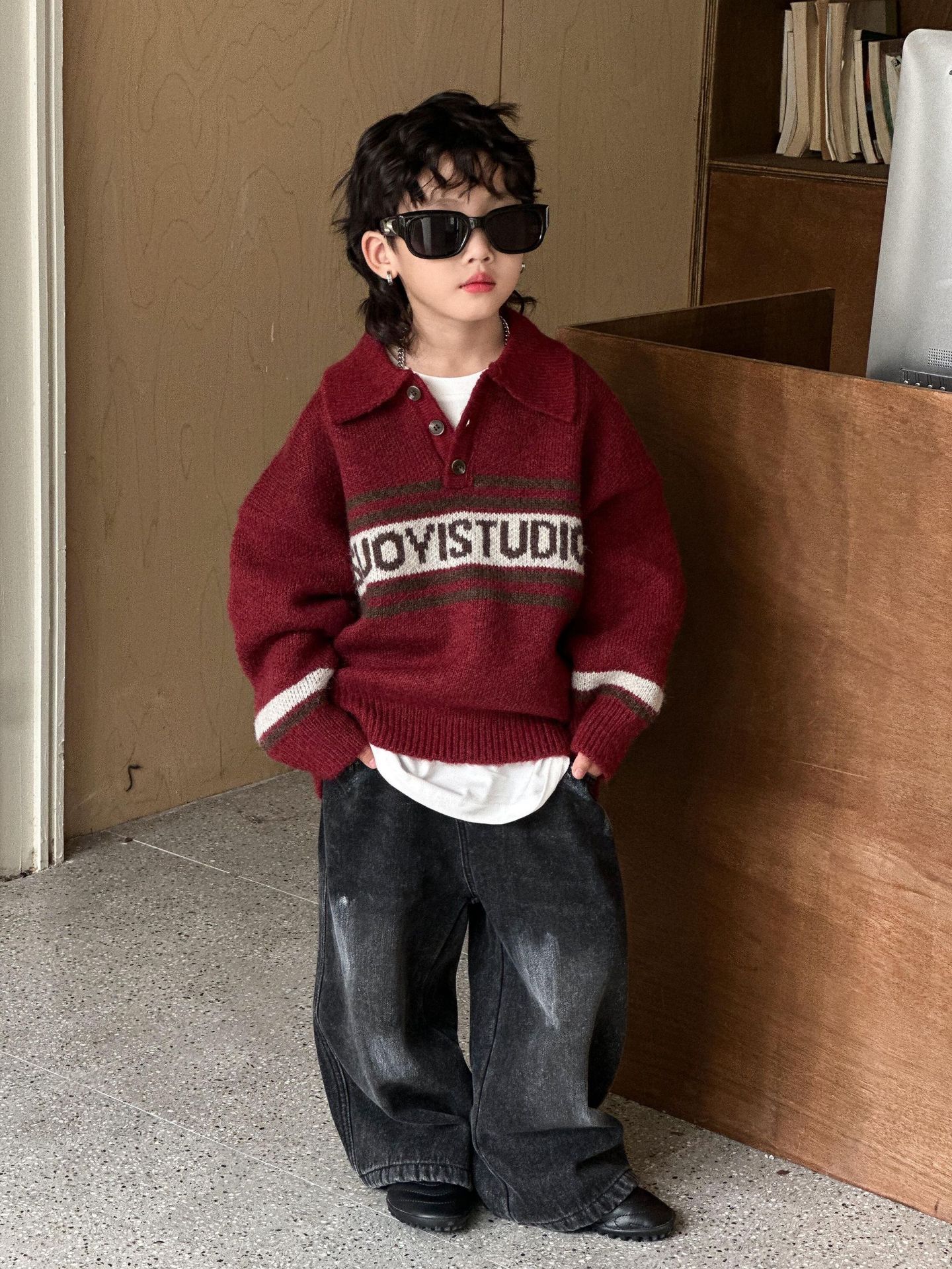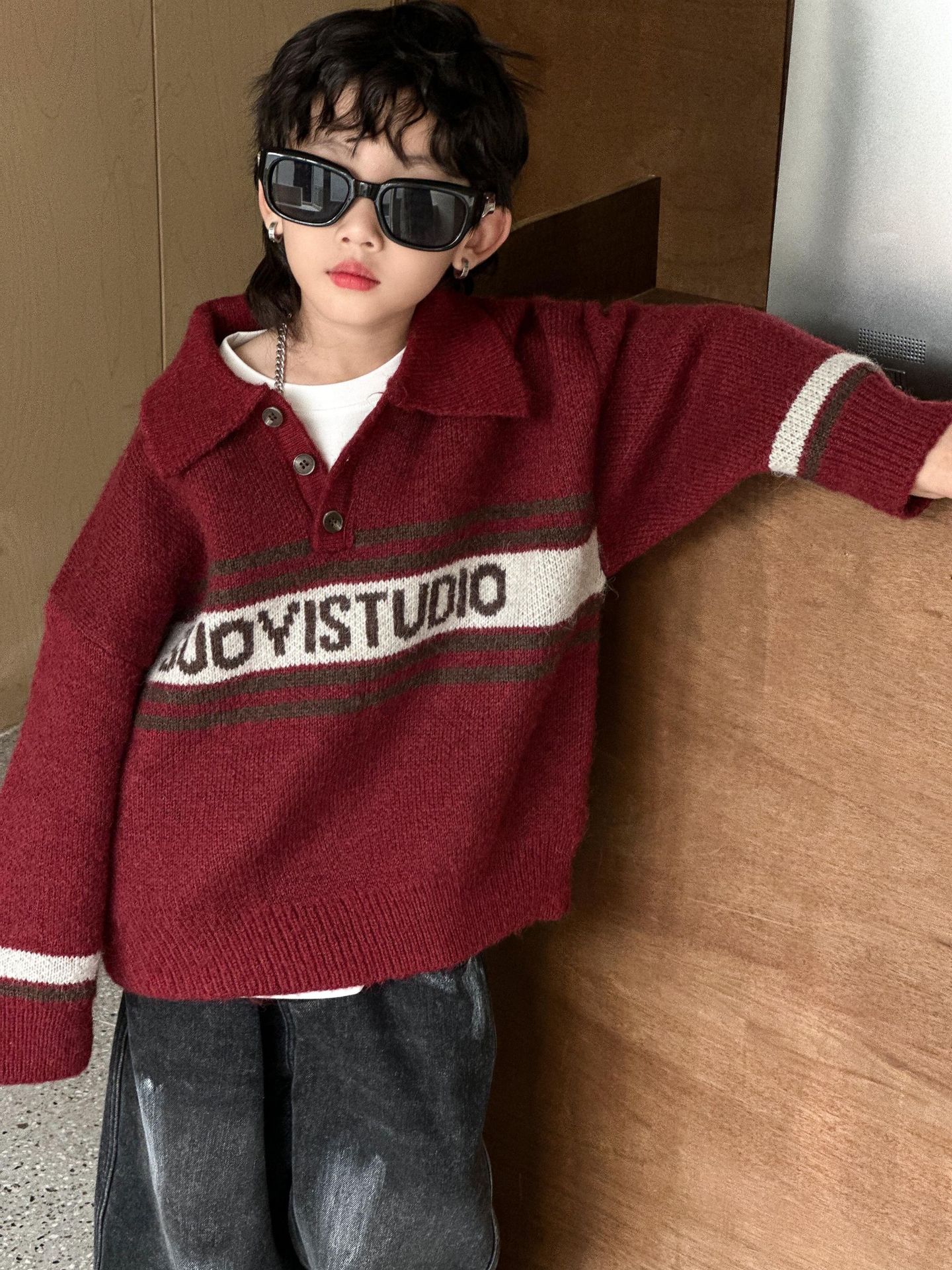 가을과 겨울의 근원 추적 2024 소년 어린이를위한 새로운 스웨터 카디건 패션 올매치 트렌디 쿨 코리안 탑