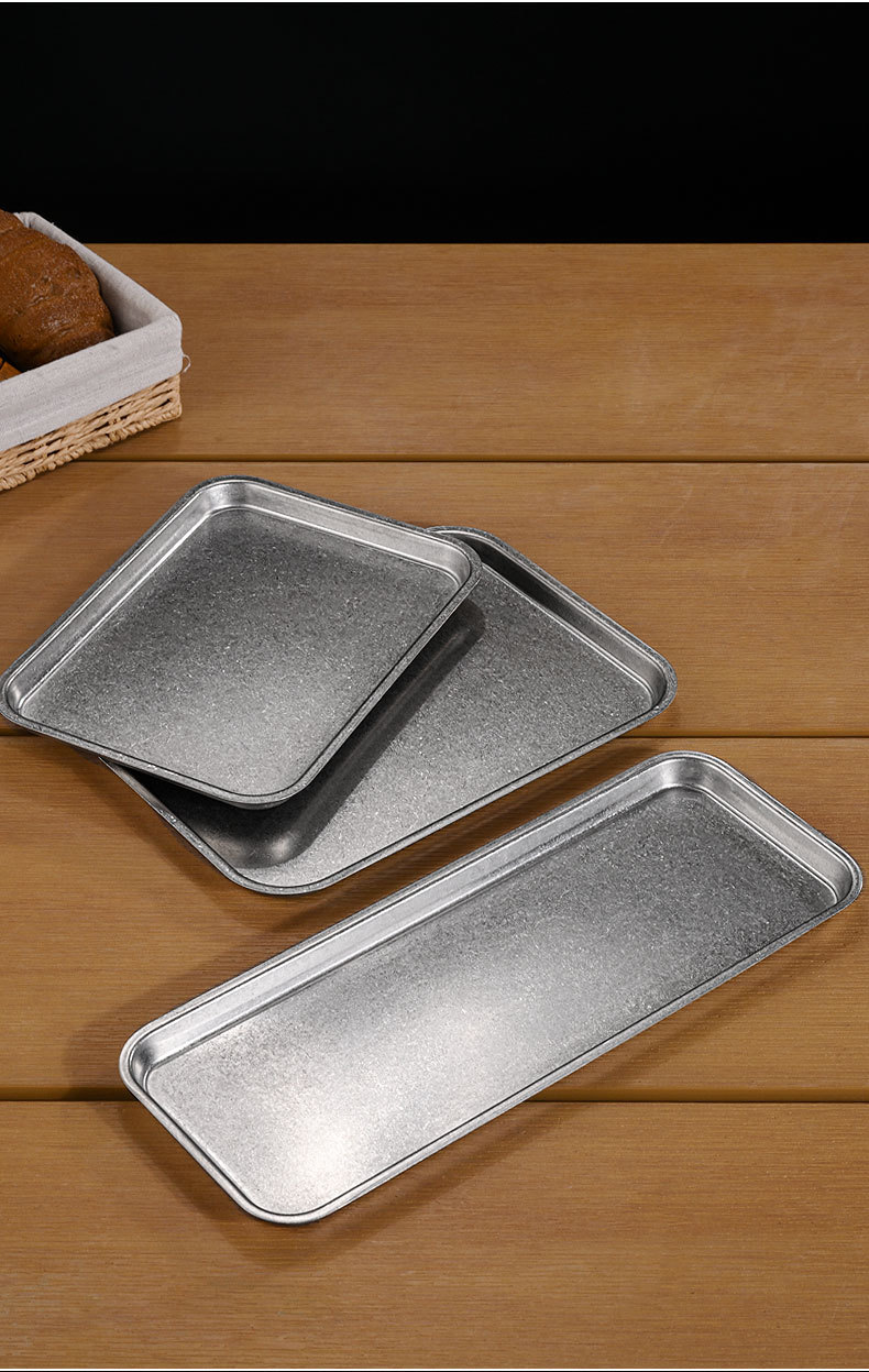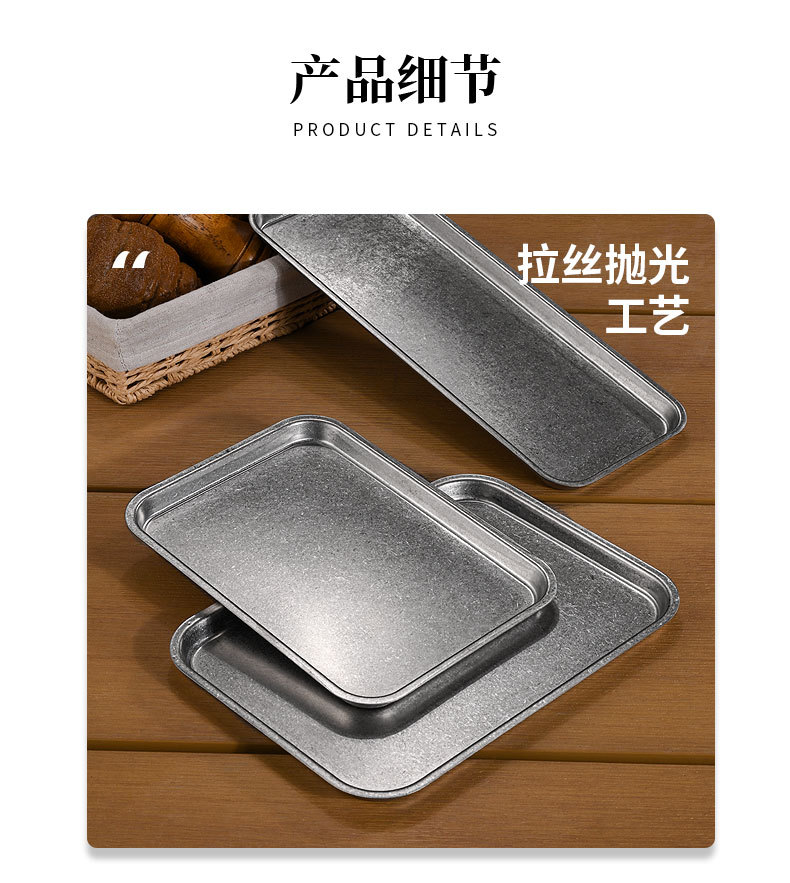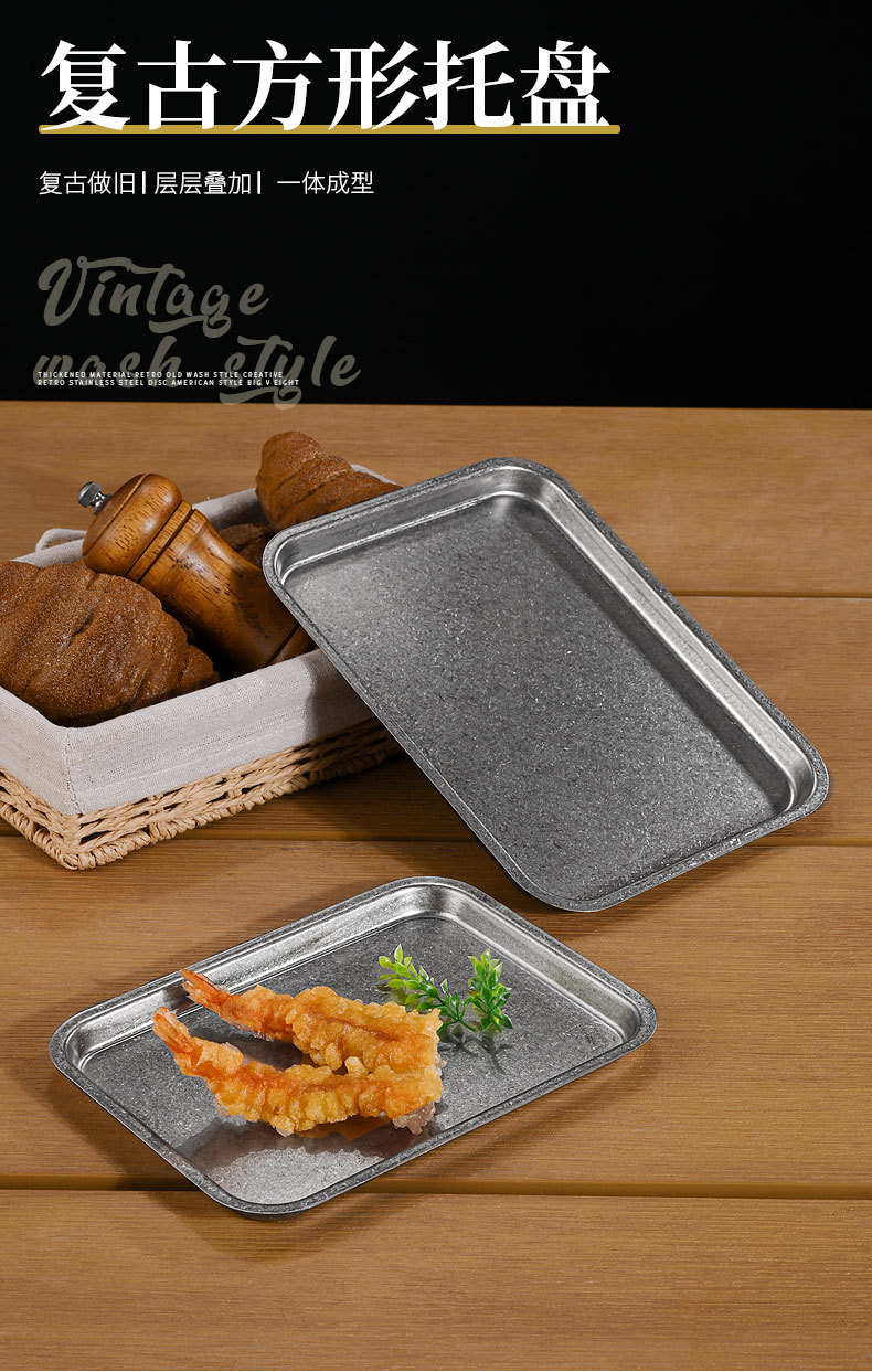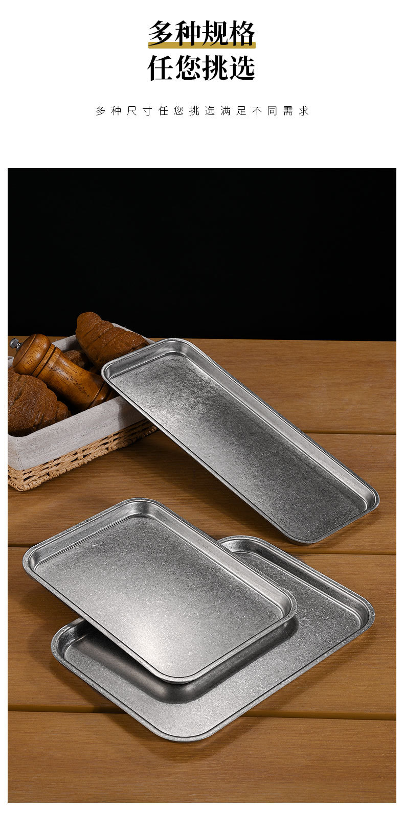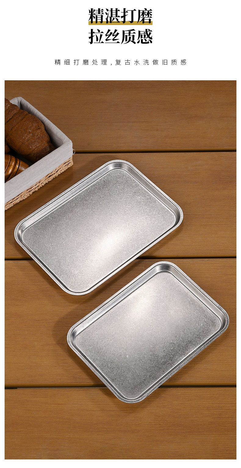 레트로 오래된 스테인레스 스틸 직사각형 트레이 가정용 접시 플랫 바닥 상업용 얕은 접시 스낵 접시 디너 접시 디저트 접시스토어 가기