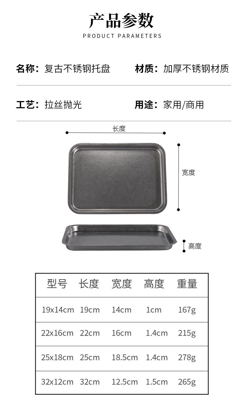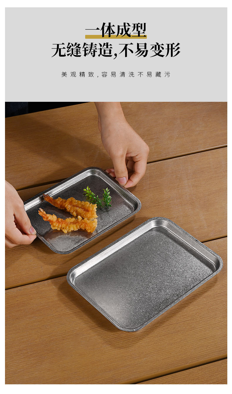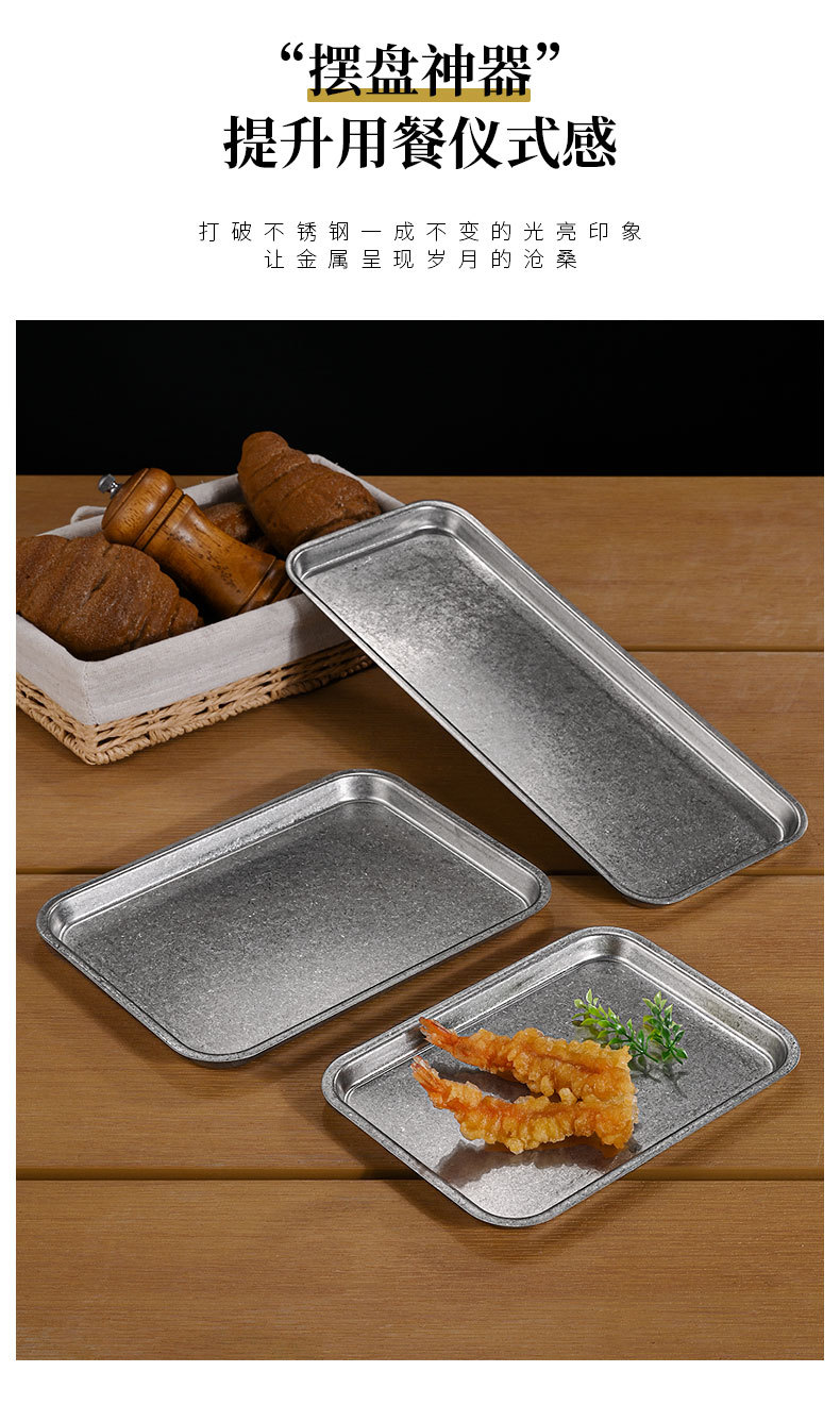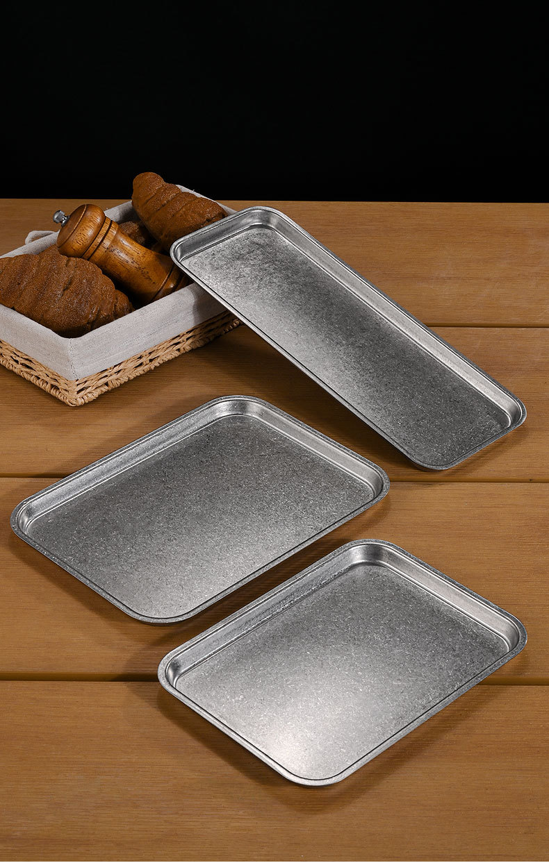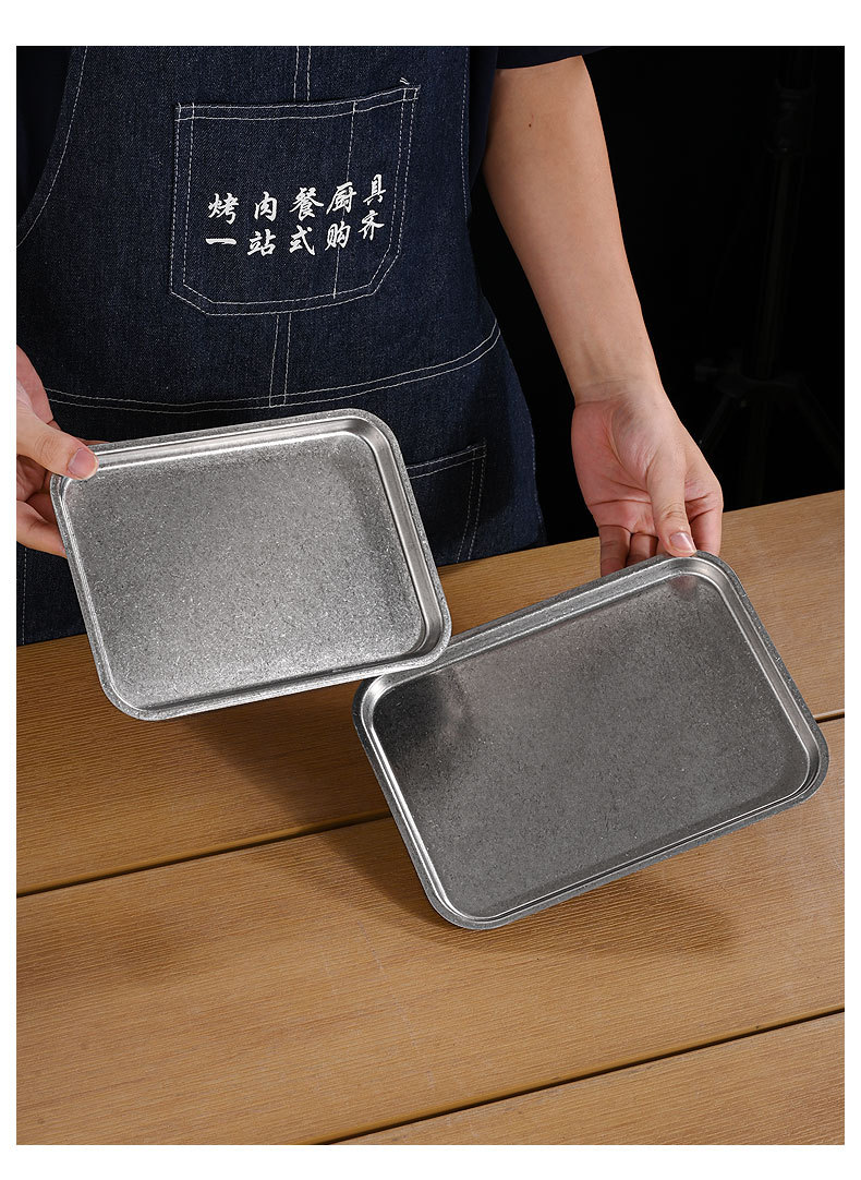 레트로 오래된 스테인레스 스틸 직사각형 트레이 가정용 접시 플랫 바닥 상업용 얕은 접시 스낵 접시 디너 접시 디저트 접시스토어 가기