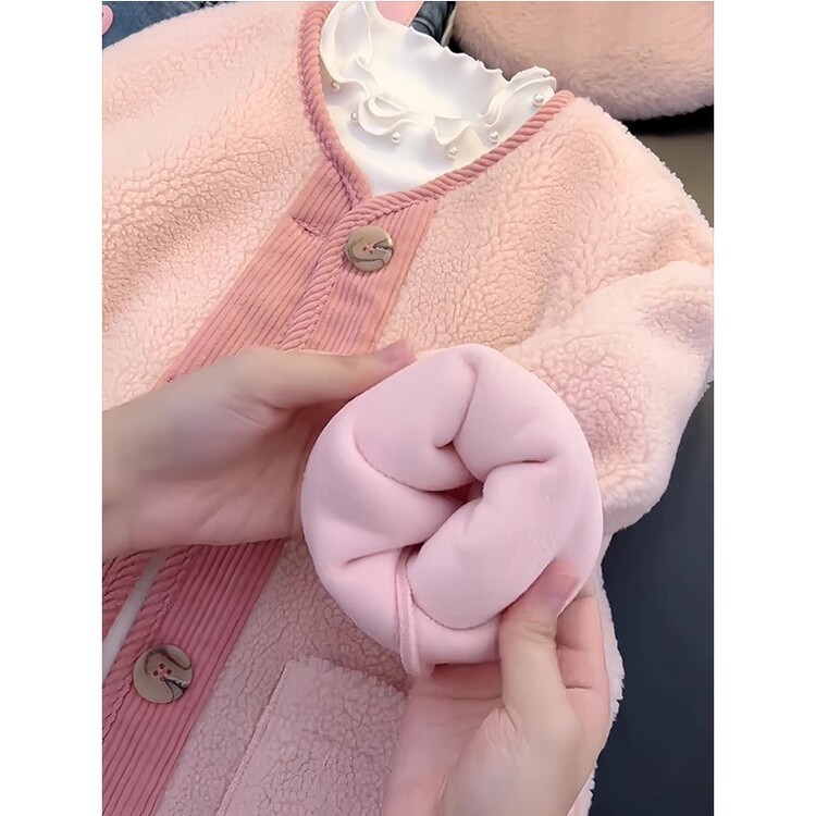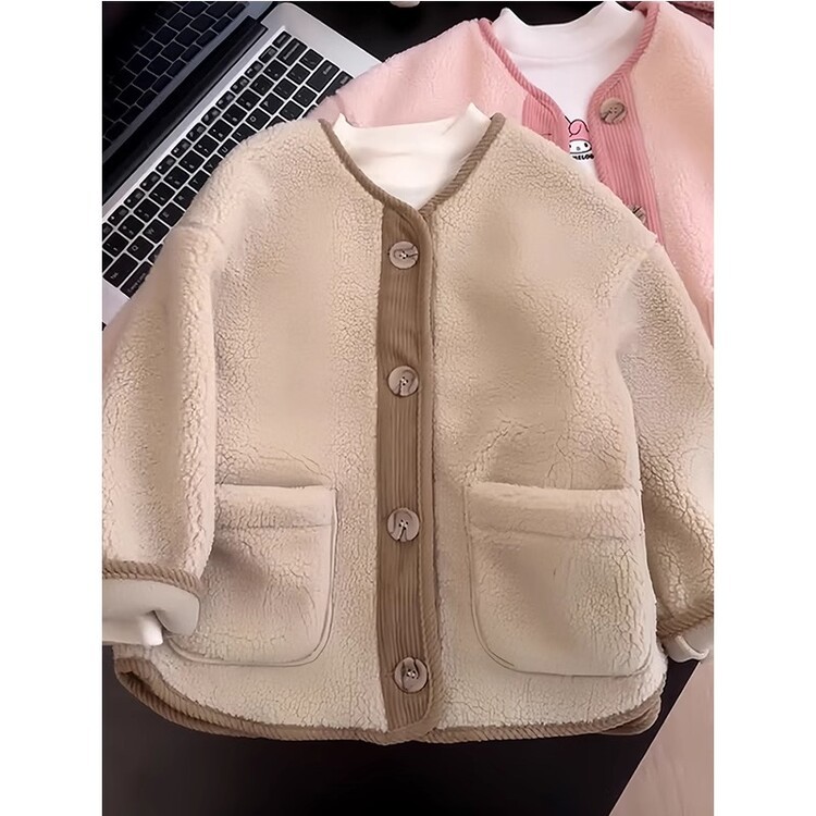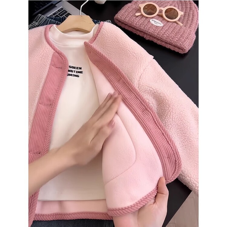 소녀 양털 코트 가을과 겨울 새로운 스타일 외국 스타일 대비 양면 양털 스티칭 코듀로이 따뜻한 코트