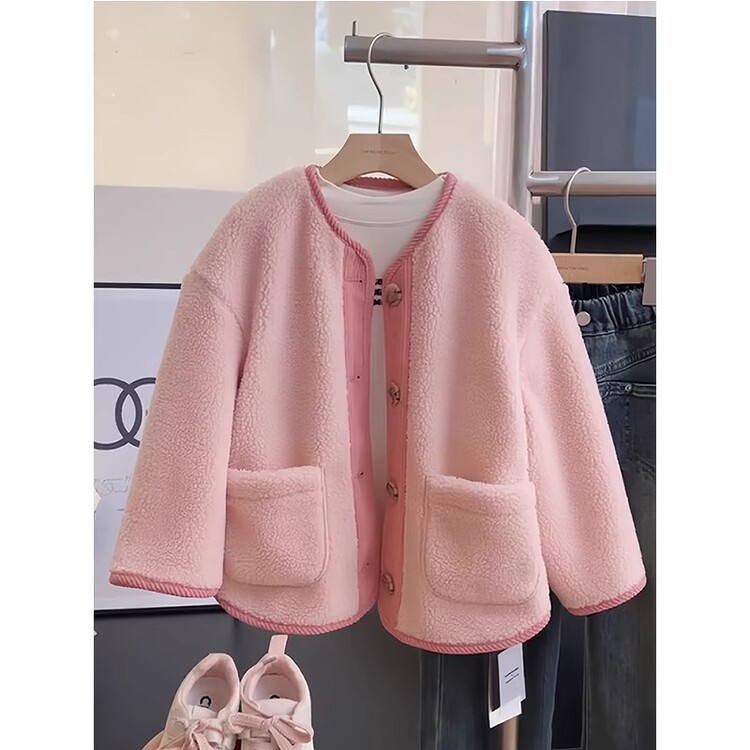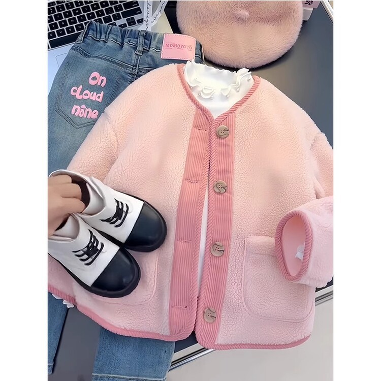 소녀 양털 코트 가을과 겨울 새로운 스타일 외국 스타일 대비 양면 양털 스티칭 코듀로이 따뜻한 코트스토어 가기