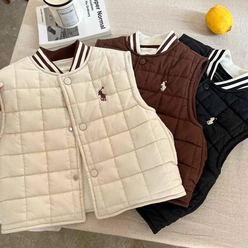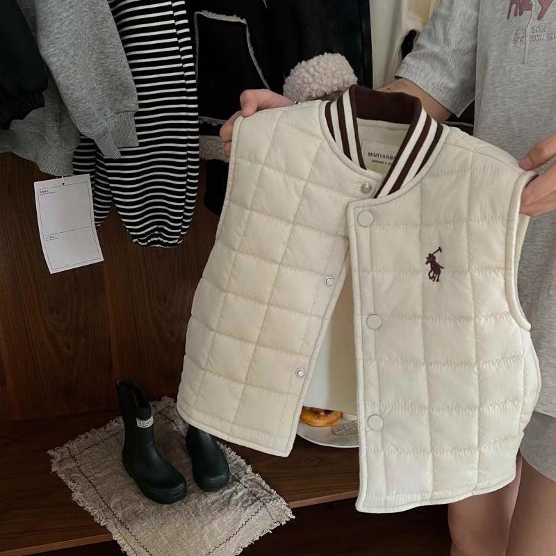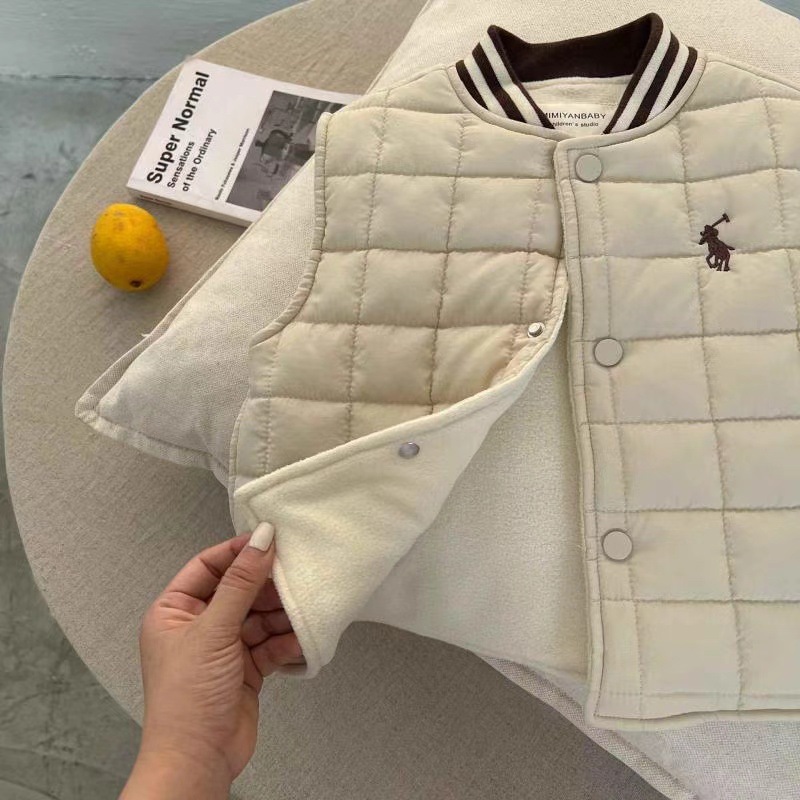 어린이 코튼 조끼 소년의 면화 패딩 된 가을 및 겨울 어린이 코트 트렌디 브랜드 아기의 격자 무늬 해충 여성면 외부 착용