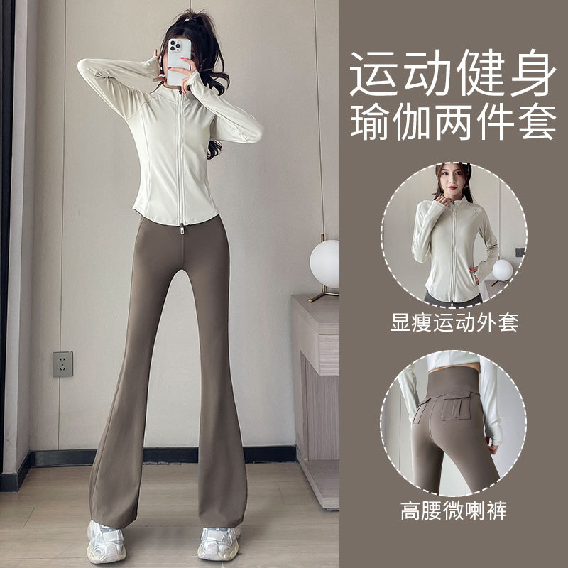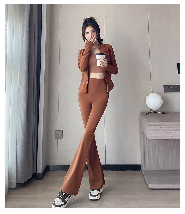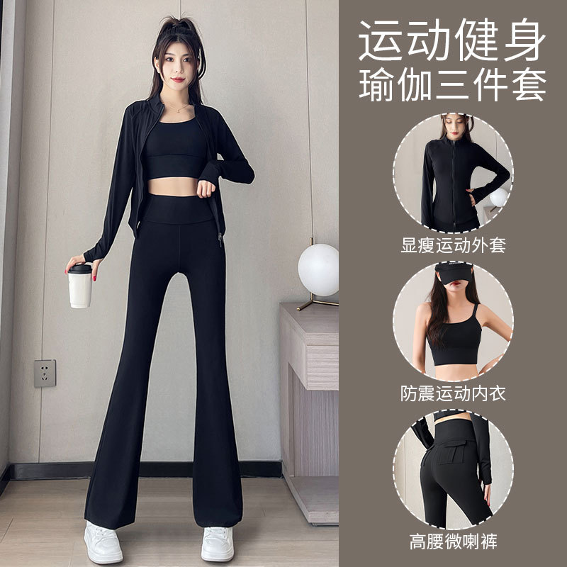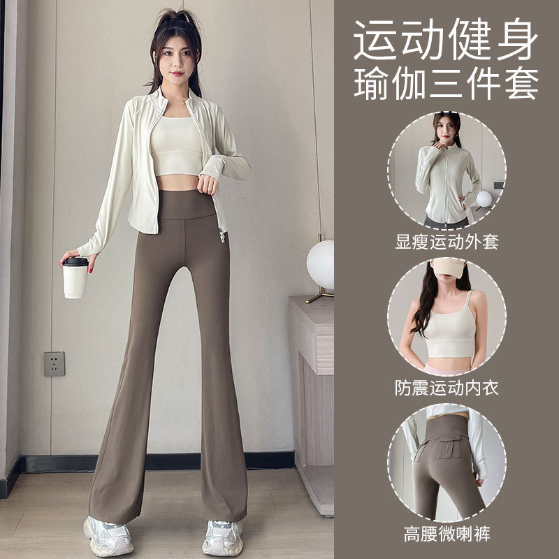 높은 가치의 요가 세트 3 피스 세트 여성 2024 새로운 하이 엔드 스포츠 피트니스 필라테스 하이 웨이스트 마이크로 팬츠