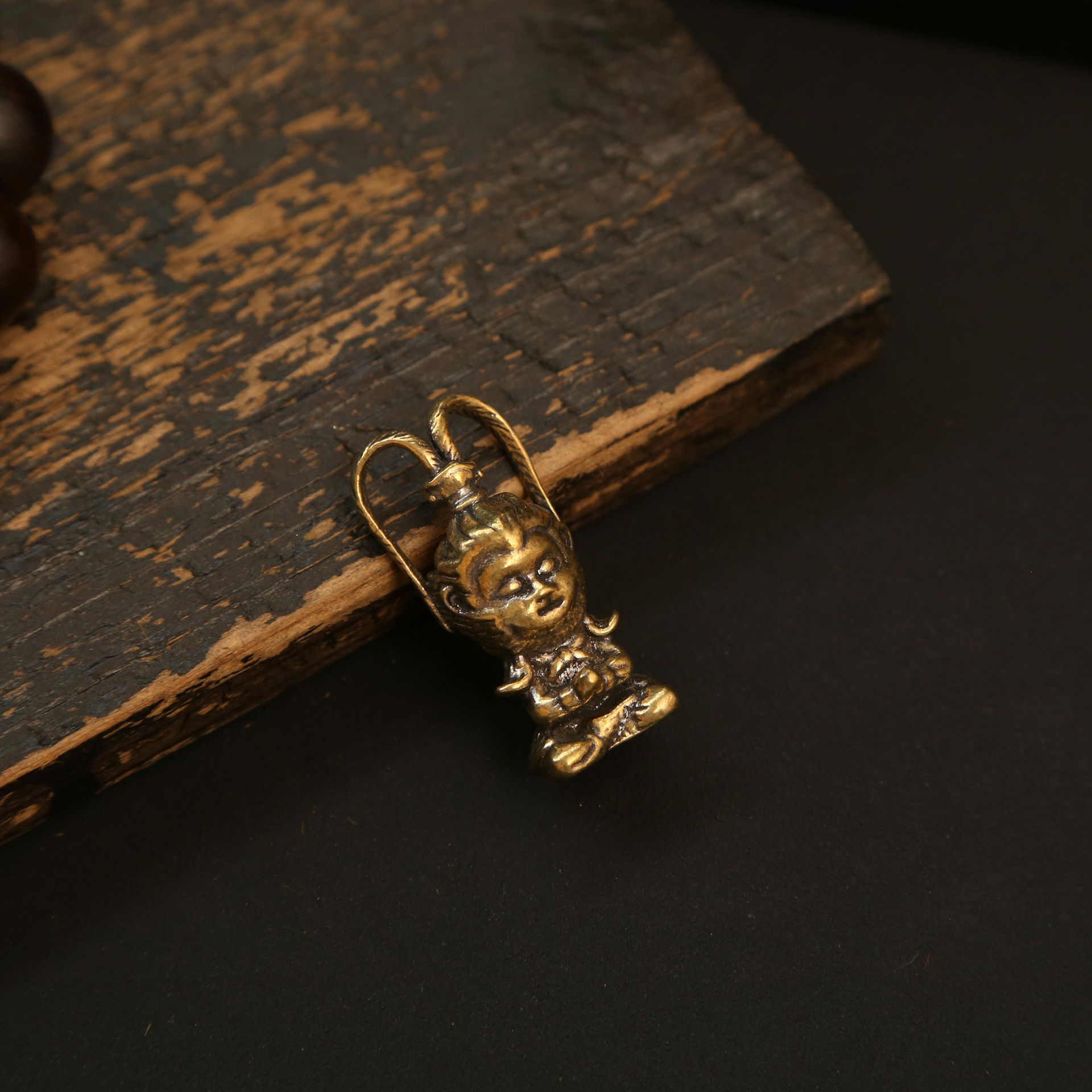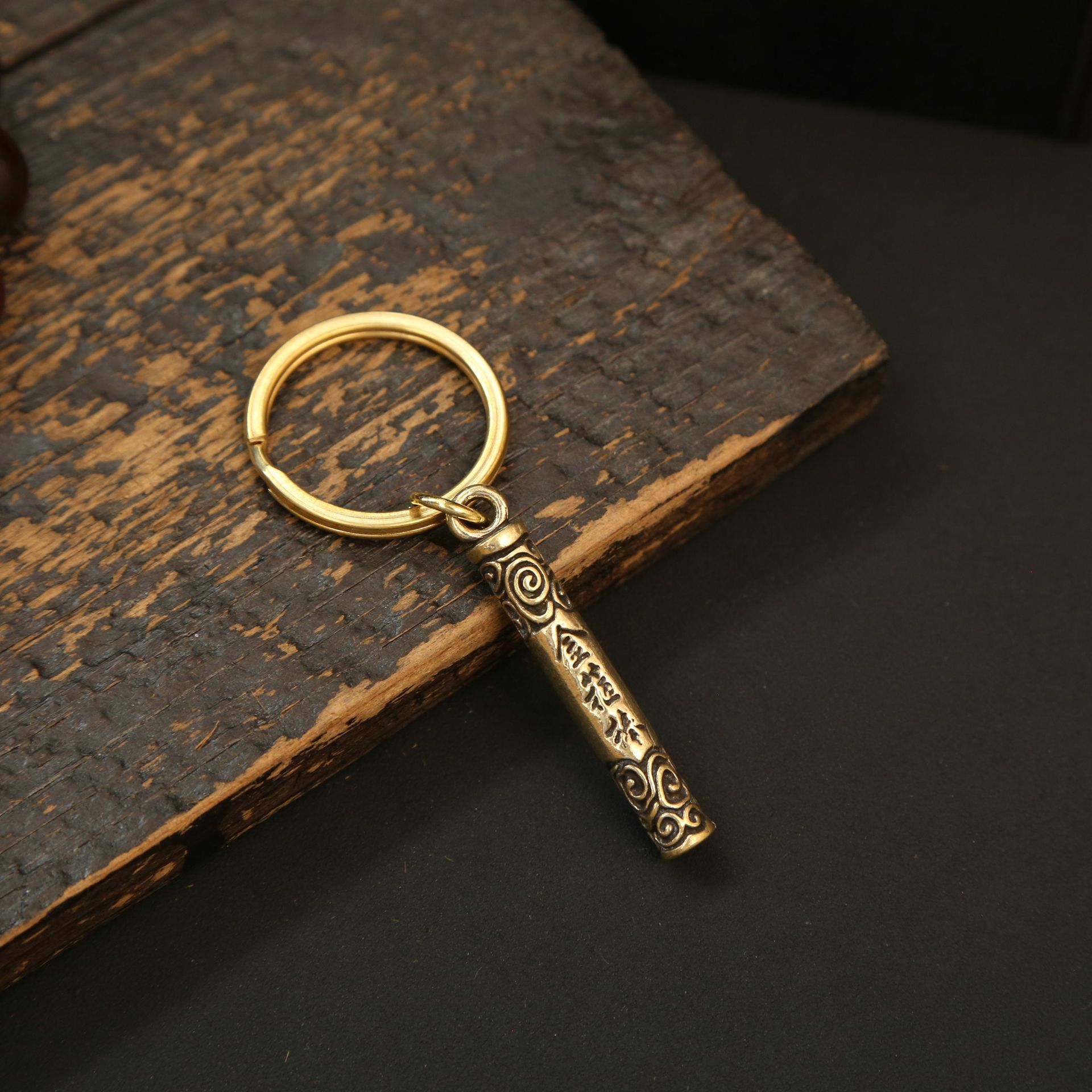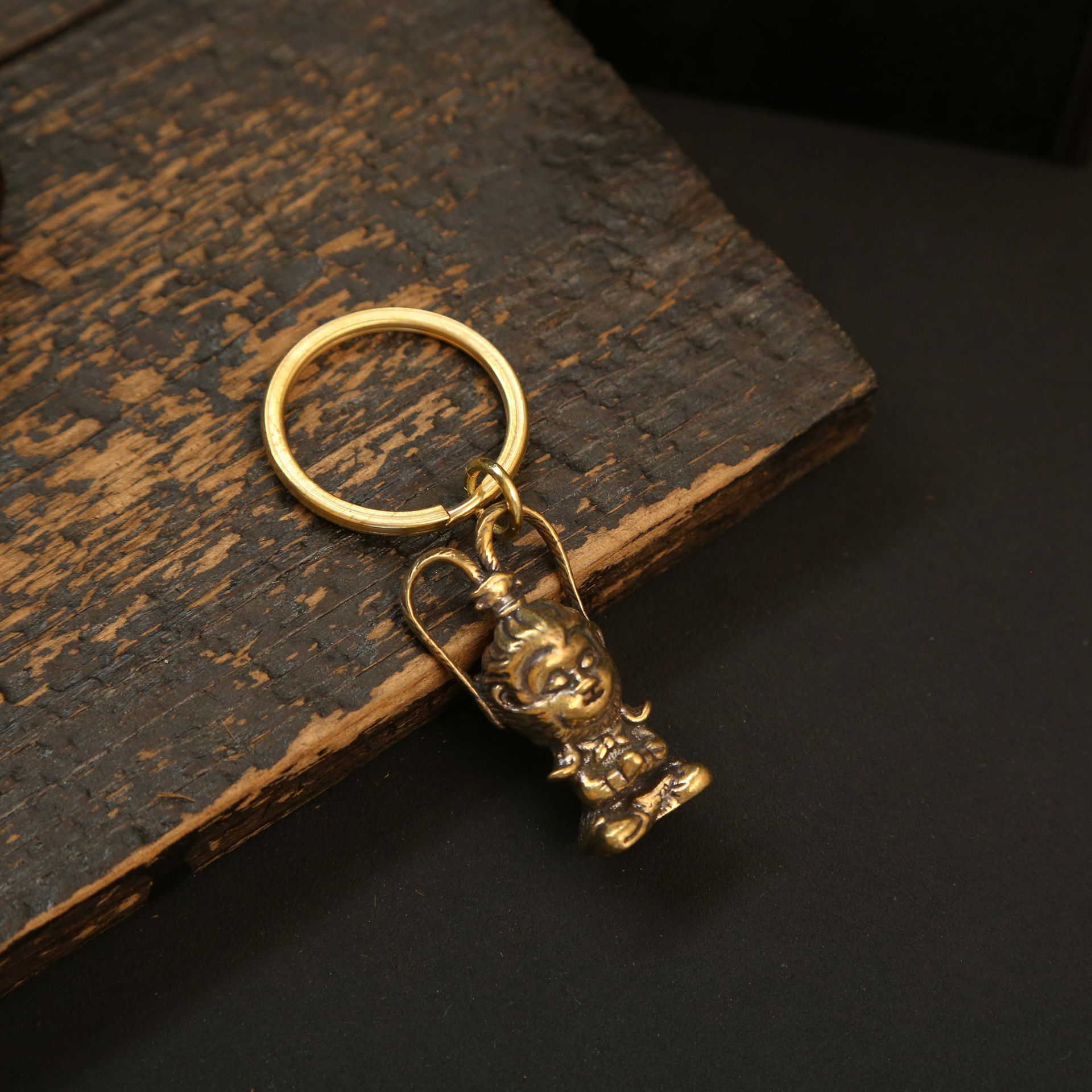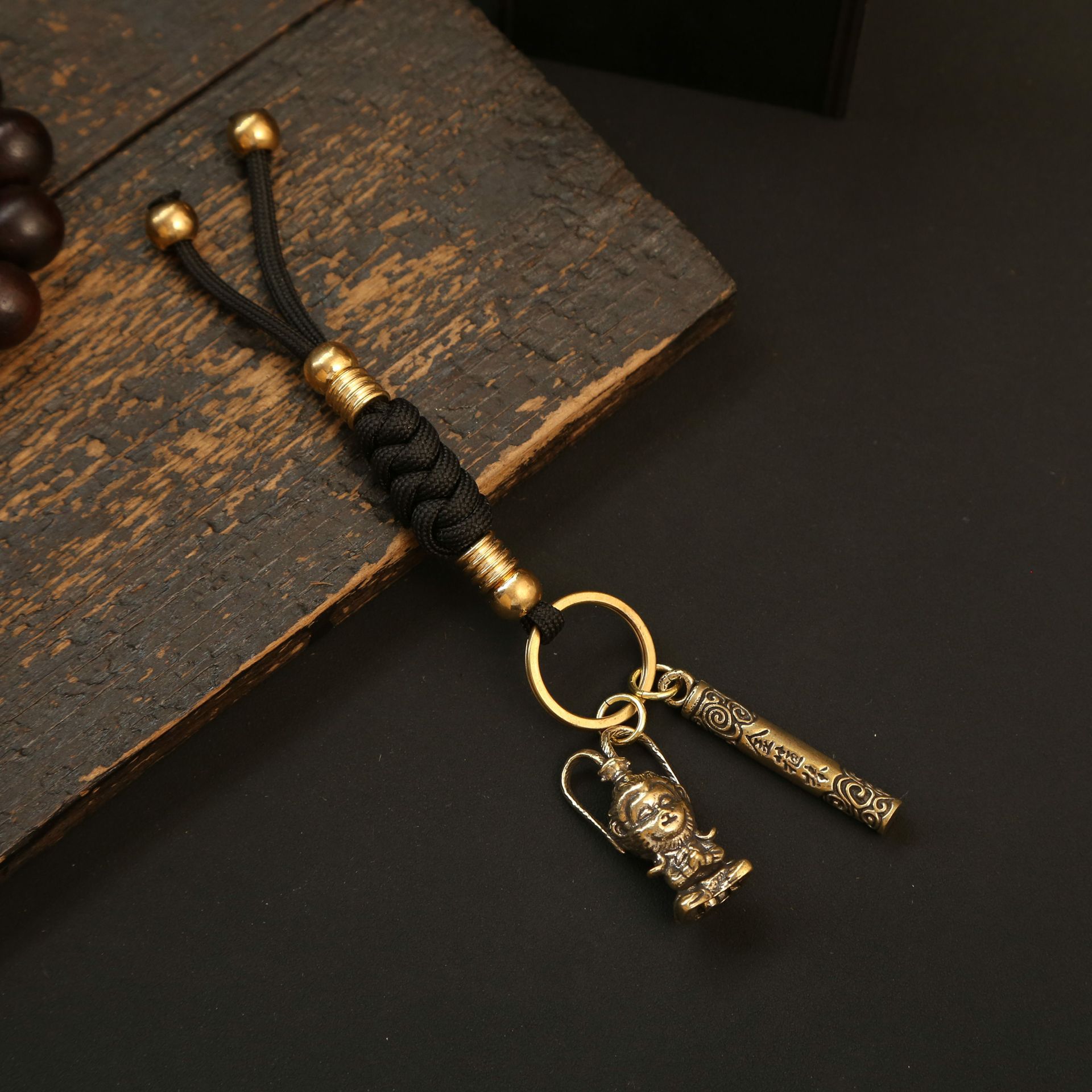 황동 전투 세인트 불상 우콩 자동차 키 체인 펜던트 탕 잔디 링 레트로 오래된 공예 남성과 여성의 가방 펜던트