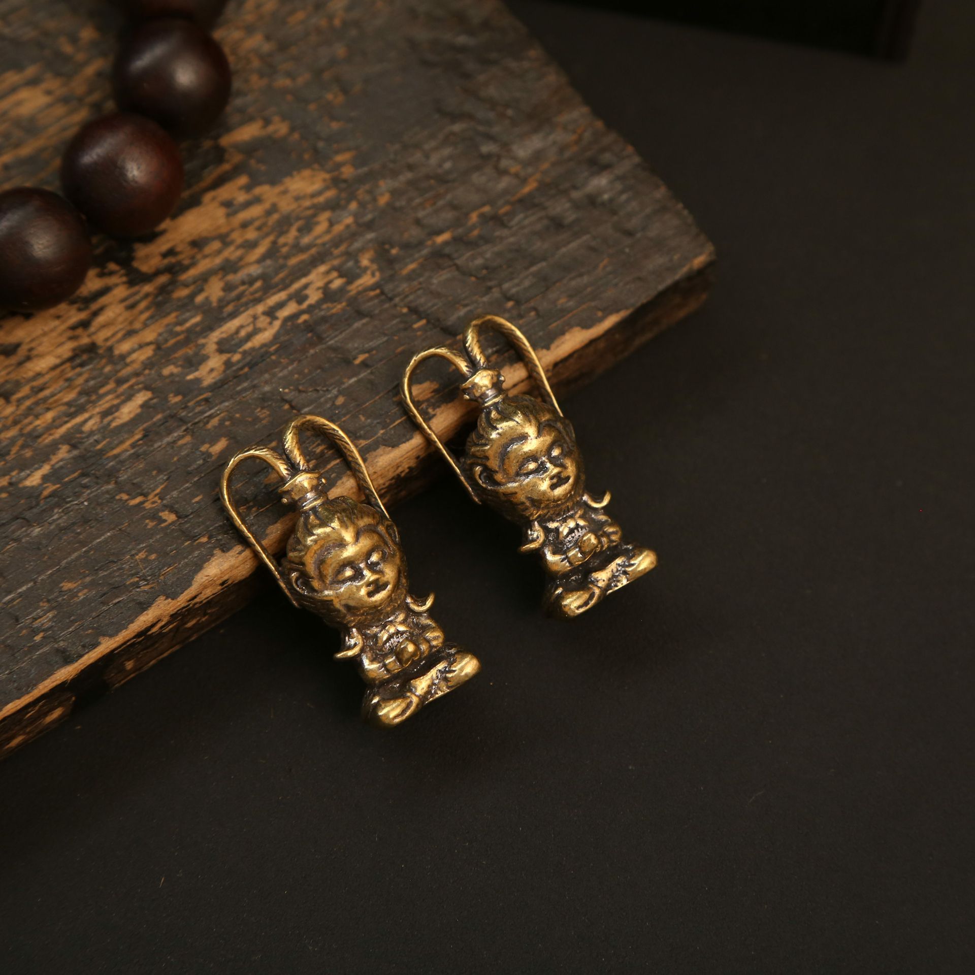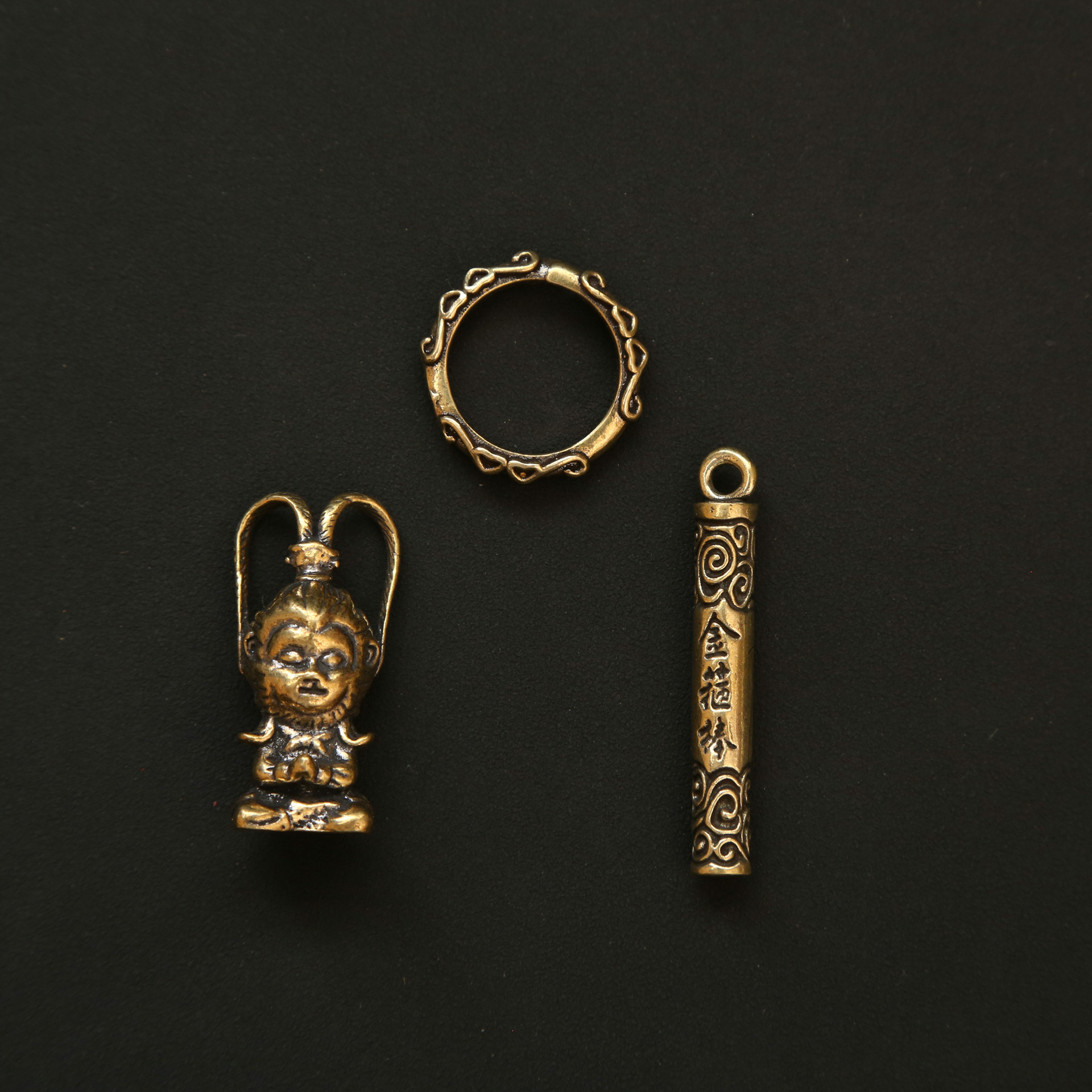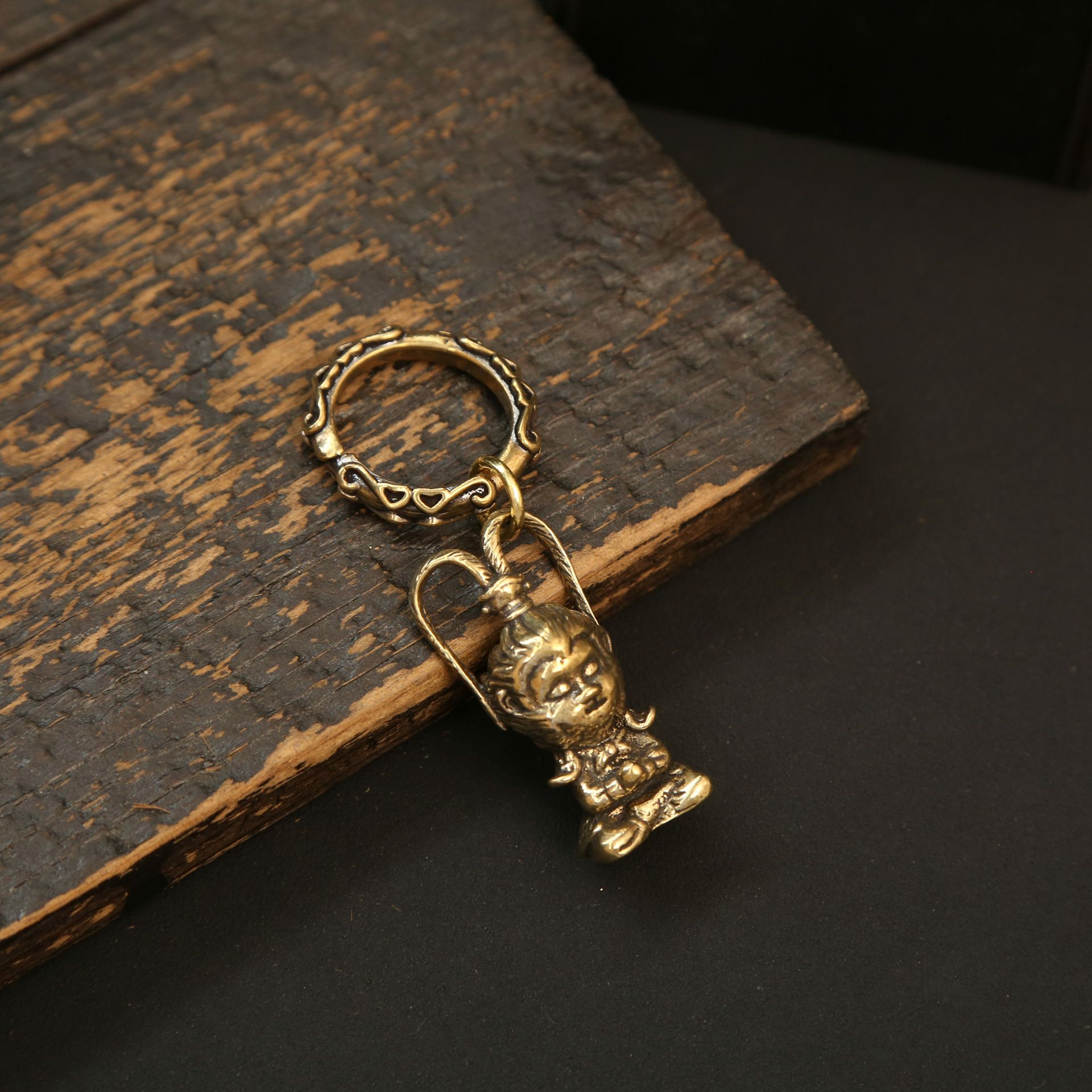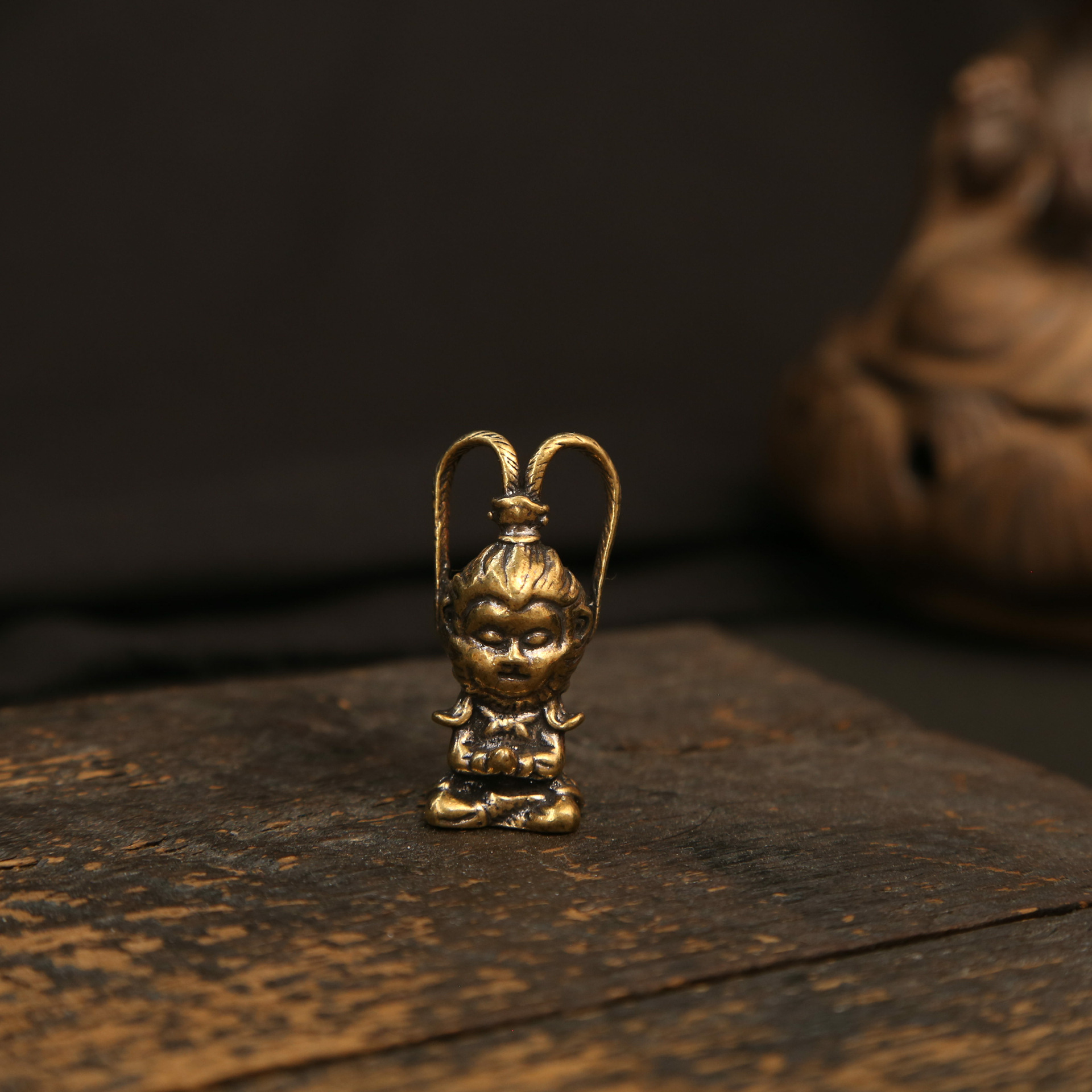 황동 전투 세인트 불상 우콩 자동차 키 체인 펜던트 탕 잔디 링 레트로 오래된 공예 남성과 여성의 가방 펜던트