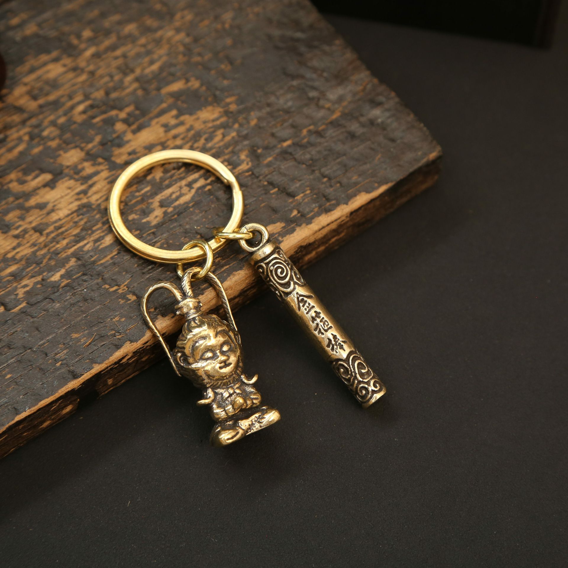 황동 전투 세인트 불상 우콩 자동차 키 체인 펜던트 탕 잔디 링 레트로 오래된 공예 남성과 여성의 가방 펜던트스토어 가기