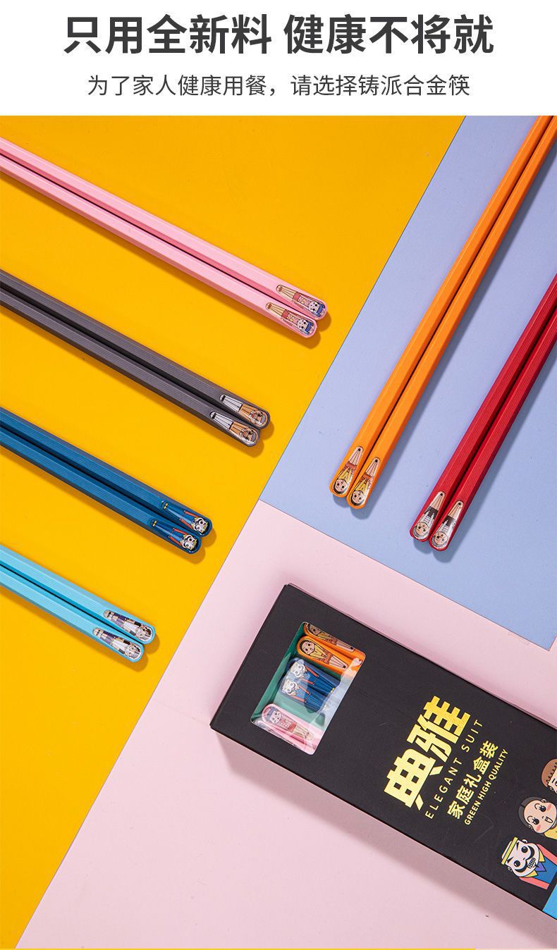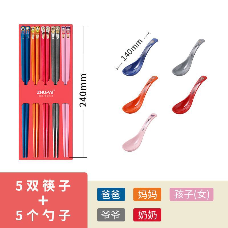 높은 가치의 젓가락 가정용 1 인 젓가락 미끄럼 방지 곰팡이 방지 합금 젓가락 가정용 빠른 숟가락 그릇 젓가락 난초스토어 가기