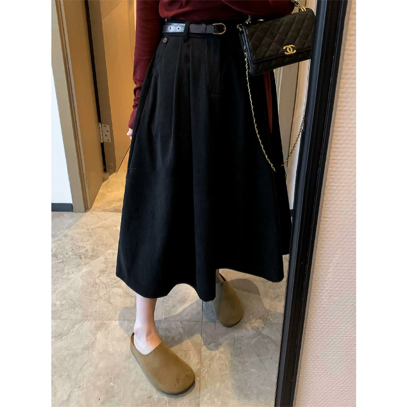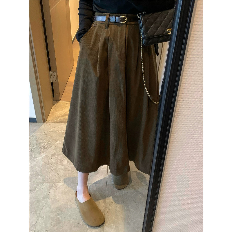 Angora Red High Waist Corduroy 스커트 여성의 2024 가을 새로운 A- Line Mid-Length Skirt스토어 가기