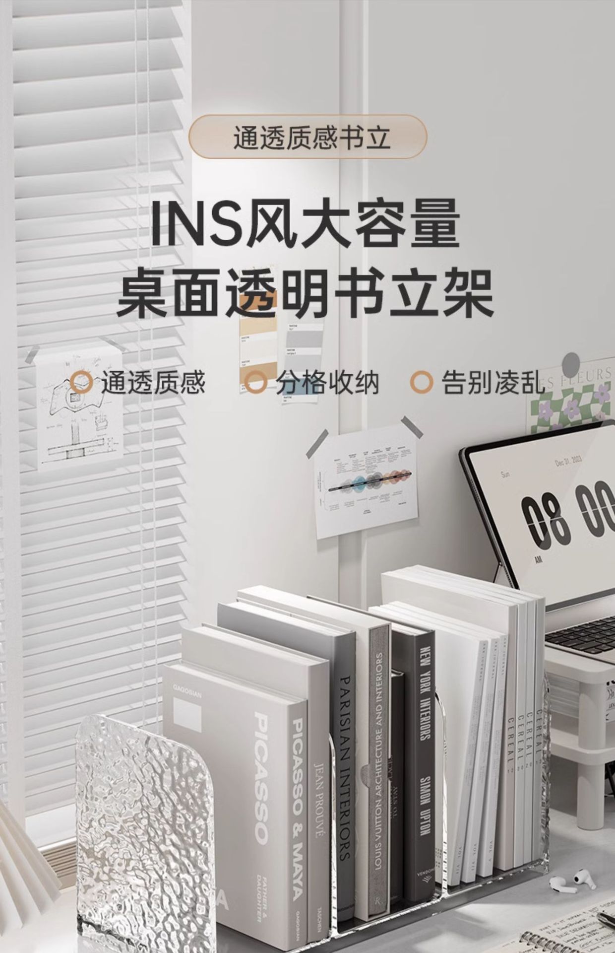 데스크탑 스토리지 랙 투명한 책 스탠드 데스크 아크릴 문서 책장 사무실 학생 책 보관 선반스토어 가기