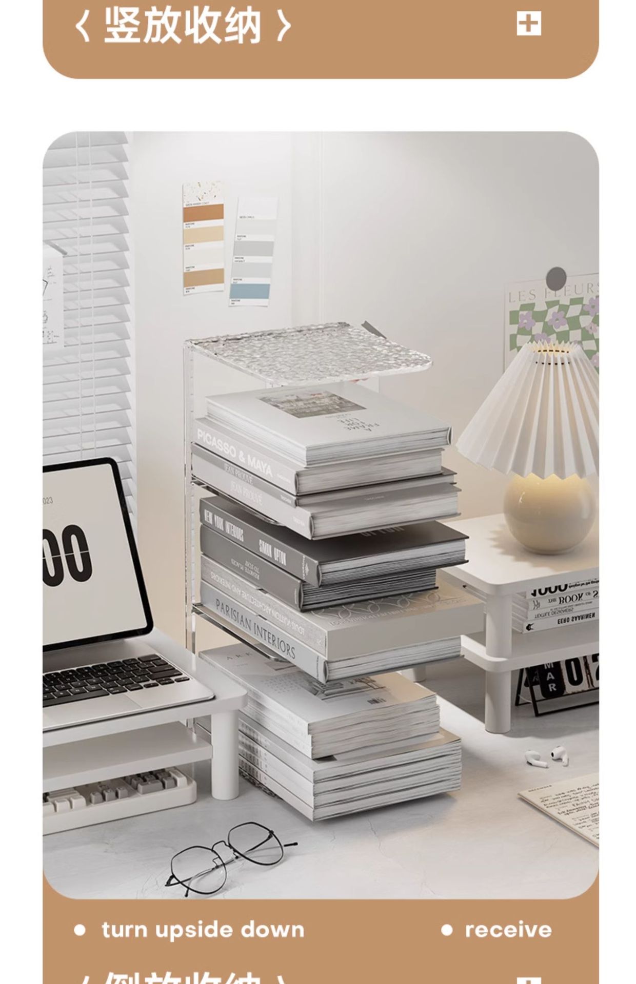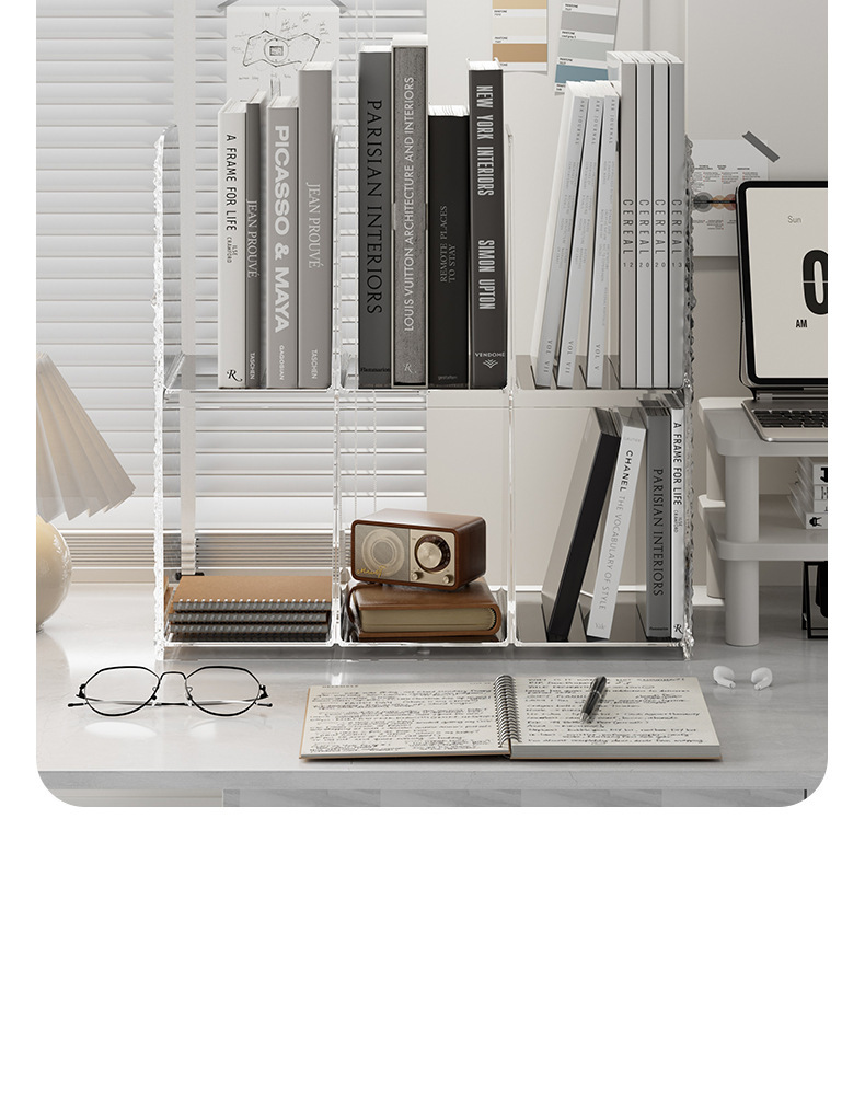 데스크탑 스토리지 랙 투명한 책 스탠드 데스크 아크릴 문서 책장 사무실 학생 책 보관 선반