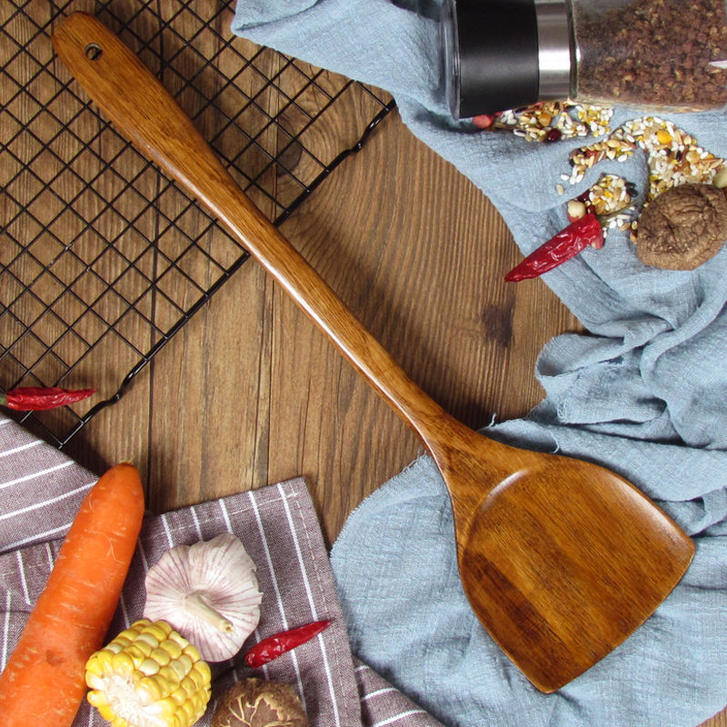 나무 삽 비 스틱 팬 긴 손잡이 안티 스케일 주방 나무 조리기구 높은 온도 저항하는 평평한 바닥 가정용 뮬란