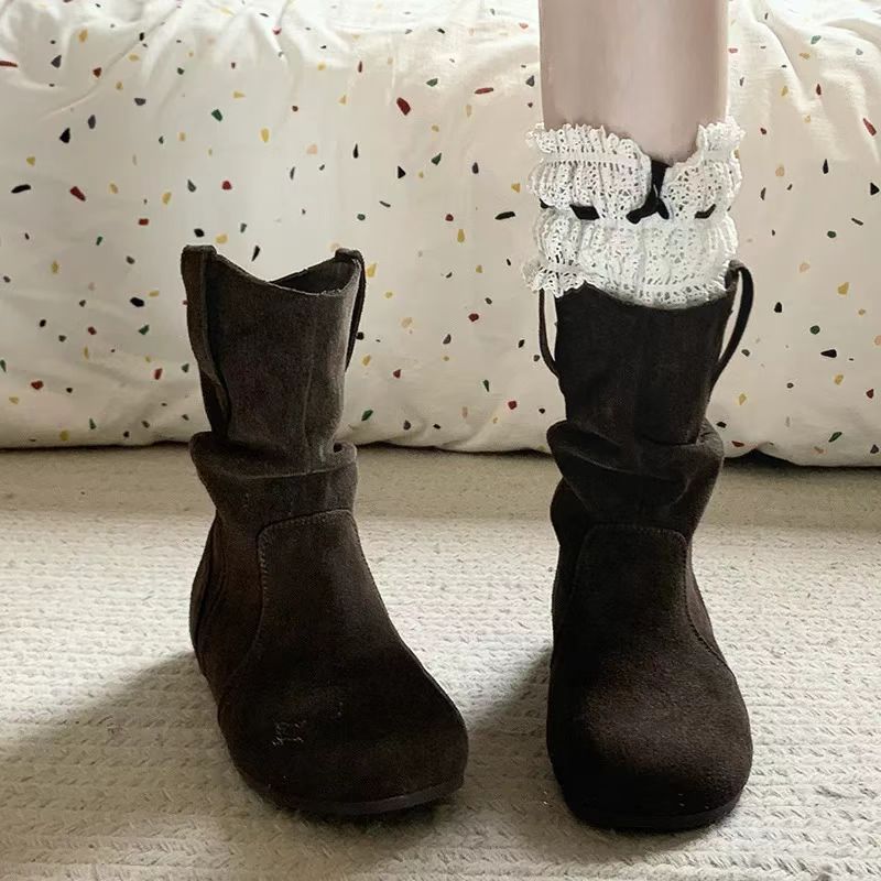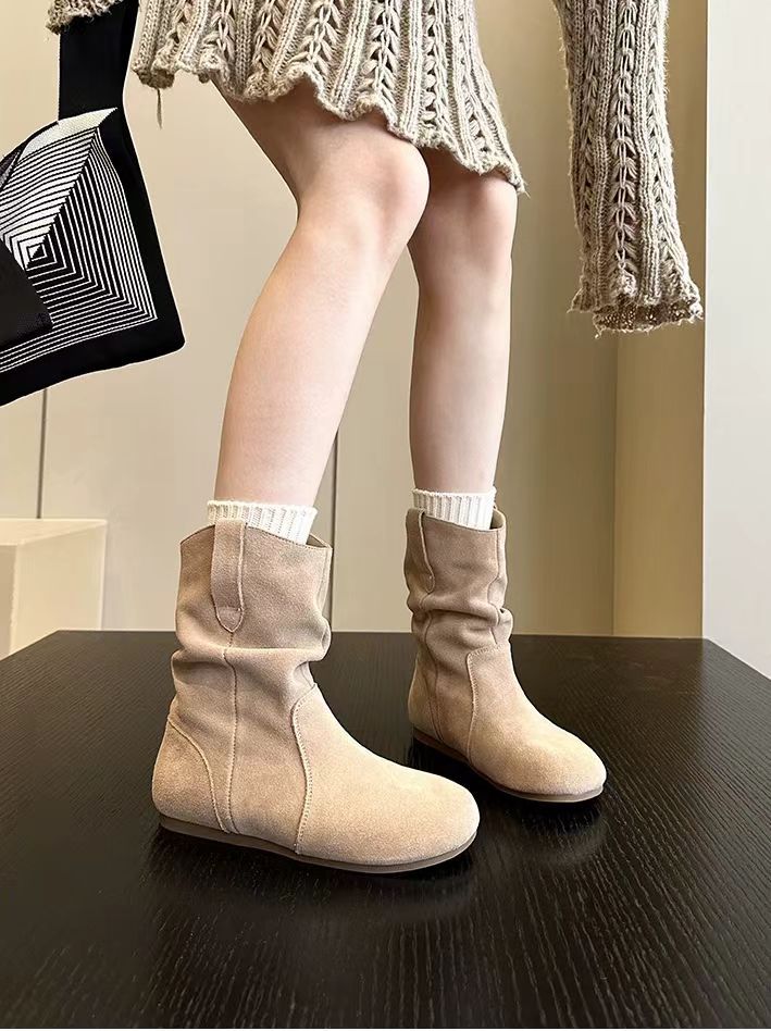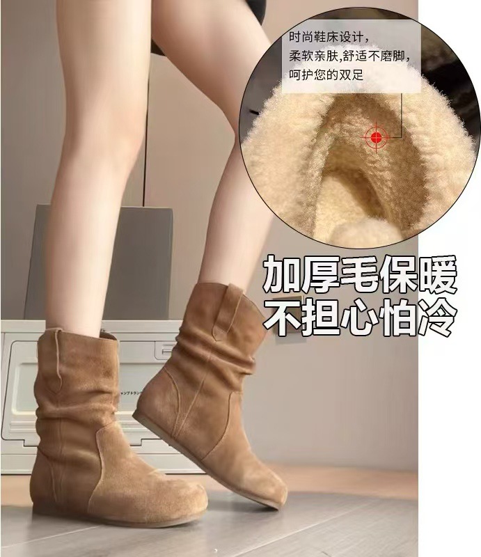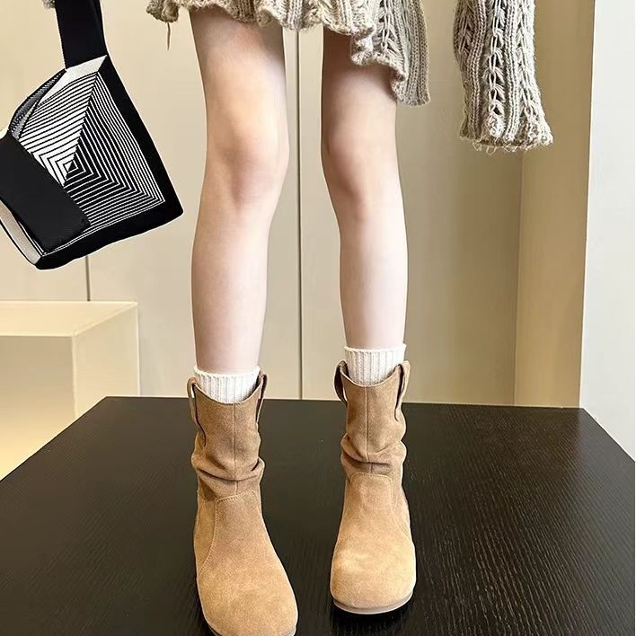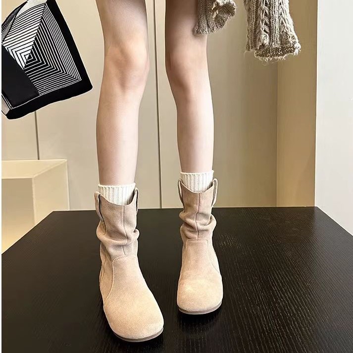 소가죽 버전~ 키높이 레트로 숏부츠 여성용 2025 가을 겨울 웨스턴 마틴 부츠 라운드 토 숏부츠 버켄스토크 스타일 부츠스토어 가기