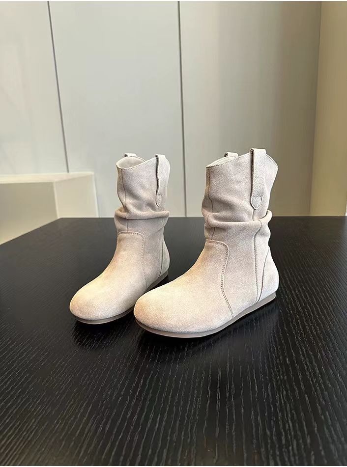 소가죽 버전~ 키높이 레트로 숏부츠 여성용 2025 가을 겨울 웨스턴 마틴 부츠 라운드 토 숏부츠 버켄스토크 스타일 부츠