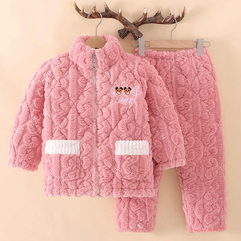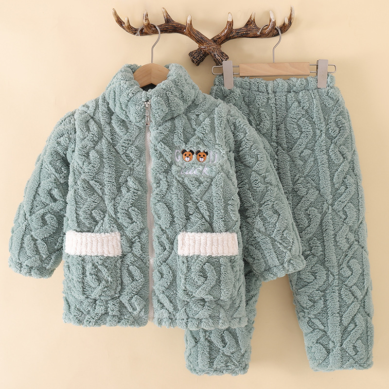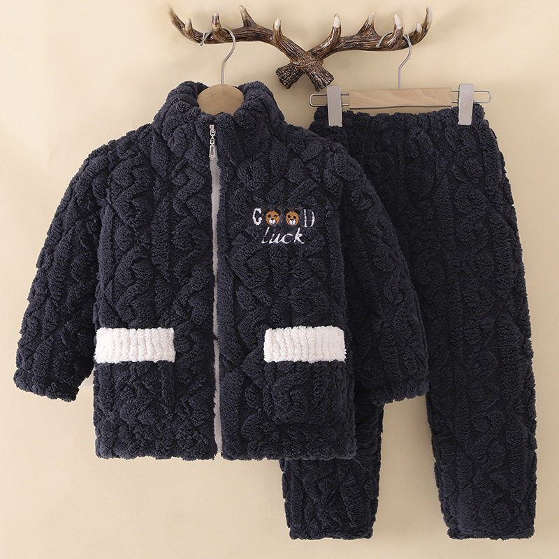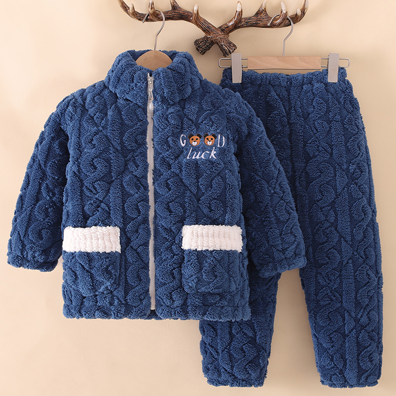 가을과 겨울 어린이 3 층 면 플란넬 소년과 청소년을위한 산호 양털 파자마 따뜻한 가정 옷