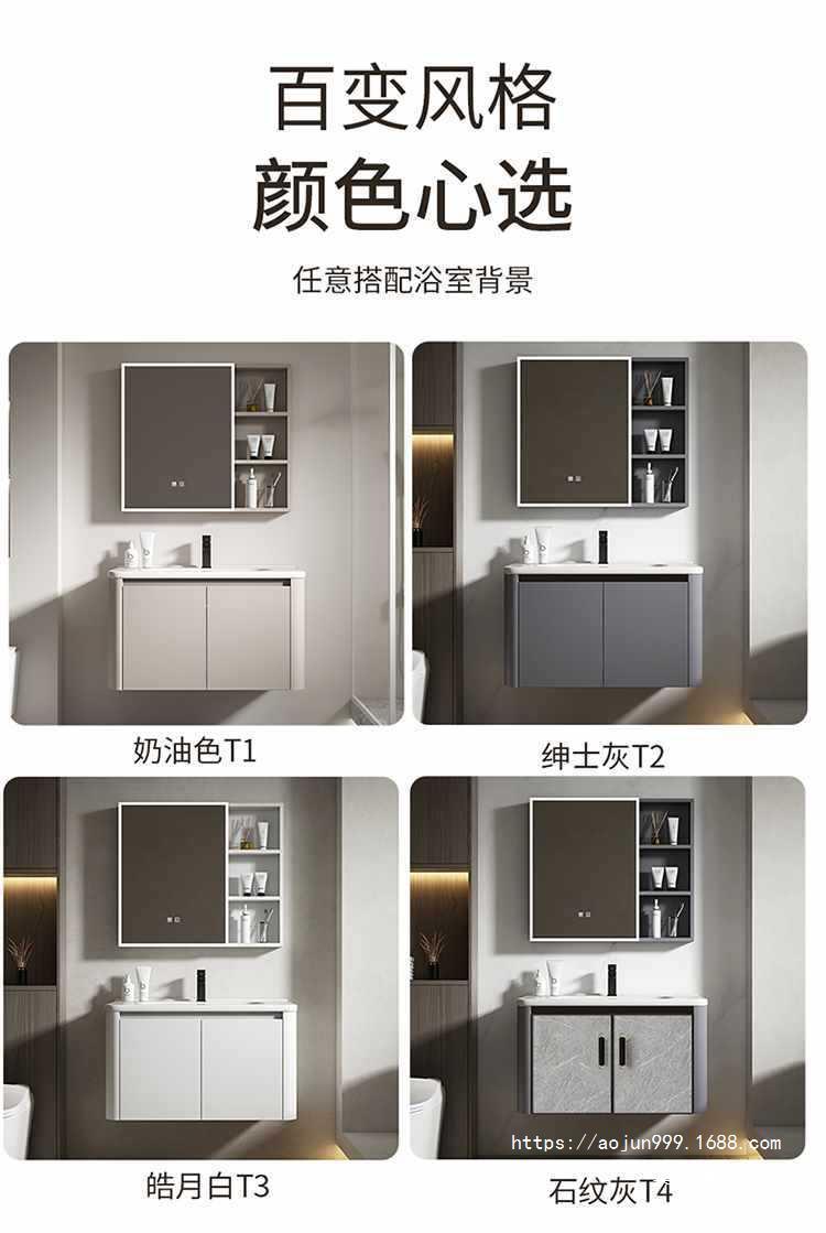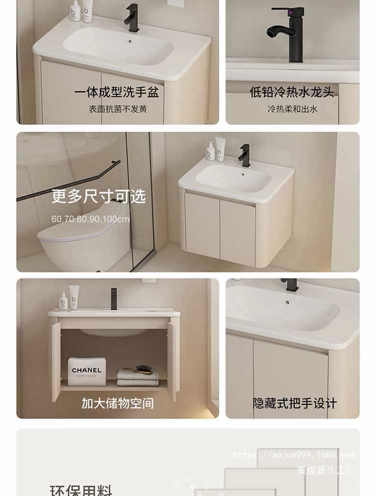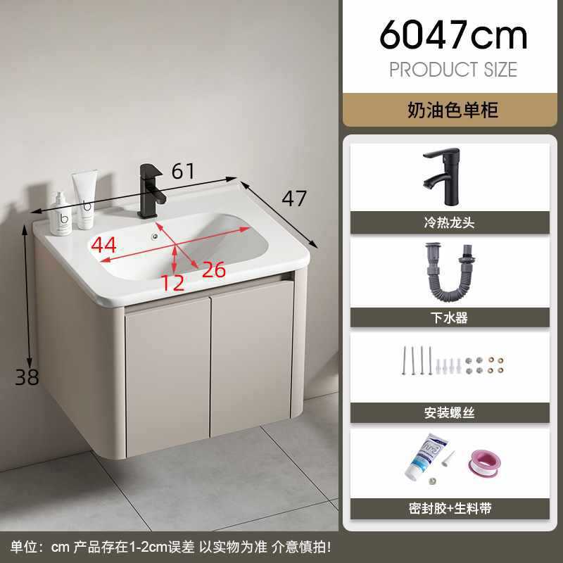 크림 스타일 공간 알루미늄 욕실 캐비닛 조합 세라믹 올인원 분지 세면기 캐비닛 싱크대스토어 가기