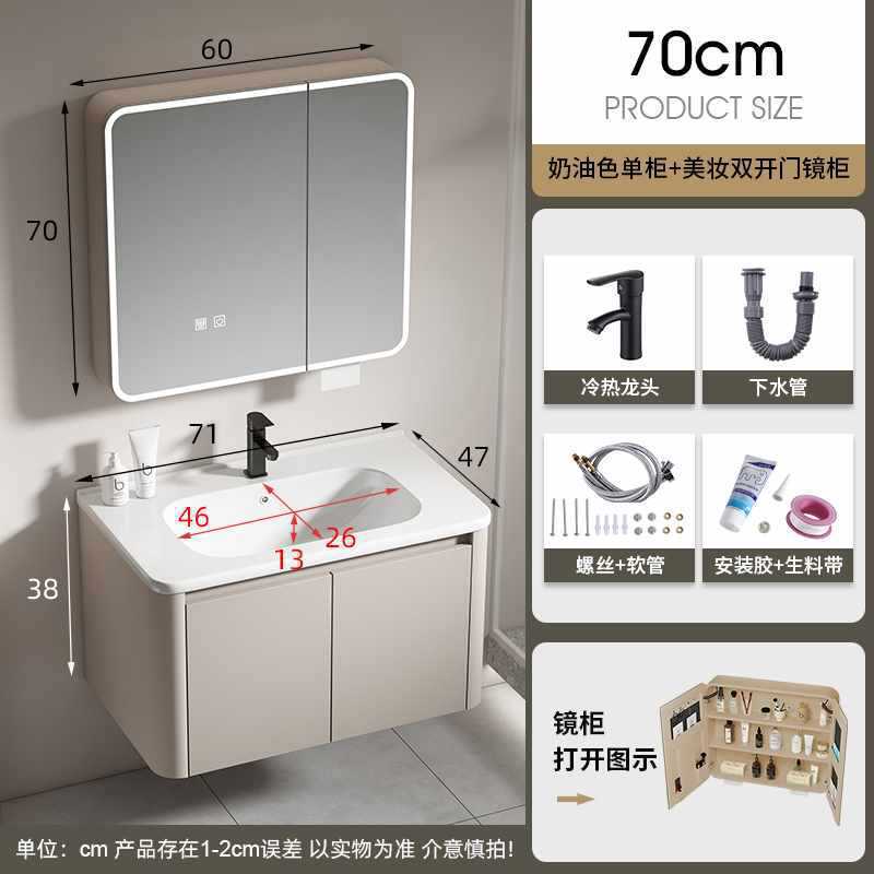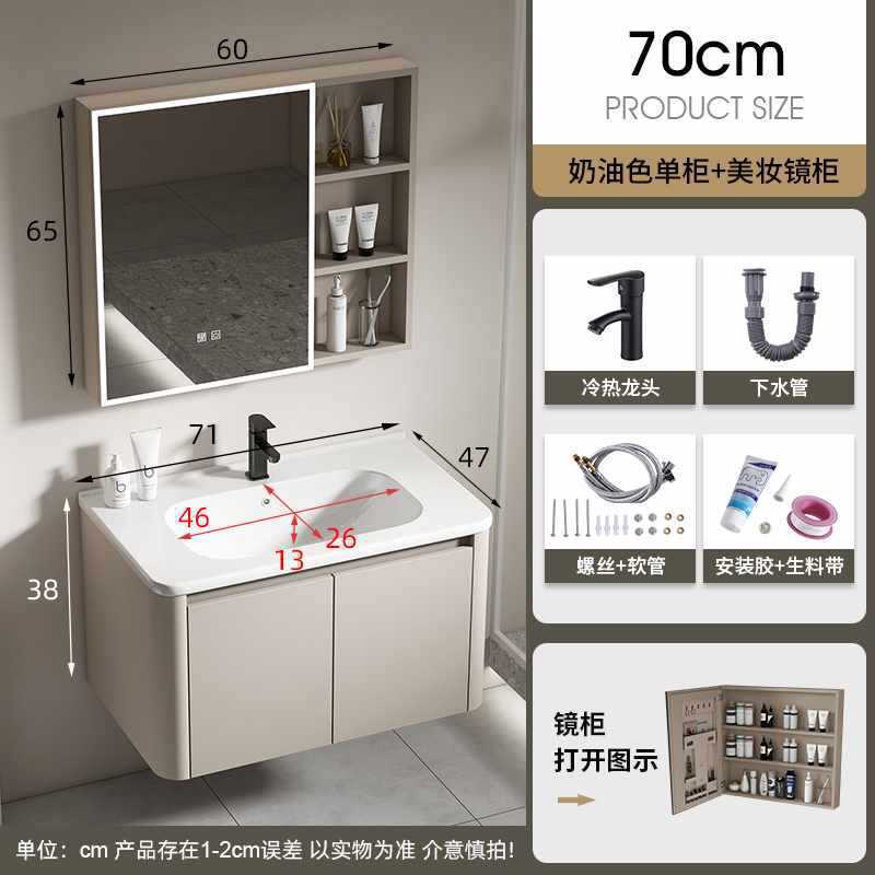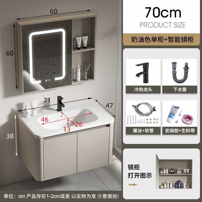 • 70 얇은 모서리 둥근 세면대 캐비닛 + 수도꼭지 + 스마트 뷰티 거울 캐비닛