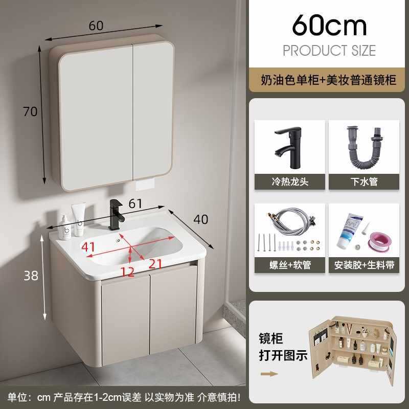 • 6040 얇은 모서리 둥근 세면대 캐비닛 + 수도꼭지 + 보관 거울 캐비닛