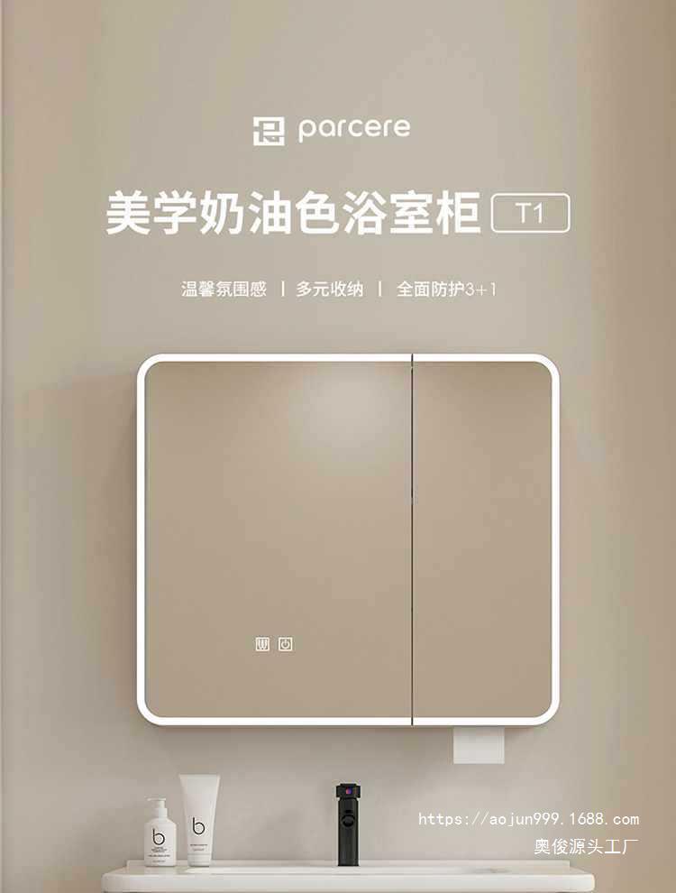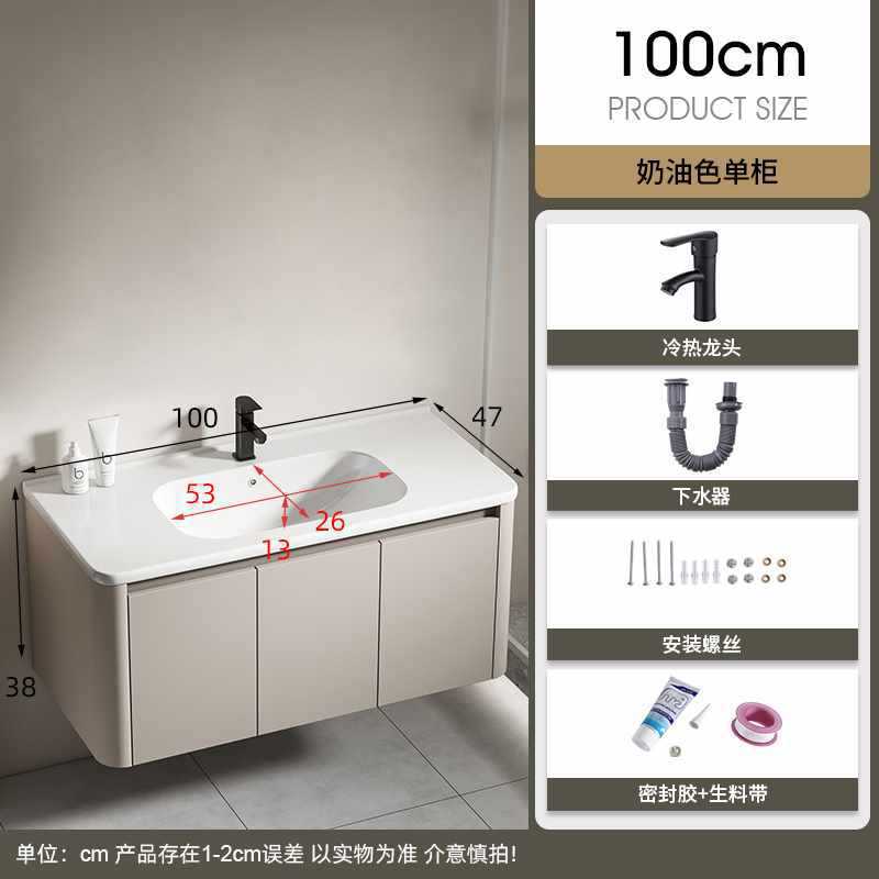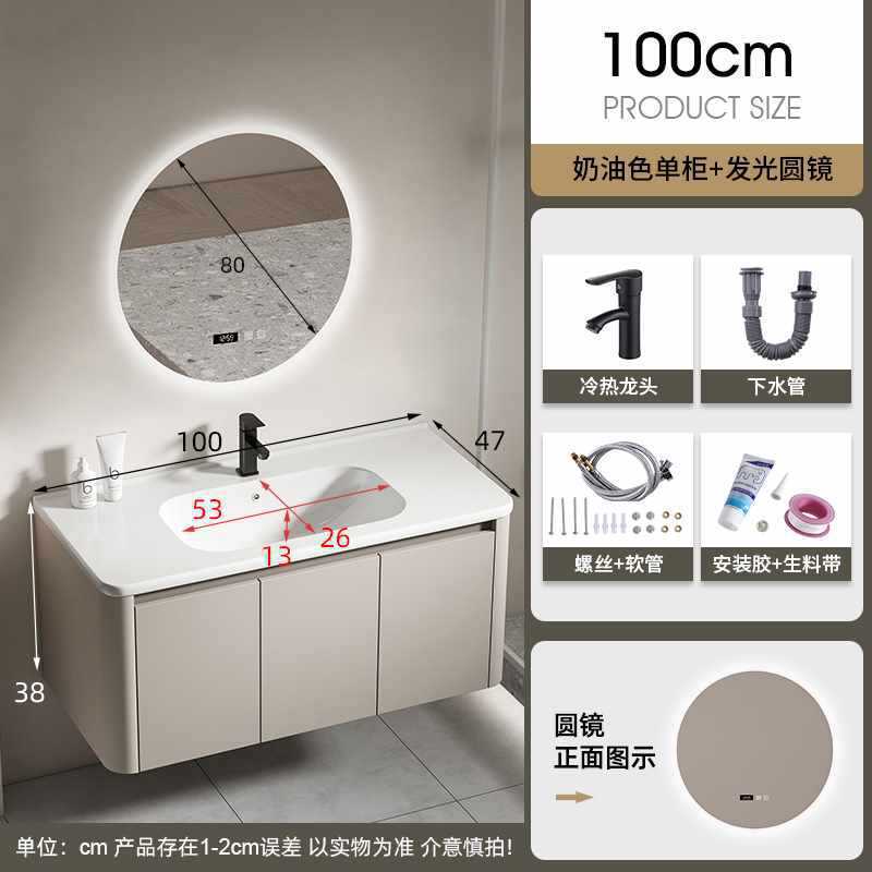 • 100 얇은 모서리 둥근 세면대 캐비닛 + 수도꼭지 + 김서림 방지 야광 거울 캐비닛