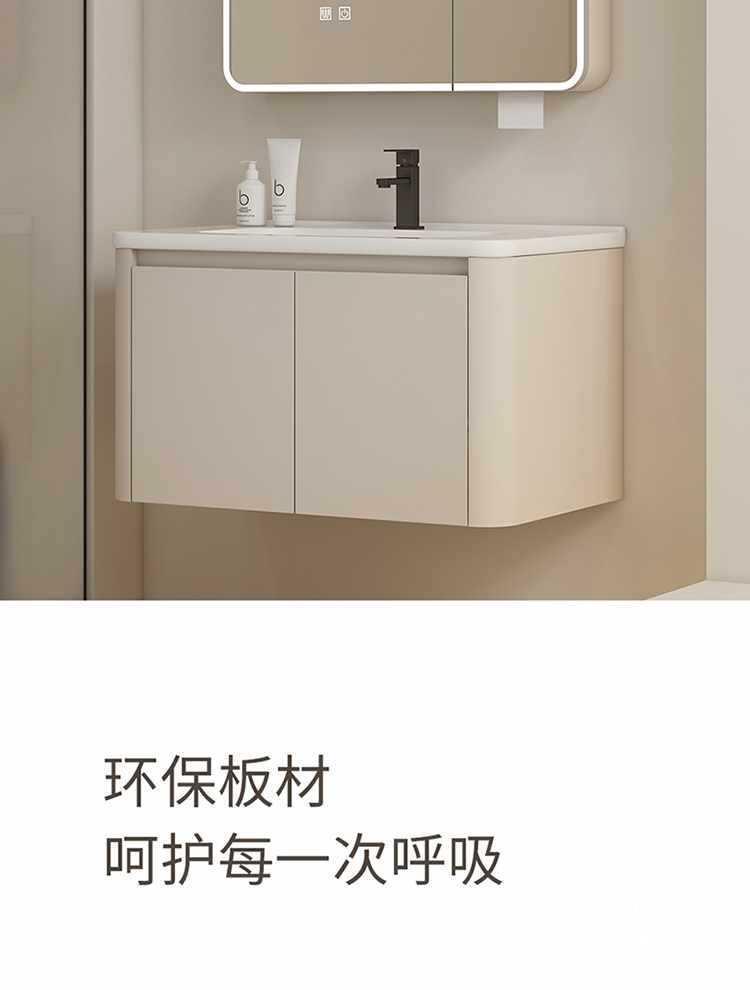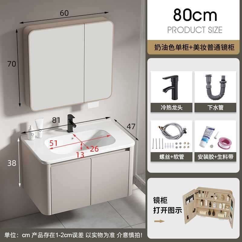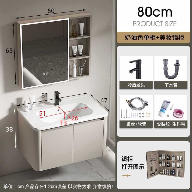 • 80 얇은 모서리 둥근 세면대 캐비닛 + 수도꼭지 + 스마트 뷰티 거울 캐비닛