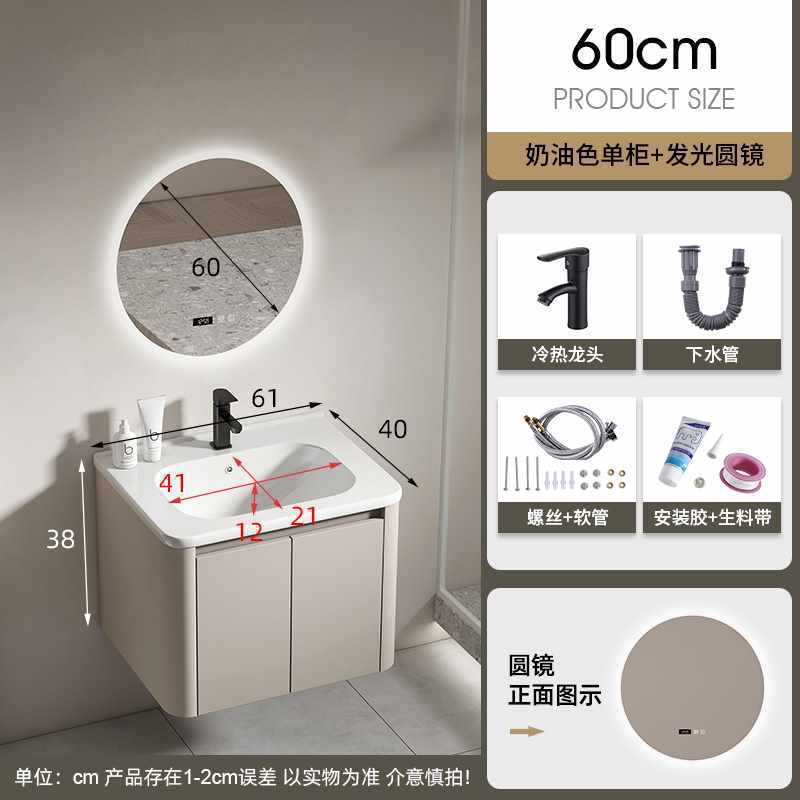 • 6047 얇은 가장자리 둥근 세면대 캐비닛 + 수도꼭지 + 김서림 방지 야광 거울 캐비닛