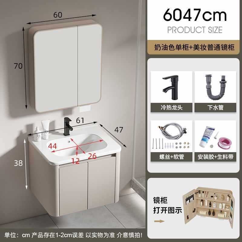 • 6047 얇은 가장자리 둥근 세면대 캐비닛 + 수도꼭지 + 스마트 뷰티 거울 캐비닛