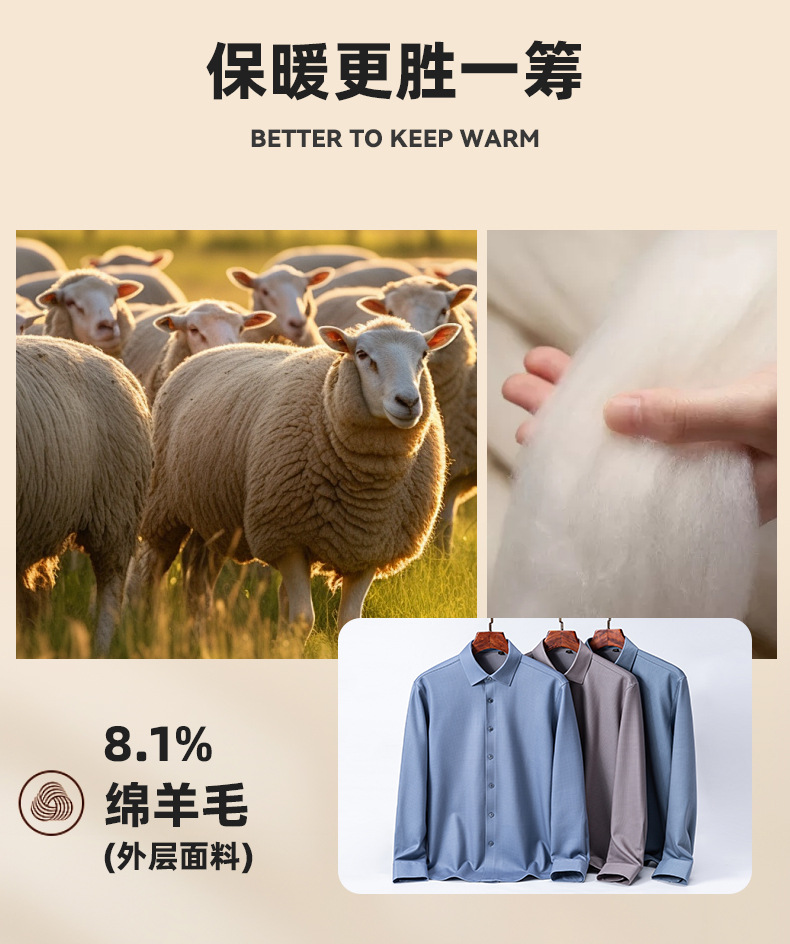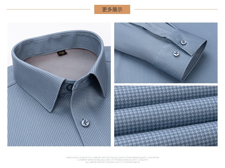 [양모 일체형 벨벳] 겨울용 신축성 보온 셔츠 남성용 물떼새 격자무늬 캐주얼 비즈니스 플러스 벨벳 두꺼운 셔츠