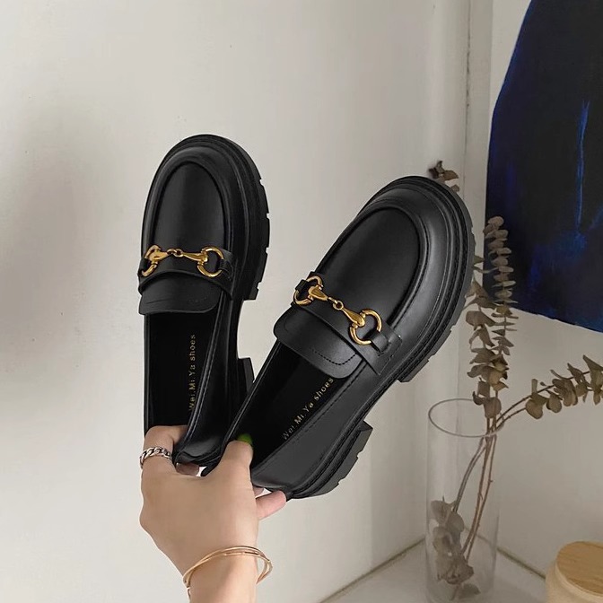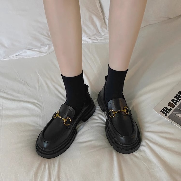 여성용 로퍼 2025 새로운 봄, 가을 다목적 영국 스타일 검은 작은 가죽 신발 메리 제인 여성 신발 슬립 온 신발스토어 가기