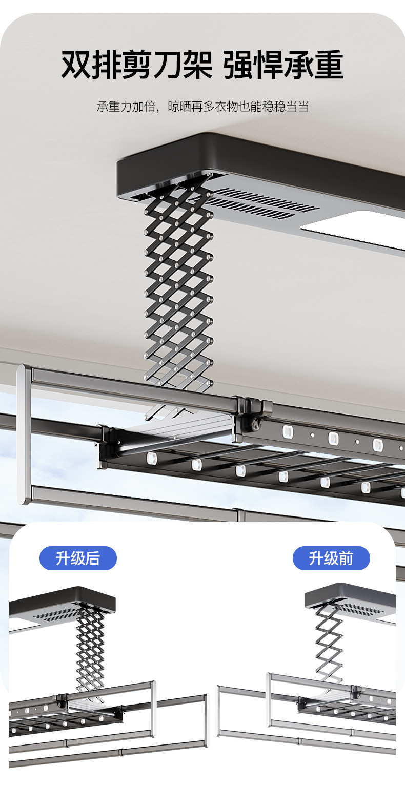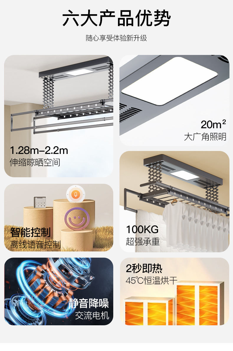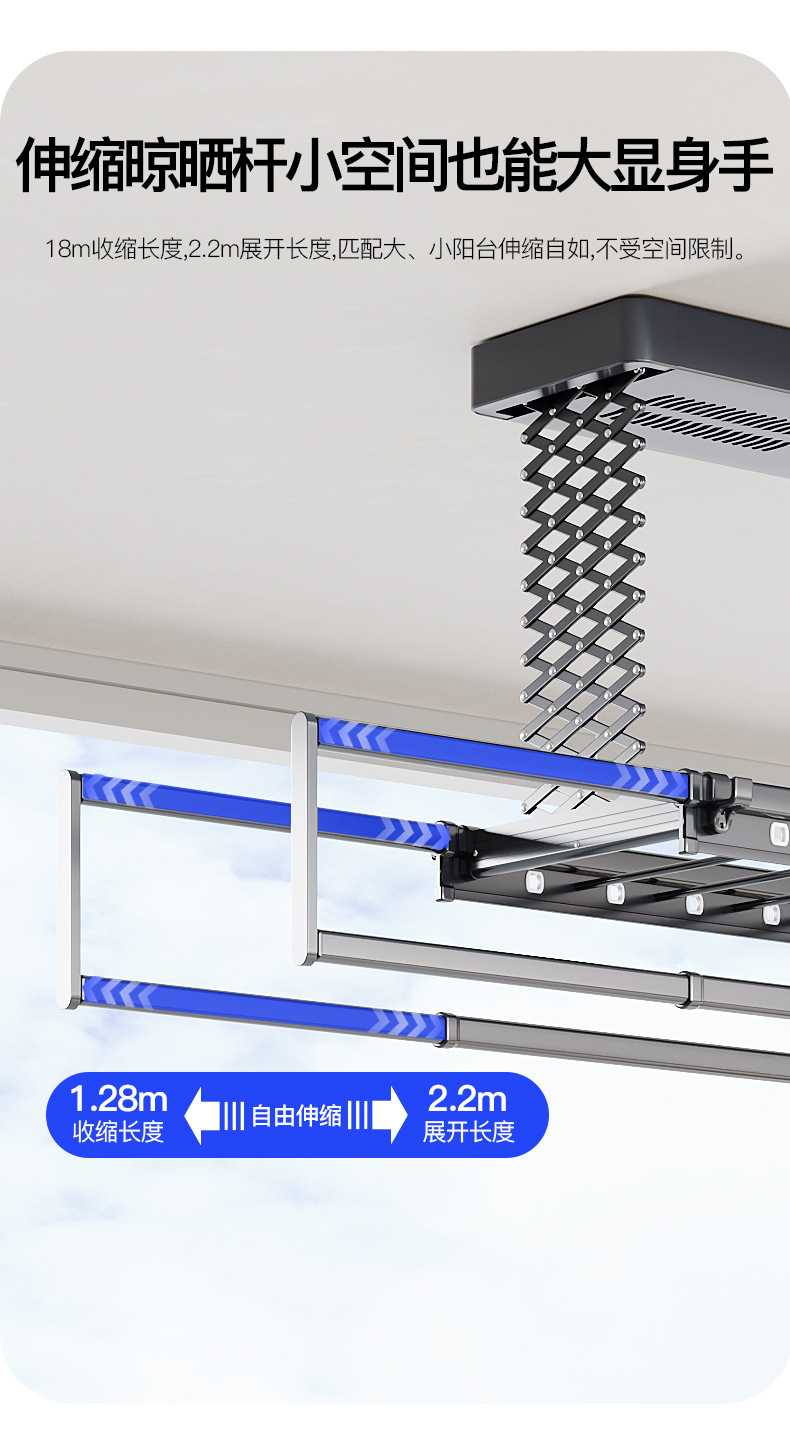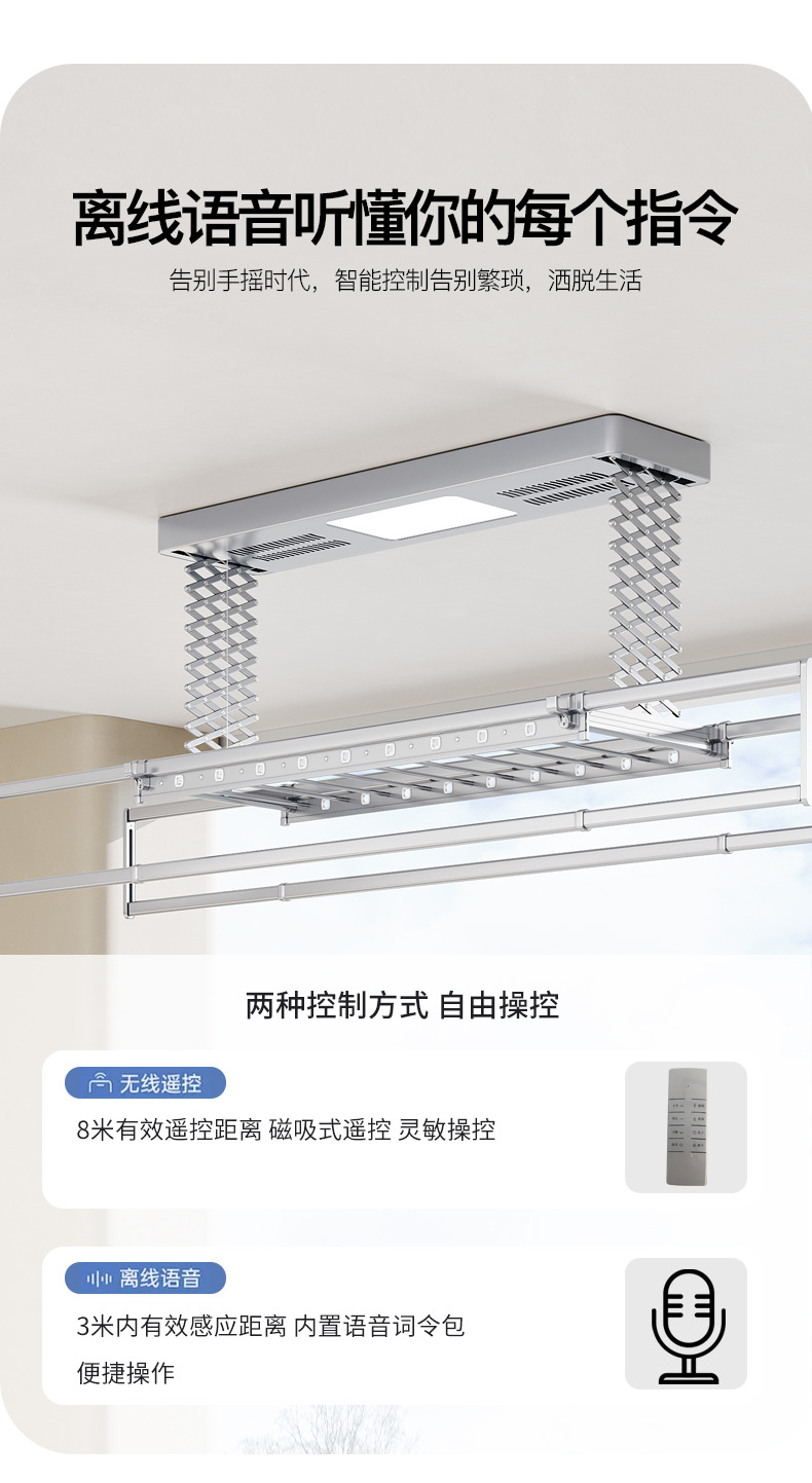 • [2열 가위걸이, 이중 내하중] 별이 빛나는 하늘은 모든 기능을 갖추고 있습니다(음성 제어 + 건조 + 소독 + 조명 + 리프팅 + 크로스바)